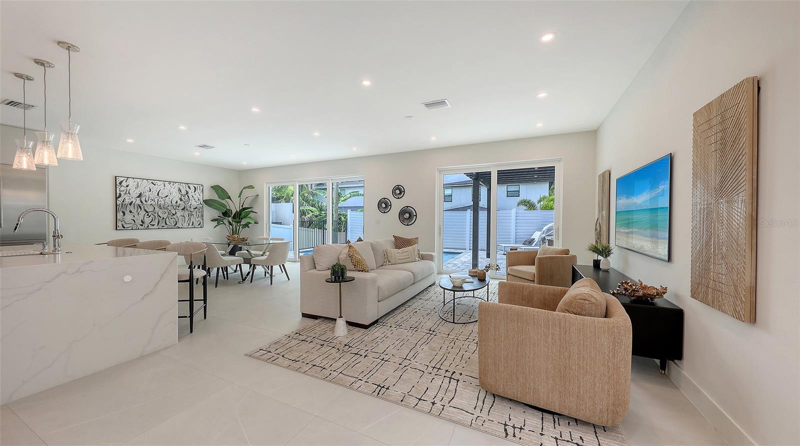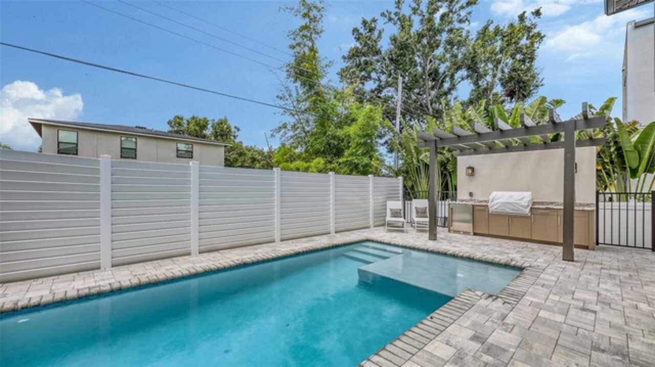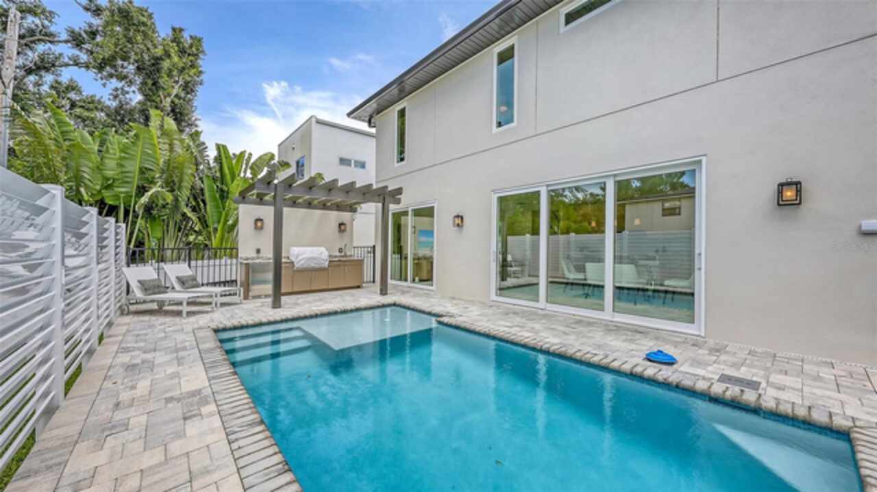 BRAND NEW 2025 – Seller is offering a $15, 000 design credit and 10 free hours of consultation with an interior designer - Luxurious New Construction Home in Arlington Park! Welcome to your dream home, ideally located in Rustic Lodge — one of the most desirable pockets within the sought-after Arlington Park neighborhood in the heart of Sarasota. Enjoy your own backyard oasis featuring a private heated saltwater pool and a fully equipped outdoor kitchen, complete with a Blaze burner grill, granite countertops, and a Zephyr beverage center. Beautiful pavers surround the outdoor entertaining space, while a grassy area offers the perfect spot for a garden or a place for pets to play. Step inside through a welcoming foyer adorned with custom porcelain tile flooring, which continues throughout the home in a large-format style for a seamless, elegant finish. Just off the entryway, you’ll find a spacious and private office. Continue into the open-concept living space, where the kitchen truly steals the show. Custom Studio Luxe cabinetry extends to the high ceilings, creating a stunning visual impact and maximizing storage. Quartz countertops are used throughout, including a full-slab backsplash and a dramatic waterfall island. The kitchen is outfitted with top-of-the-line Thermador appliances, including an induction cooktop, range hood, 42” built-in French door refrigerator, and a combination wall oven. Adjacent to the kitchen is a generous mudroom with built-in cabinetry, conveniently located near the entrance from the two-car garage, which features a durable epoxy-coated floor. Upstairs, each bedroom includes its own en-suite bathroom and walk-in closet with custom shelving to maximize space. The spacious primary suite includes a huge walk-in closet with a dedicated vanity area, while the primary bath offers a dual vanity, oversized walk-in shower, and a freestanding soaking tub. Throughout the home, you’ll find high-end finishes and fixtures, including Kohler plumbing fixtures, Toto commodes, Daltile porcelain tile, Franklin Lighting, titanium pavers, a premium PGT window package, PVC vinyl fencing, and a sleek, wind-resistant 5V crimp metal roof. Additional features include a 21-foot-wide driveway, an irrigation system, outdoor lighting, and decorative window shutters. This home includes a one-year builder warranty and is perfectly located just minutes from downtown Sarasota, Siesta Key Beach, St. Armand's Circle, Sarasota Memorial Hospital, Legacy Trail, and top-rated local schools. Positioned within city limits, the property also qualifies as an excellent vacation rental opportunity. Private financing available.