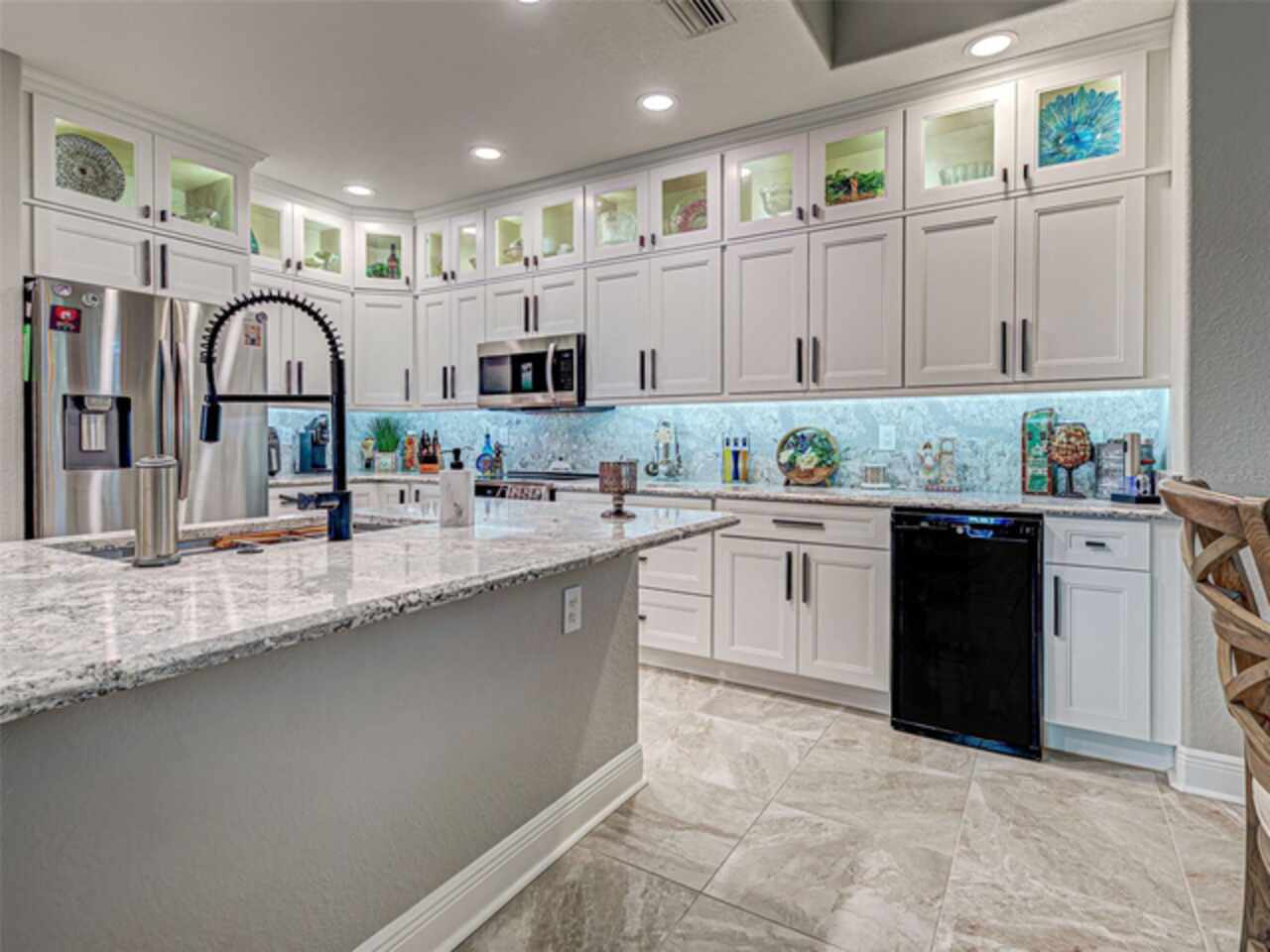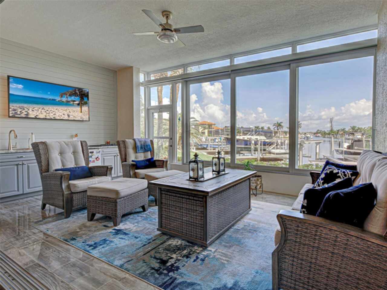 Exquisite PGI Waterfront Ground Floor Condo with Sailboat Access - Your Dream Home Awaits! Experience the quintessential Florida lifestyle in this stunning, completely updated waterfront condo in desirable Punta Gorda Isles. Boasting direct sailboat access with no bridges and a quick trip to the harbor, it's a move-in-ready residence and a boater's paradise. This spacious condo offers an unparalleled level of luxury and convenience, featuring a deeded dock and an impressive 27, 000 lb boat lift, ready for your vessel. No detail has been overlooked in this meticulously renovated home. Enjoy peace of mind with impact windows and impact sliders, providing both security and energy efficiency. The entire home benefits from a comprehensive water filter system. Inside, discover a bright and airy living space adorned with new cabinets, newer appliances, and exquisite Quartz & Marble counters in the kitchen and baths. LED recessed lighting illuminates every corner, while Plantation Shutters and high-end blinds offer privacy and style. Dining room chandelier is personalized and does not convey. The garage is finished with an Epoxy flooring and includes a spare refrigerator that does convey. The elegance continues with Luxury Vinyl Plank Flooring throughout, offering both beauty and durability. Soaring 10ft ceilings and striking 8ft wood doors create an expansive and grand atmosphere. This PGI waterfront condo is truly move-in ready, offering a host of upgrades and a desirable location that embodies the best of Southwest Florida living. Don't miss this opportunity to own a piece of paradise!