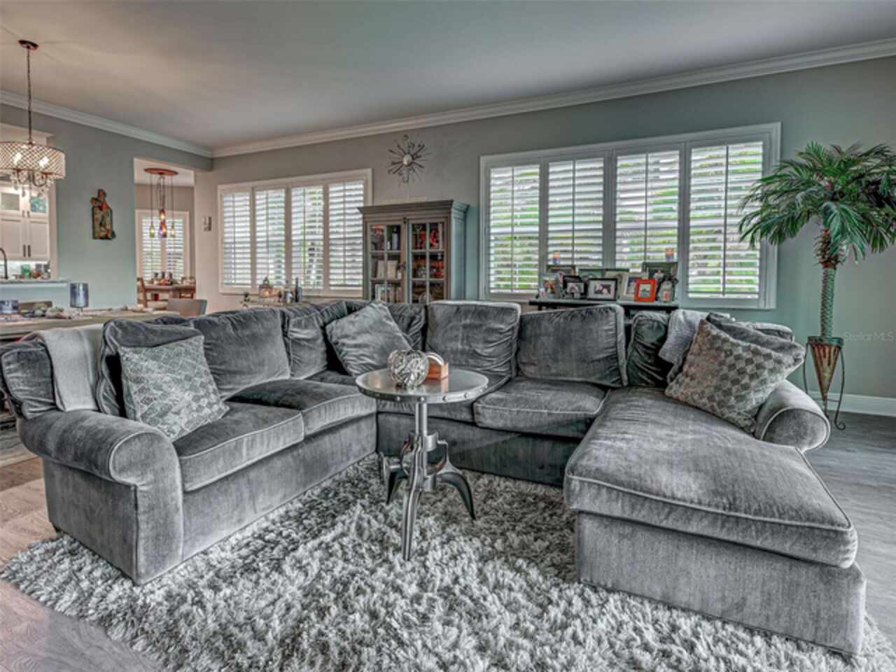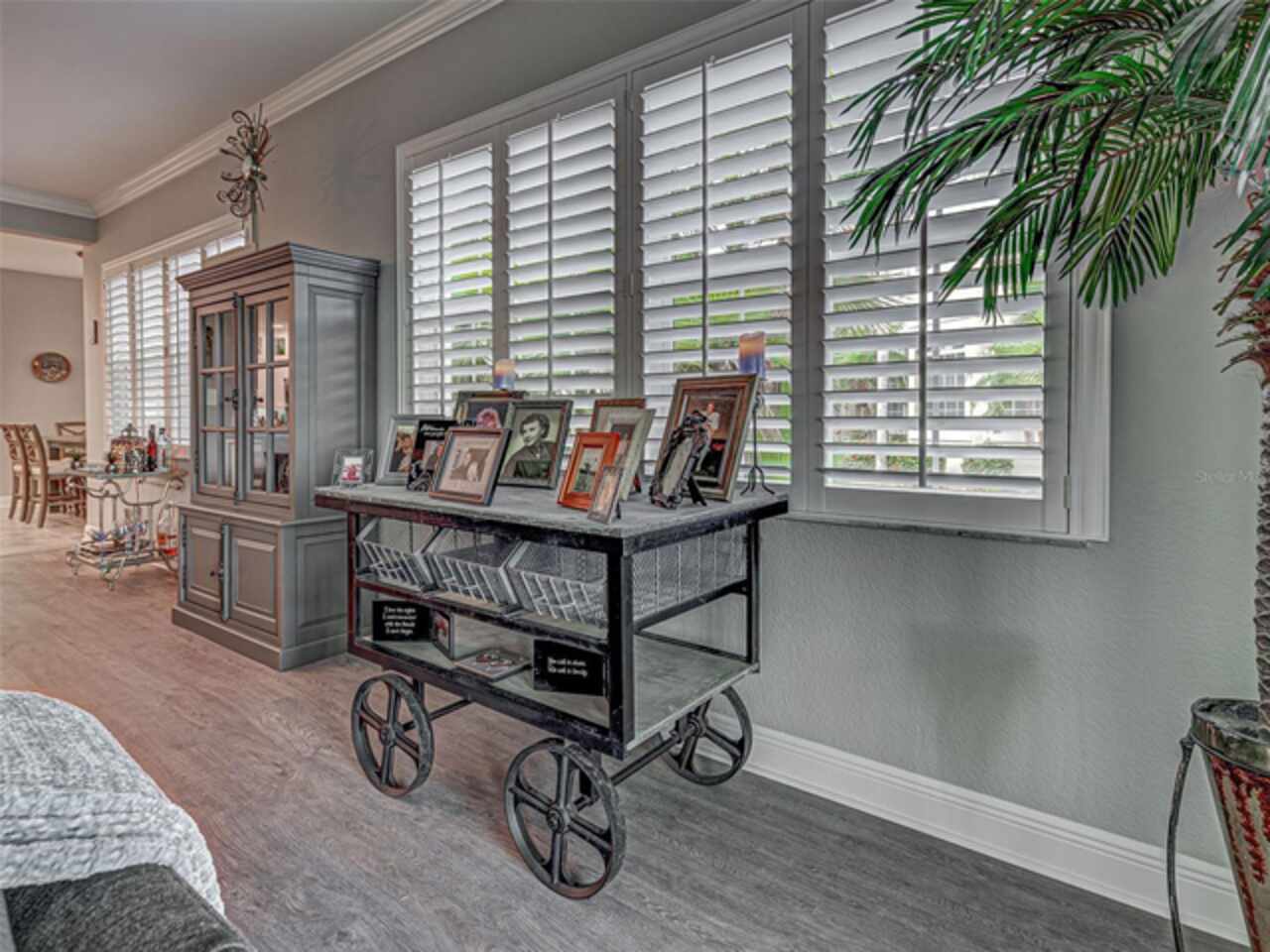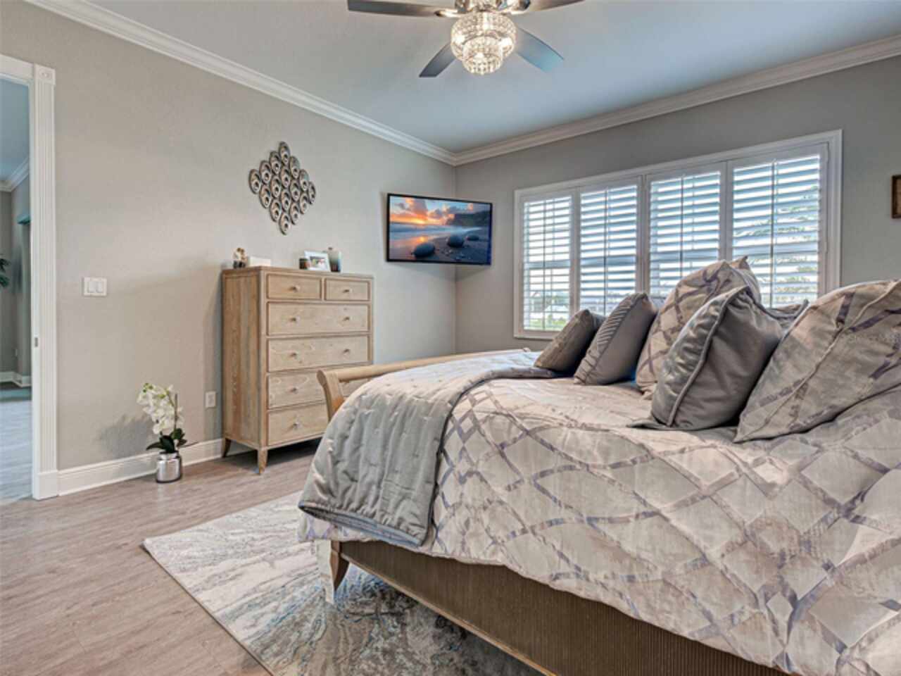 Ceiling Fans(s), Crown Molding, Eat-in Kitchen, High Ceilings, Living Room/Dining Room Combo, Open Floorplan, Solid Wood Cabinets, Split Bedroom, Stone Counters, Walk-In Closet(s), Window Treatments