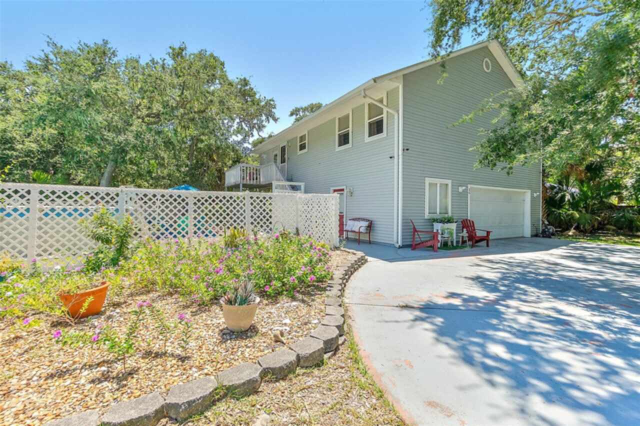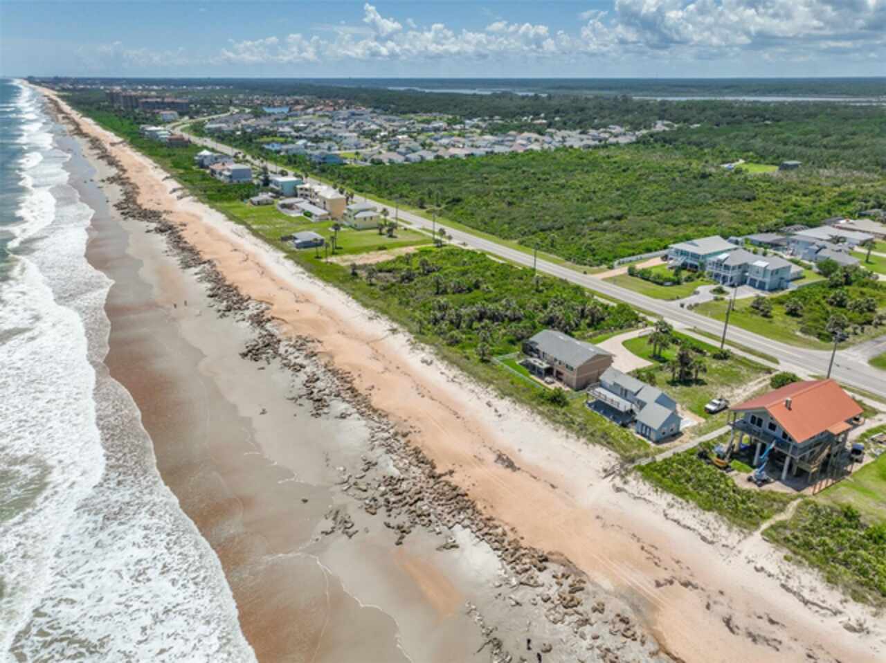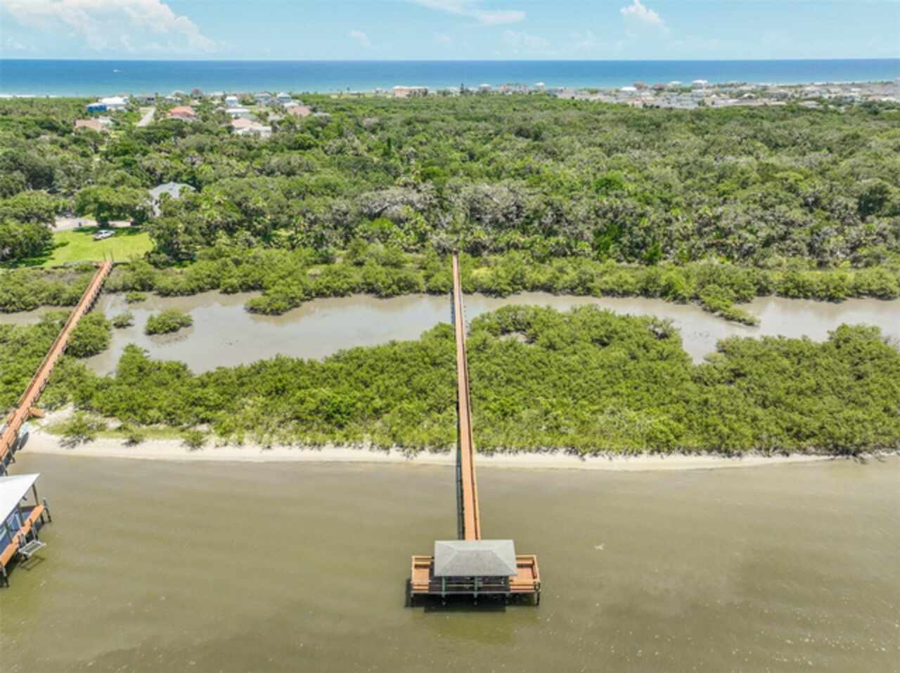 PRICE IMPROVEMENT! OWNER SAYS LETS GET THIS SOLD!Discover your own private paradise in this coastal home located near Marineland in the Maritime Estates community. It is conveniently located between Palm Coast and St. Augustine. Home has access to the beautiful sandy beach with a dune walkover for private entry. There is also a deeded access to the Intracoastal Waterway at the end of the street with a beautiful covered dock so you can enjoy fishing and peaceful meditation. Both are a short distance from home. You can watch the sun rise on one side and the sun set on the other. This two story home features two master suites, one upstairs as well as downstairs. There is an inside spiral staircase or you can easily install an elevator. The downstairs suite could be used as an in-law suite as it features a living room, bathroom and bedroom with a private access to the garage and sliding glass doors to a rear porch that overlooks the oasis of majestic oaks in the back yard. The upstairs features an open concept with gorgeous wood floors, sliding glass doors to the large screened lanai overlooking the majestic oaks in the back yard and lots of windows to maximize your breathtaking views. Kitchen features a center island bar for entertaining and granite counter tops. This fantastic side yard comes with your own 18 x 36 above-ground freshwater pool, perfect for creating lasting memories with family and friends. Completely fenced in for privacy. Home features include real wood floors, wood doors and trim, a security system and ring doorbell. Water is provided by the city of palm coast and the sewer is a privately owned company and is not part of the water bill. Hot water heater was replaced in 2024 and a/c is approximately 5 years old. The garage is oversized and can fit two cars. It also features an area that can be used for a workshop or craft room. The possibilities are endless. What are you waiting for? Call now to schedule a showing on this beachside paradise!