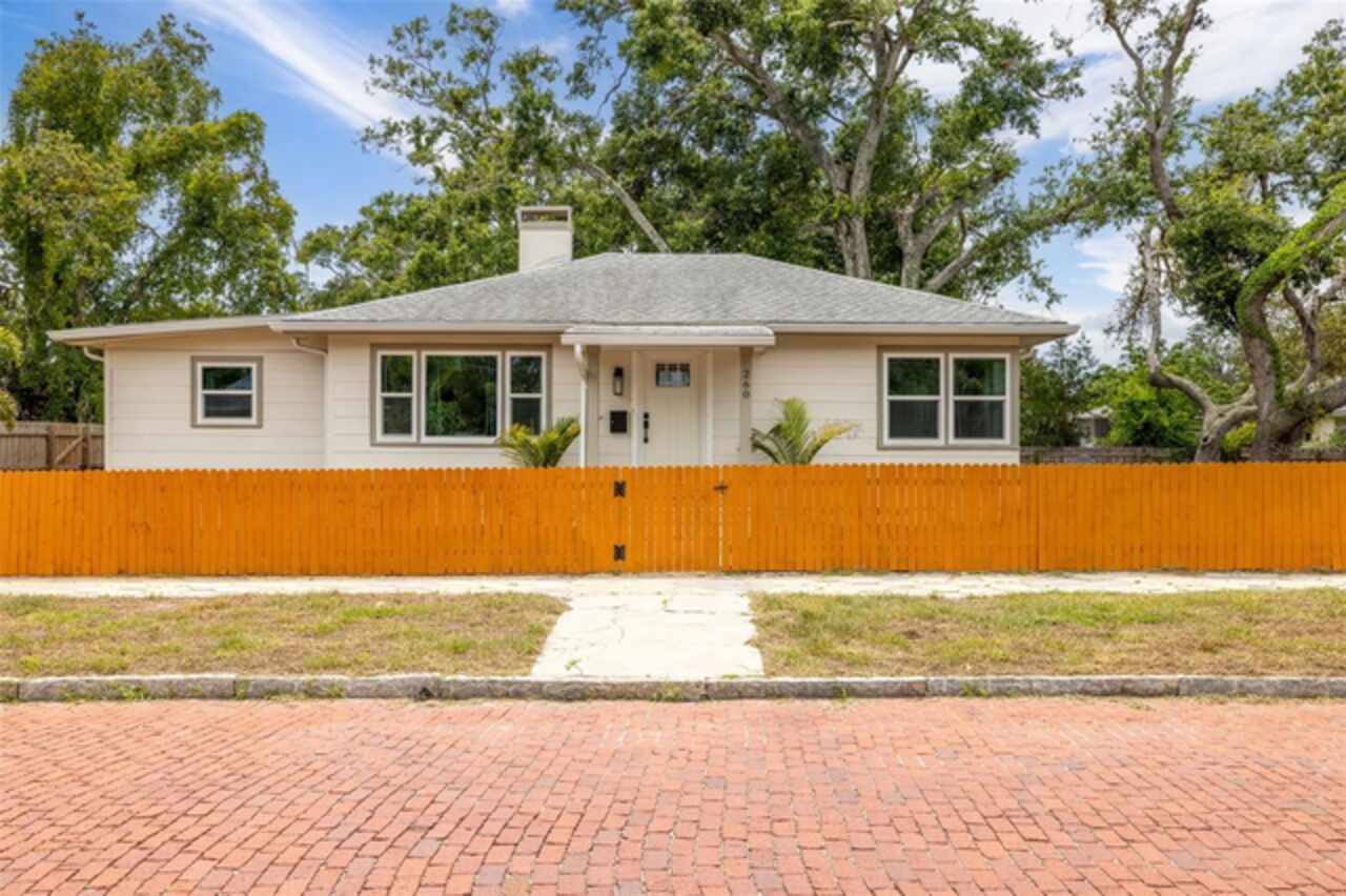 Beautifully Updated 3, 2 single family home on a corner lot on charming brick streets in St. Pete! This house has so much to give, move in ready. Fully fenced yard in a quiet neighborhood, Split bedroom plan, home did not flood during Hurricanes Milton or Helene. Roof 2017, AC, 2022, PGT windows 2023, Blown in insulation 2023, reverse osmosis water filtration system in kitchen 2023, Leafguard gutters, Vinyl wood planking floor throughout, Inside laundry room 2 sheds will remain on the property, Come and see!!