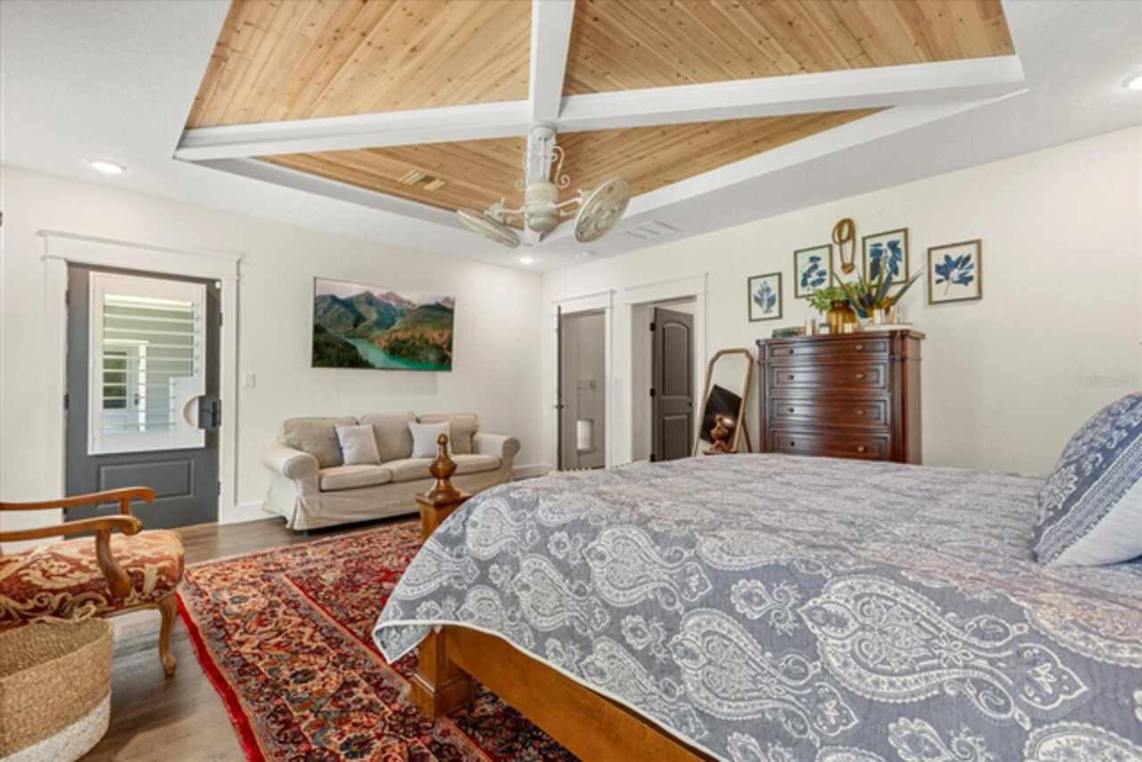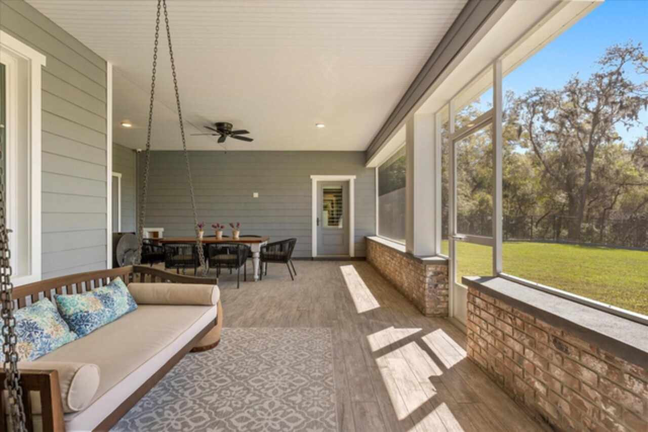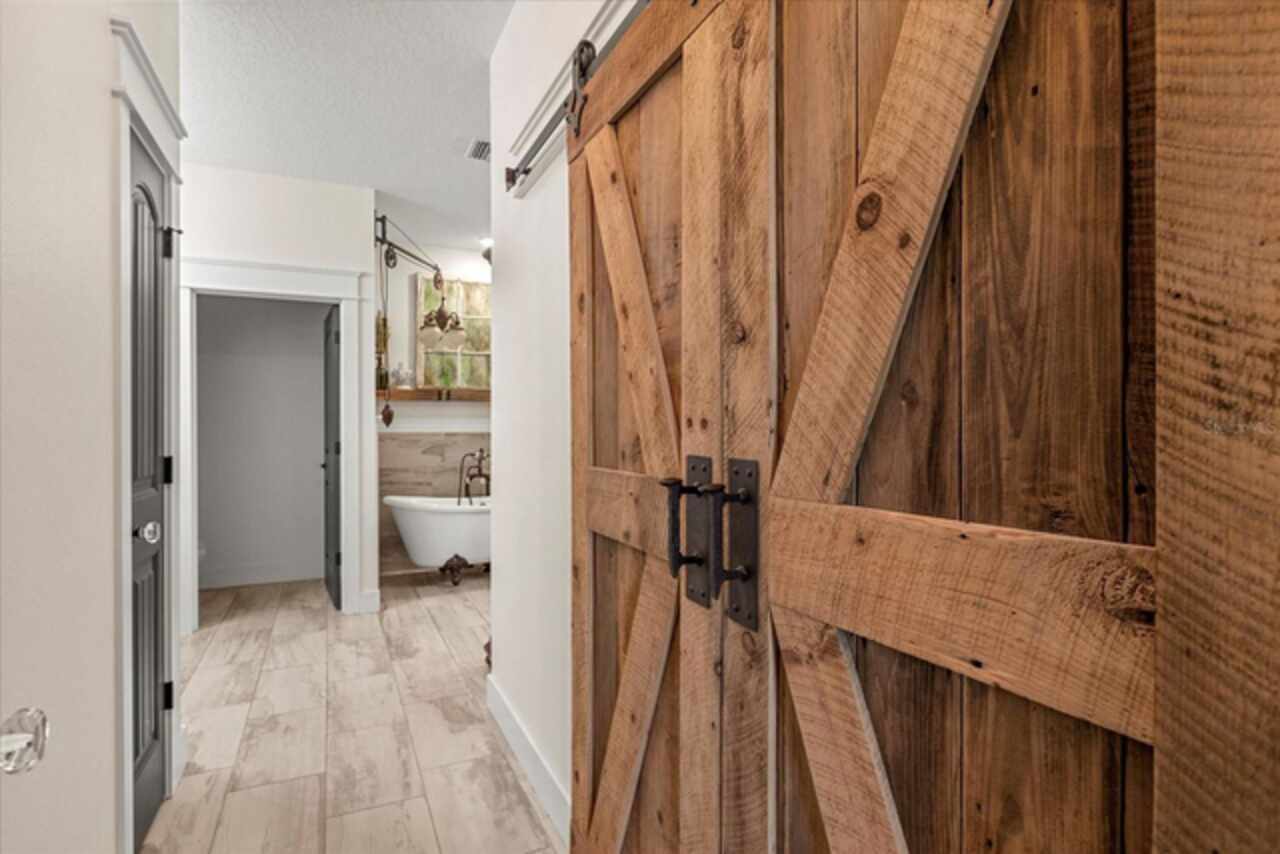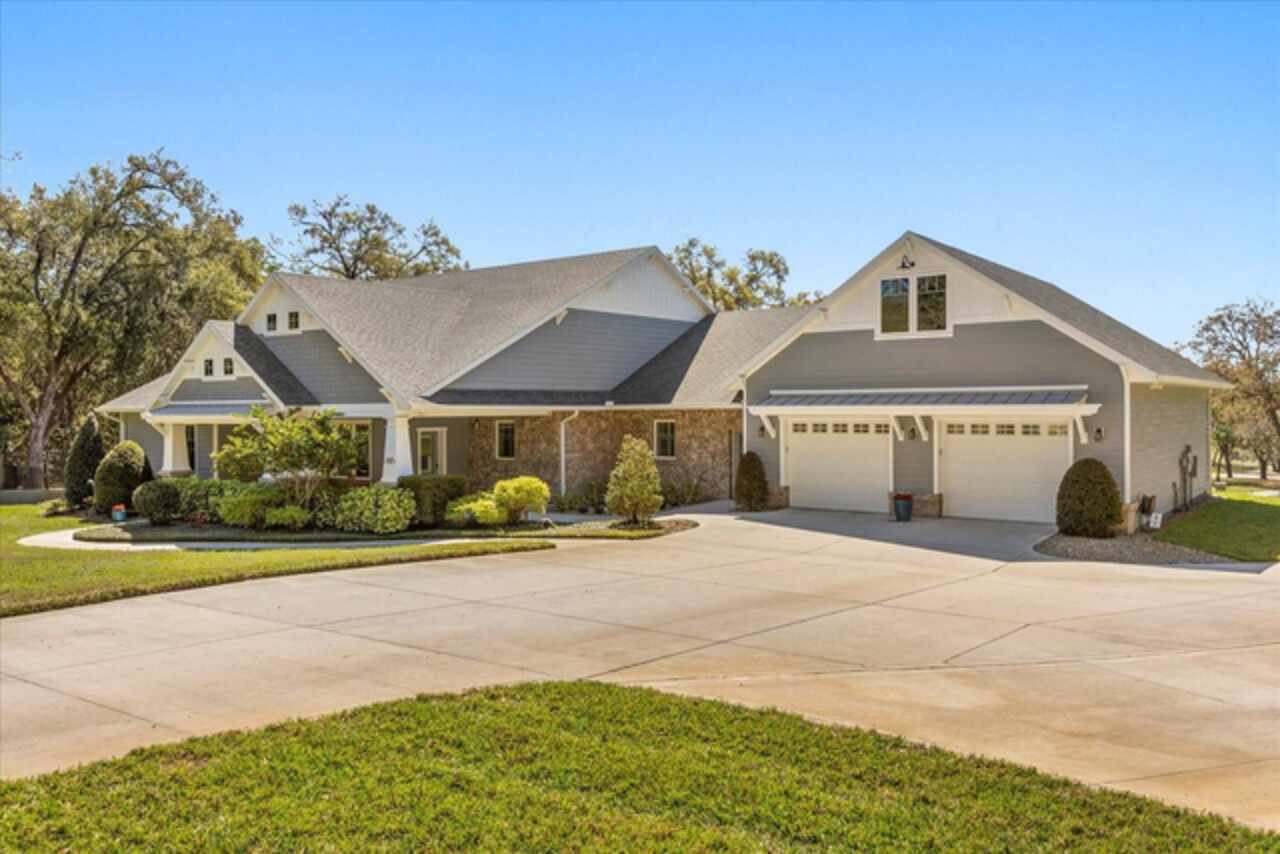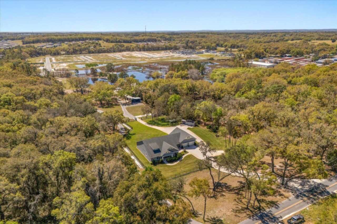 This 7-plus acre estate blends country charm and modern conveniences with scenic rolling lawns, mature trees, a private pond and multiple buildings. The stunning custom-built home features a spacious front porch where one could spend hours enjoying the beauty of the outdoors. Inside, you’ll find gorgeous hardwood floors and plantation shutters throughout the home. Soaring beamed ceilings crafted from 100-year-old barn wood creates a warm ambiance. The kitchen stands out with custom 52” cabinetry, a copper farmhouse sink, natural stone chiseled-edge counters, and a 9’ reclaimed wood island with swiveling barstools. The primary suite doubles as a safe room with a concrete roof hidden beneath a decorative tray ceiling. Its en-suite bath includes split vanities, a walk-in closet, a double shower, and a claw-foot tub illuminated by a vintage 1930s light fixture. In addition to the three bedrooms, the home also includes a dedicated office with a private entrance, and an expansive screened back porch which invites you to sit and enjoy scenic views of your private ranch. Impact-resistant casement windows, Therma-Tru exterior doors with a multi-point locking system, a hard-wired Ring security system, and fully fenced grounds—including 2 acres enclosed with aluminum fencing on a 2’ concrete wall with custom steel gates—ensure peace of mind. An impressive 1, 835 SQFT attached drive-through garage accommodates 4+ large vehicles and includes a workshop, ample storage shelving, and attic access via a Versa Lift attic system. Included with other buildings situated toward the middle of the property is a 12’x24’ pump house, which houses the irrigation well pump and the standby 20, 000 watt whole-house diesel generator and offers cover for the 500-gallon diesel tank. Additionally, you’ll find a 15’x24’ air-conditioned cottage perfect for multiple uses, and two Pole Barns (22’x34’ and 60’x32’) with concrete floors and a 50-amp RV hook-up. **With Zillow’s new AI styling tool, simply click the wand icon on the photos to re-imagine the space in different looks.** Located just 2.5 miles from Mount Dora's vibrant historic district, this exceptional ranchette blends modern comforts with serene country living. Come experience this remarkable property in person and see its exceptional features firsthand.