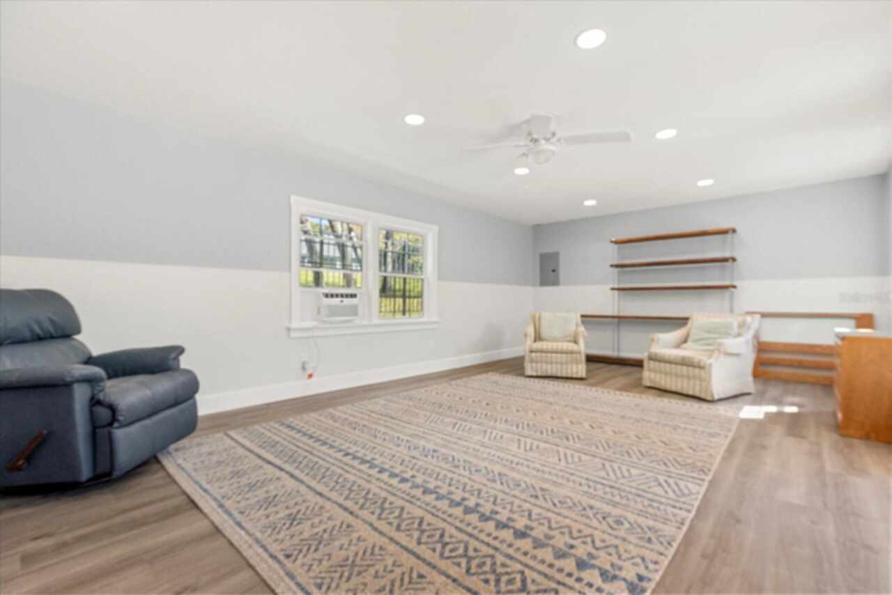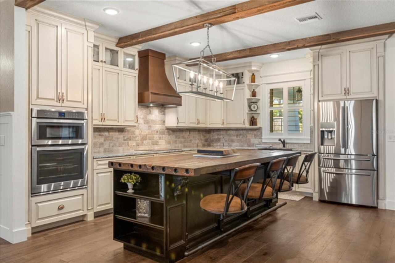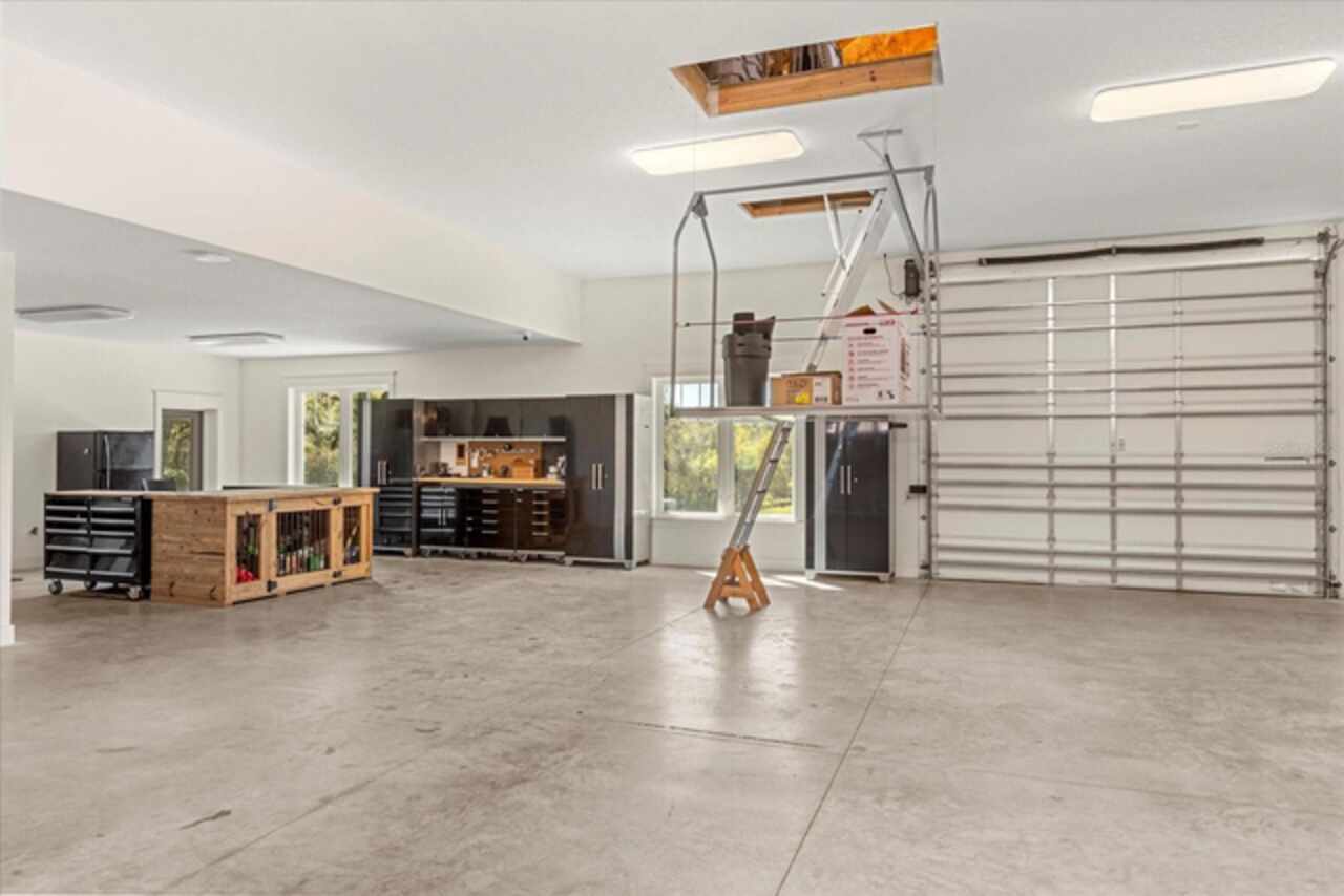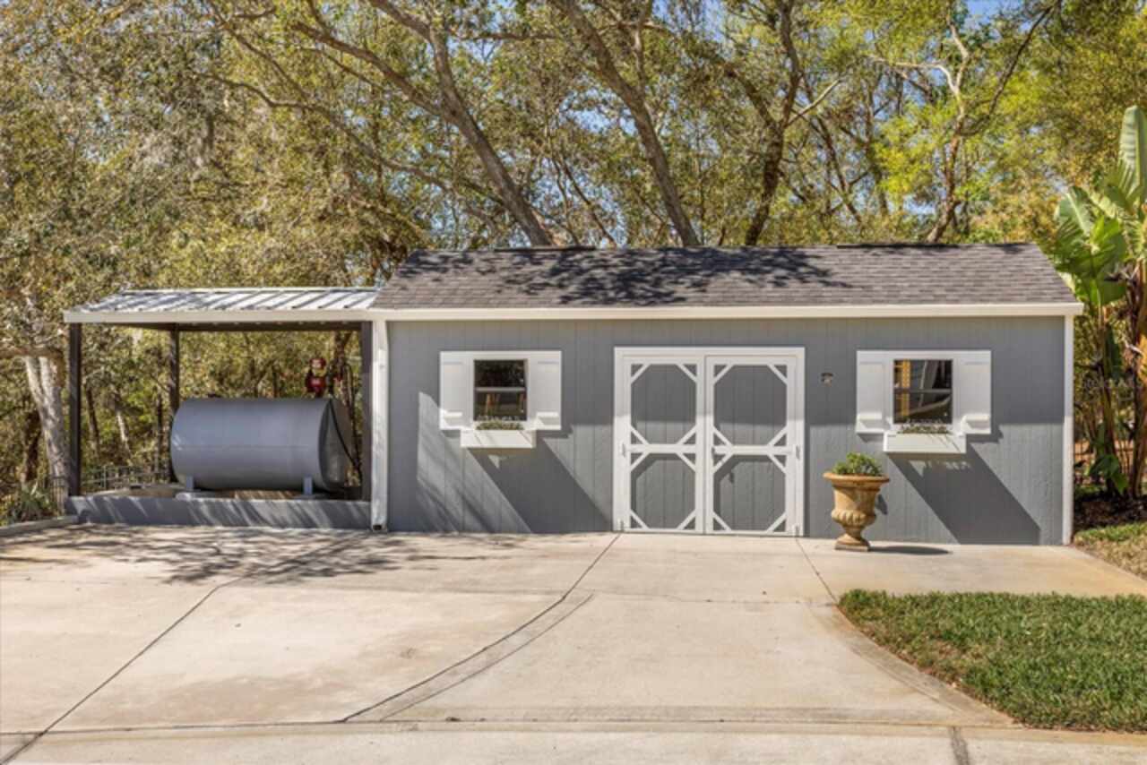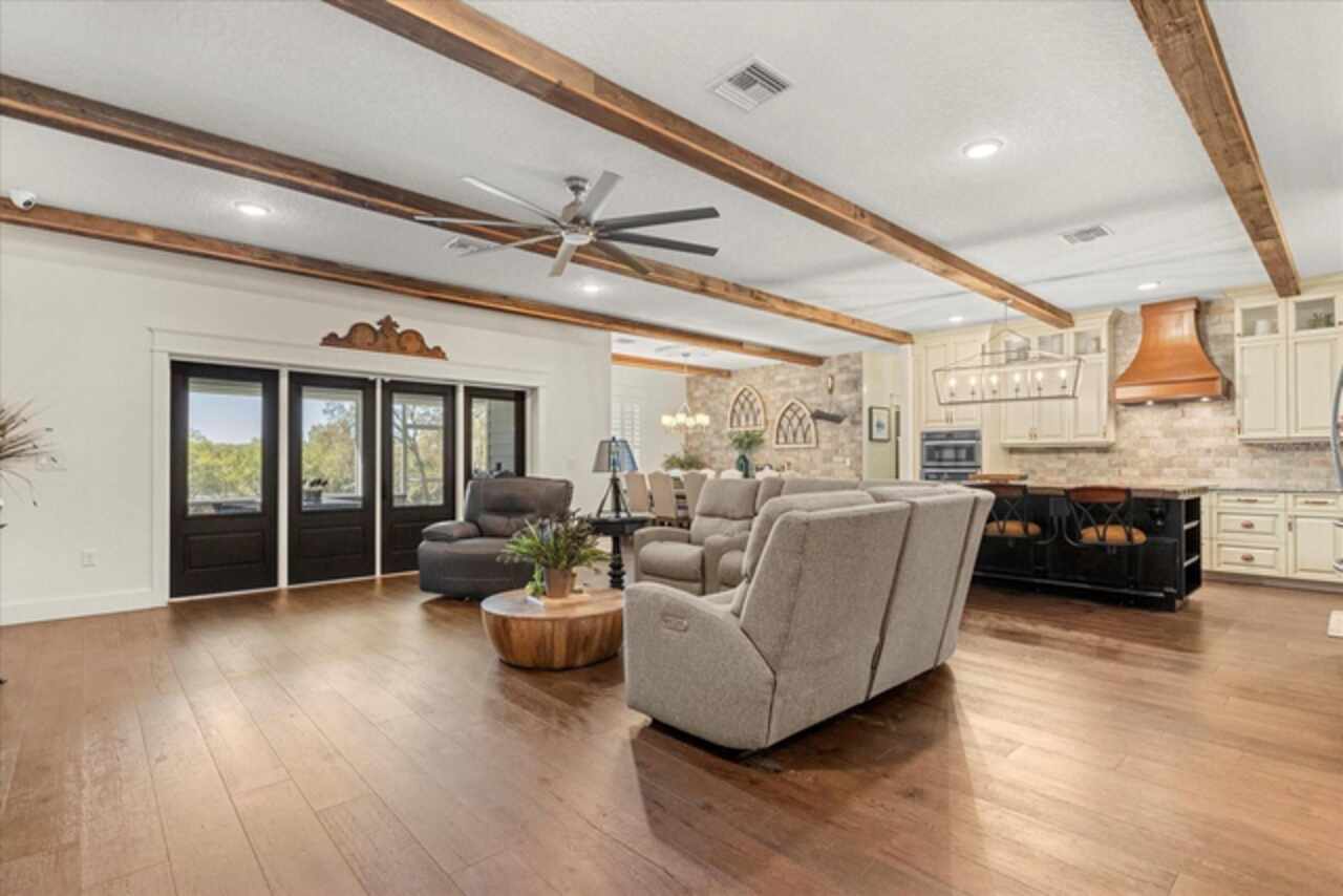 This 7-plus acre estate blends country charm and modern conveniences with scenic rolling lawns, mature trees, a private pond and multiple buildings. The stunning custom-built home features a spacious front porch where one could spend hours enjoying the beauty of the outdoors. Inside, you’ll find gorgeous hardwood floors and plantation shutters throughout the home. Soaring beamed ceilings crafted from 100-year-old barn wood creates a warm ambiance. The kitchen stands out with custom 52” cabinetry, a copper farmhouse sink, natural stone chiseled-edge counters, and a 9’ reclaimed wood island with swiveling barstools. The primary suite doubles as a safe room with a concrete roof hidden beneath a decorative tray ceiling. Its en-suite bath includes split vanities, a walk-in closet, a double shower, and a claw-foot tub illuminated by a vintage 1930s light fixture. In addition to the three bedrooms, the home also includes a dedicated office with a private entrance, and an expansive screened back porch which invites you to sit and enjoy scenic views of your private ranch. Impact-resistant casement windows, Therma-Tru exterior doors with a multi-point locking system, a hard-wired Ring security system, and fully fenced grounds—including 2 acres enclosed with aluminum fencing on a 2’ concrete wall with custom steel gates—ensure peace of mind. An impressive 1, 835 SQFT attached drive-through garage accommodates 4+ large vehicles and includes a workshop, ample storage shelving, and attic access via a Versa Lift attic system. Included with other buildings situated toward the middle of the property is a 12’x24’ pump house, which houses the irrigation well pump and the standby 20, 000 watt whole-house diesel generator and offers cover for the 500-gallon diesel tank. Additionally, you’ll find a 15’x24’ air-conditioned cottage perfect for multiple uses, and two Pole Barns (22’x34’ and 60’x32’) with concrete floors and a 50-amp RV hook-up. **With Zillow’s new AI styling tool, simply click the wand icon on the photos to re-imagine the space in different looks.** Located just 2.5 miles from Mount Dora's vibrant historic district, this exceptional ranchette blends modern comforts with serene country living. Come experience this remarkable property in person and see its exceptional features firsthand.