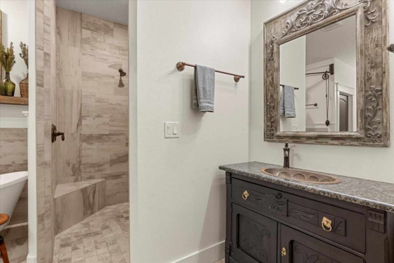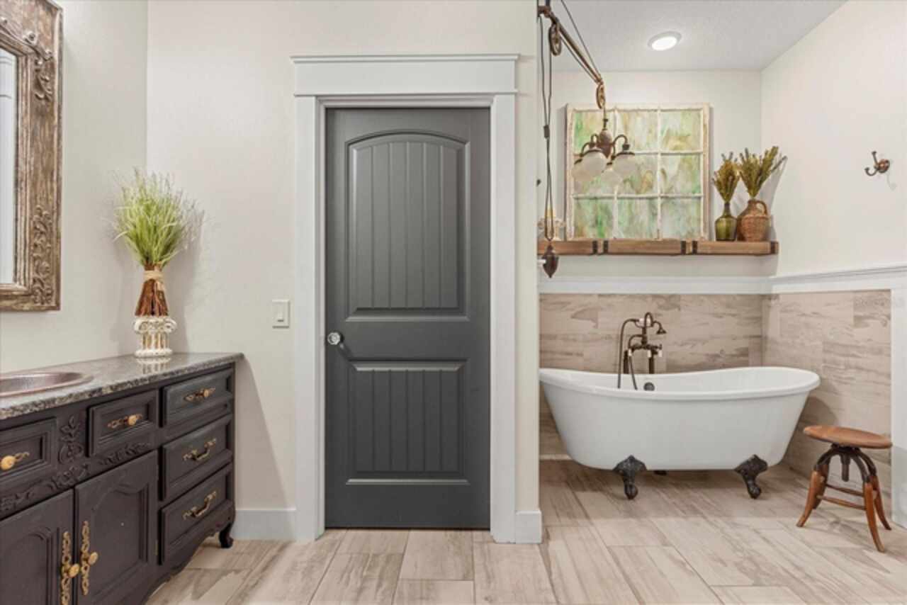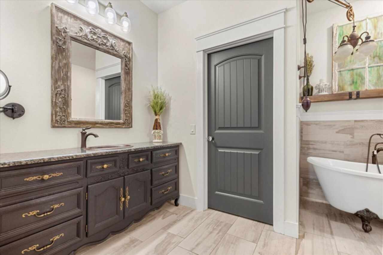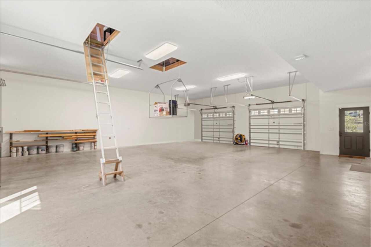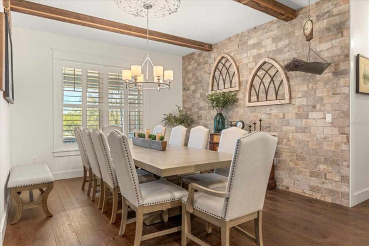 This 7-plus acre estate blends country charm and modern conveniences with scenic rolling lawns, mature trees, a private pond and multiple buildings. The stunning custom-built home features a spacious front porch where one could spend hours enjoying the beauty of the outdoors. Inside, you’ll find gorgeous hardwood floors and plantation shutters throughout the home. Soaring beamed ceilings crafted from 100-year-old barn wood creates a warm ambiance. The kitchen stands out with custom 52” cabinetry, a copper farmhouse sink, natural stone chiseled-edge counters, and a 9’ reclaimed wood island with swiveling barstools. The primary suite doubles as a safe room with a concrete roof hidden beneath a decorative tray ceiling. Its en-suite bath includes split vanities, a walk-in closet, a double shower, and a claw-foot tub illuminated by a vintage 1930s light fixture. In addition to the three bedrooms, the home also includes a dedicated office with a private entrance, and an expansive screened back porch which invites you to sit and enjoy scenic views of your private ranch. Impact-resistant casement windows, Therma-Tru exterior doors with a multi-point locking system, a hard-wired Ring security system, and fully fenced grounds—including 2 acres enclosed with aluminum fencing on a 2’ concrete wall with custom steel gates—ensure peace of mind. An impressive 1, 835 SQFT attached drive-through garage accommodates 4+ large vehicles and includes a workshop, ample storage shelving, and attic access via a Versa Lift attic system. Included with other buildings situated toward the middle of the property is a 12’x24’ pump house, which houses the irrigation well pump and the standby 20, 000 watt whole-house diesel generator and offers cover for the 500-gallon diesel tank. Additionally, you’ll find a 15’x24’ air-conditioned cottage perfect for multiple uses, and two Pole Barns (22’x34’ and 60’x32’) with concrete floors and a 50-amp RV hook-up. **With Zillow’s new AI styling tool, simply click the wand icon on the photos to re-imagine the space in different looks.** Located just 2.5 miles from Mount Dora's vibrant historic district, this exceptional ranchette blends modern comforts with serene country living. Come experience this remarkable property in person and see its exceptional features firsthand.