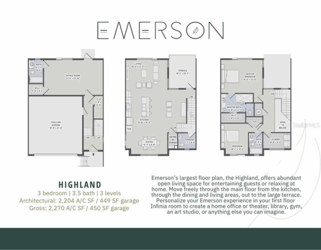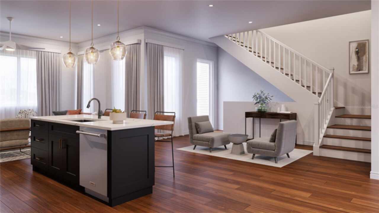 One or more photo(s) has been virtually staged. Under Construction. The Highland. Welcome to Emerson, a luxury residential community with unparalleled location, inspired by a unique blend of European design & a desire to encourage neighborly connection, celebrate healthy activity and provide easy access to nature. Emerson's 66 residences are clustered into 5 micro neighborhoods. The community will feature the Hub that functions as a permanent stage for resident gatherings, the pool, community garden and nature trails that will allow you to immerse yourself in Florida's incredible biodiversity from your doorstep. Emerson's The Highland offers abundant open living space, 3 bedrooms and 3.5 baths, a generous terrace, a 2-car garage! Sprawled on 2270 sq ft of heated and cooled space for comfortable entertaining or relaxing at home with open design filled with natural light through the generous amount of energy-efficient windows that connect your interior living space to Florida's beautiful outdoors! This unit has the "The Naturalist" finish boasting a beautiful kitchen on the second floor with soft-close cabinetry, granite counters, subway tile backsplash, stainless steel Whirlpool appliances that include a side by side refrigerator, range, canopy hood. The third level features a large master bedroom with en suite luxury bath with frameless shower enclosure, porcelain tile, shower niche, dual vanity and large walk-in closet. Secondary bedroom also has an en suite bath. Laundry room is conveniently located on the 3rd level.Off the 2 car-garage is the first floor Imagine room which can be the 3rd suite or den/home office or theater or anything you imagine. Resilient floors in main areas, 9-10' ceilings, large utility room are other features! Photos are of completed Highland and finishes vary. Upgraded design packages are featured in the photos and available in Phase 2, The Brahma, The Hamatreya, The Rhodora. Condo dues cover GRU water, trash, sewer, exterior maintenance, grounds maintenance, building insurance, pest control, amenities. Come experience the life you imagine! Call today for your private viewing and find your center at Emerson!