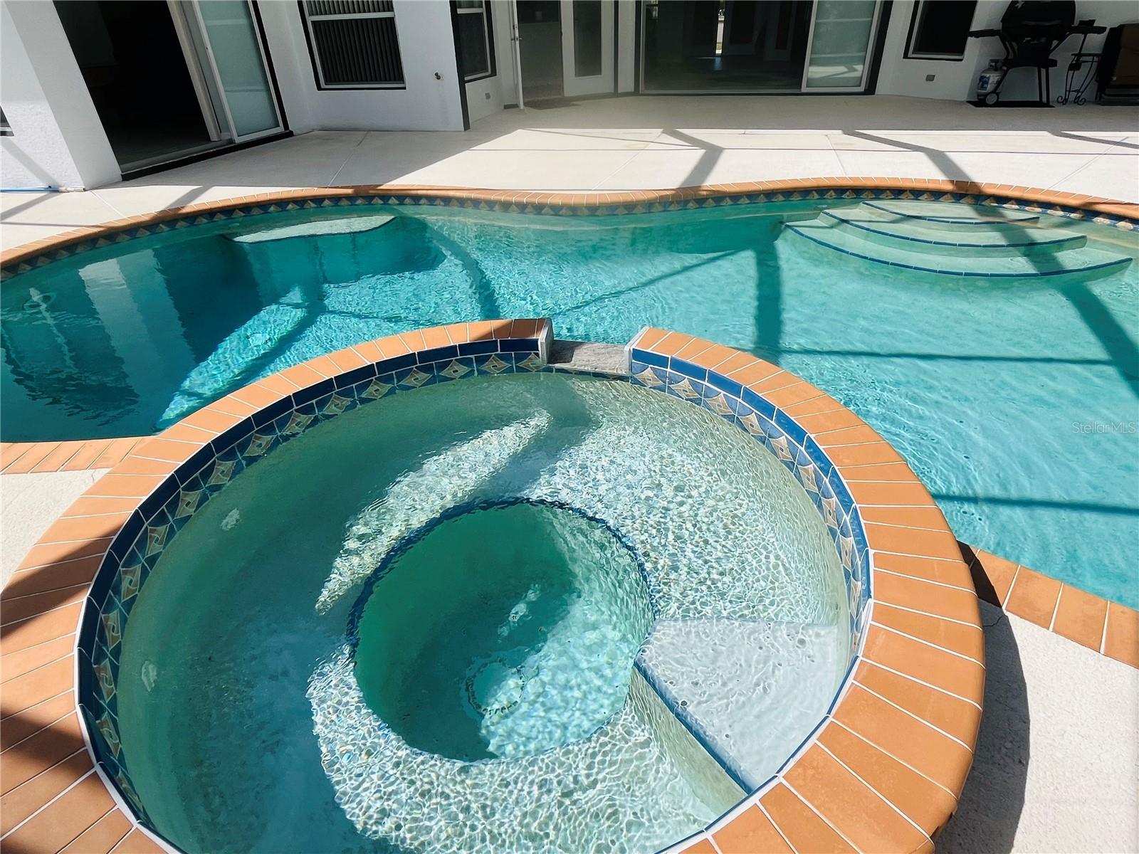 Freshly painted and move in ready! Imagine coming home to relax in your spa-like retreat. A grand entrance leads you to stunning views of the pool & hot tub with a cascading waterfall. This custom built home not only has a spacious living room w/10 ft. ceilings but also an 18x18 family room (pool table included)! The dream kitchen has Corian countertops with a peninsula w/bar seating and a center island. Loads of storage space and modern appliances. In addition to the breakfast nook with a view of the pool, you have a formal dining area. Plenty of space for entertaining! The split bedroom floorplan has the 2nd and 3rd bedrooms on one side and the primary w/en-suite bath on the other. Double walk-in closets, walk-in shower, soaking tub and a double sink vanity offers a relaxing place to unwind. This home also has a dedicated office w/a French door for privacy. The living room opens to the huge lanai w/caged heated pool and tropical landscaping. There is also a a half bath within the lanai and a separate sun area for lounging or to barbeque. This home sits on an oversized lot (.34 acre). New roof in 2023, new pool cage rescreen, exterior paint and landscaping in 2024. NO FLOOD ZONE!! Located in Deep Creek.