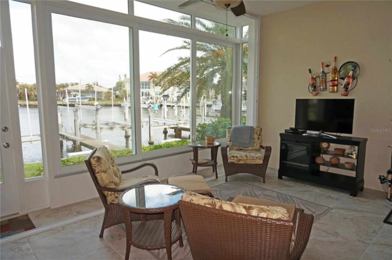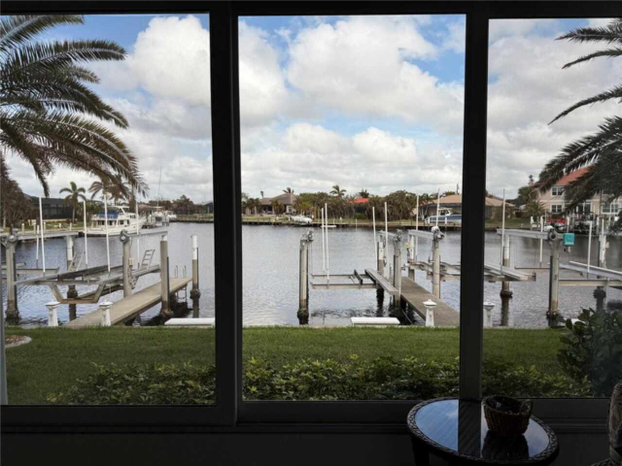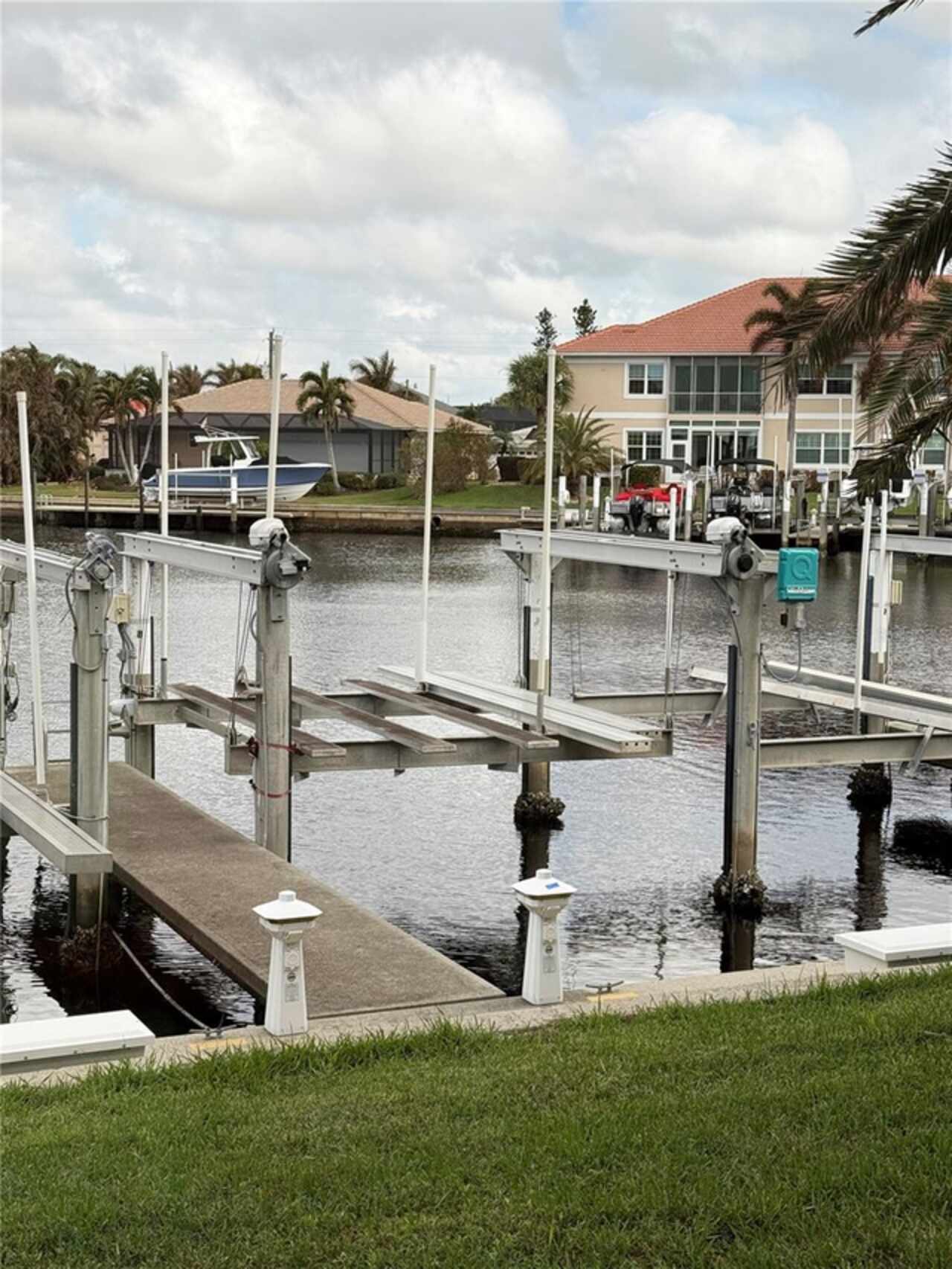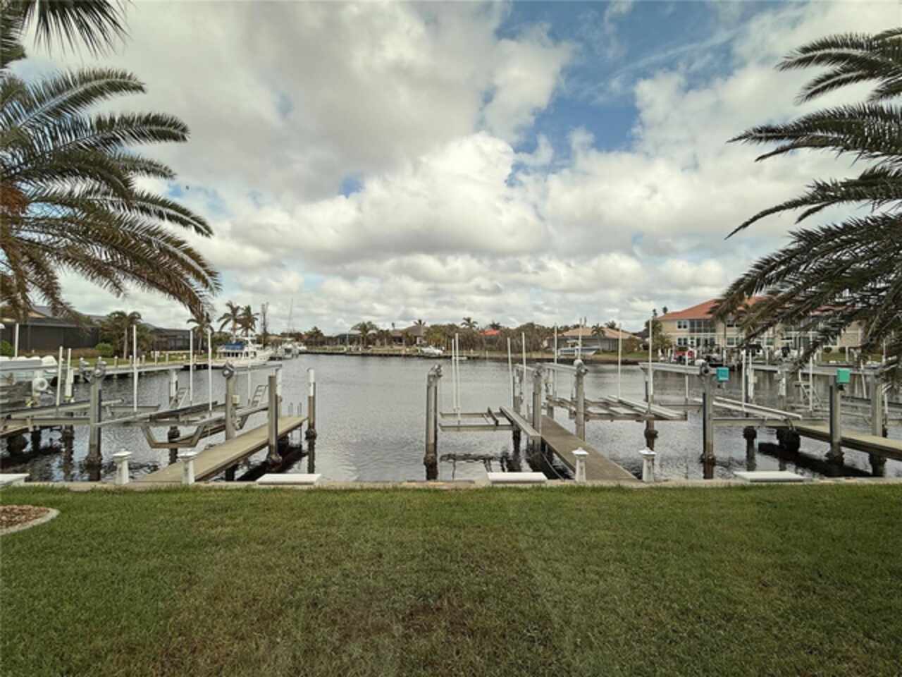 MOTIVATED SELLER! * MOST STAINLESS APPLIANCES NEW IN 2024*... Impressive upscale 3 Bedroom, 2 Bathroom FIRST FLOOR condo with attached 2 Car Garage. Located in the much sought after community of TARPON COVE in desirable deed restricted PUNTA GORDA ISLES. FABULOUS UNOBSTRUCTED EXPANSIVE WATER VIEW- views of the wide basin and canal! This is the most spacious first floor plan at Tarpon Cove with 2330 SF under air plus a 19x12 enclosed Lanai. There is an open and split bedroom floor plan with Foyer with tray ceiling/faux painting, Great Room, well appointed Kitchen, large Inside Laundry, storage room and Lanai. The Kitchen features white wood cabinetry with crown molding, stone counters, pantry with pull outs, tile backsplash, porcelain tile floors and dining area with large window offering lots of natural light. The appliances are stainless: French door refrigerator, induction oven/range and range hood, dishwasher and built in microwave. The Kitchen has a large pass thru to the spacious Great Room with porcelain tile floor and sliding glass doors to the Lanai. The Lanai has an awesome view of the water and marina through large sliding glass windows. There is a beautiful summer Kitchen with grill, sink and beverage refrigerator. The large Master Bedroom suite offers a water view through large windows, spacious his and hers custom closets and private bathroom with garden tub, walk in shower with glass block wall, dual sinks, wood vanities with stone counters. There are two additional Bedrooms with double closets- one is currently used as a Den/Office. The guest bathroom has a wood vanity, stone counters and walk in shower. The Inside Laundry offers front loading LG washer and dryer, sink, numerous cabinets and stone counters. *BRAND NEW A/C November 2024* The deeded dock space is #8 - there is a 30 foot concrete dock with 14, 000 lb boat lift. The seawall at Tarpon Cove is concrete and is maintained by the city of Punta Gorda. Tarpon Cove offers QUICK SAILBOAT ACCESS to Charlotte Harbor and on to the Gulf of Mexico. Other features include crown molding, plantation shutters and porcelain tile flooring throughout, 10 foot ceilings, 8 foot high 6 panel solid core doors, arched doorways, rounded corners, manabloc plumbing, Leviton integrated Network home system, paver driveway and walkways. Amenities at Tarpon Cove include heated swimming pool and inground spa, clubhouse with Kitchen, paver pool deck and walkways, sidewalks, park like setting. Monthly fee is only $975/month. * Ask your agent for the attachments, including the Floor Plan and dates of appliances and upgrades* TARPON COVE is a waterfront community situated on 10 acres. Tarpon Cove offers outstanding sailboat access and also has a one acre lake with decorative light fountain. There is an on site 31 slip boat basin. This community is known for it's lush tropical landscaping as well as spacious, luxurious floor plans. There are only 60 condominium homes, 4 units to a building. Construction features include concrete block construction, concrete decking between floors, 8 inch concrete insulated block party walls, ** NEW TILE ROOF 2023 **. Tarpon Cove is 5 minutes from Golf and 10 minutes from historic downtown Punta Gorda shopping, dining, medical care, waterfront parks, boat ramps, fishing piers, walking and biking paths, art galleries, Fishermen's Village, Charlotte Harbor Event Center, events and more! This is a rare opportunity to own a stunning unit in an outstanding community!
