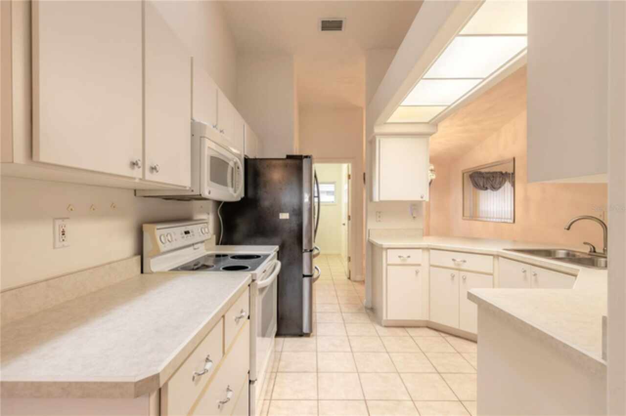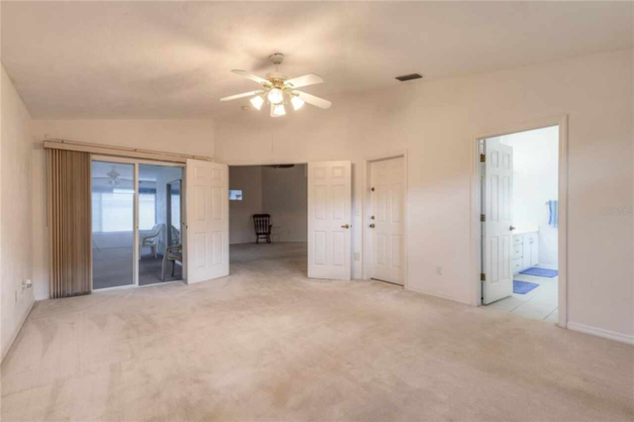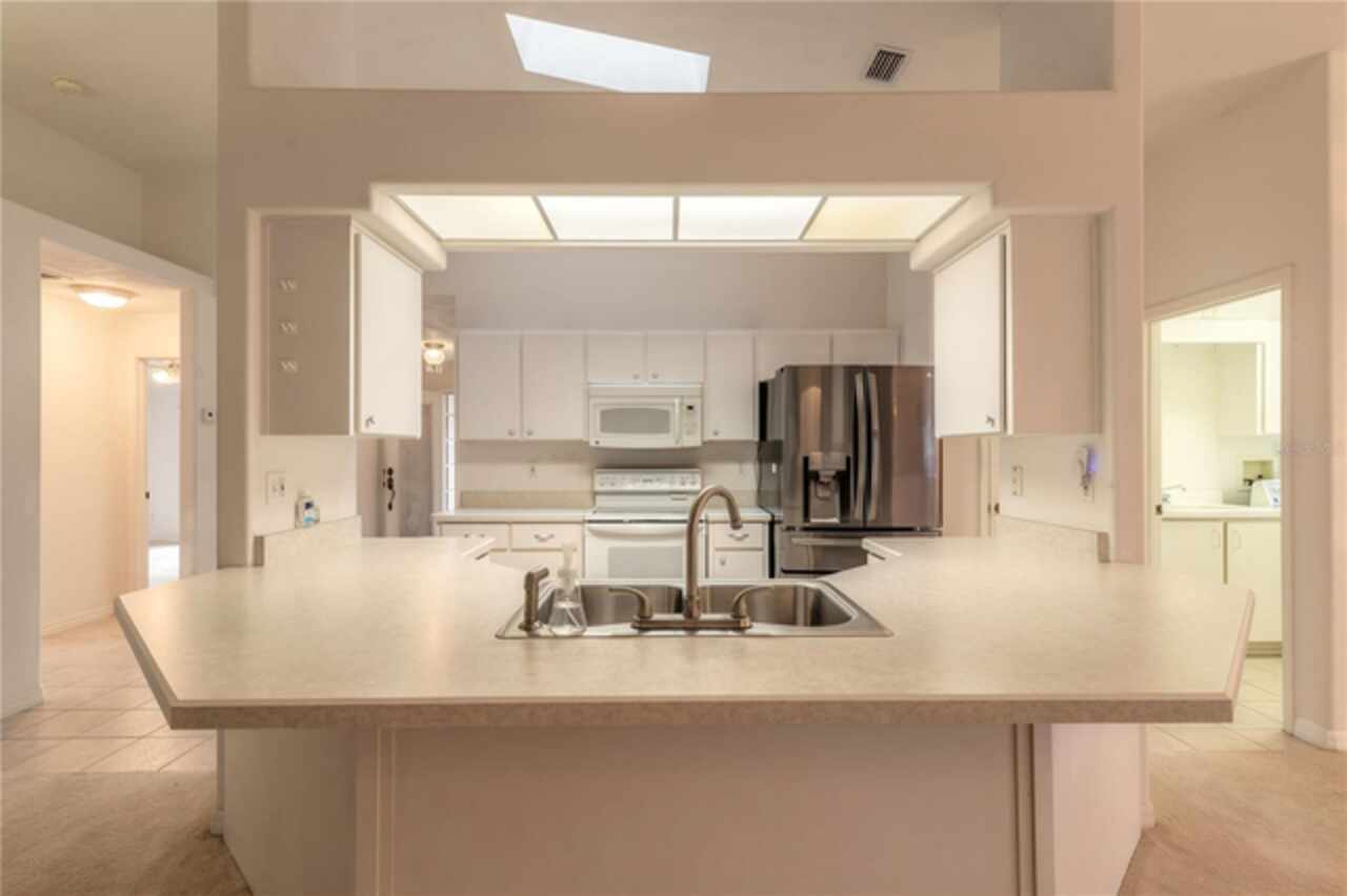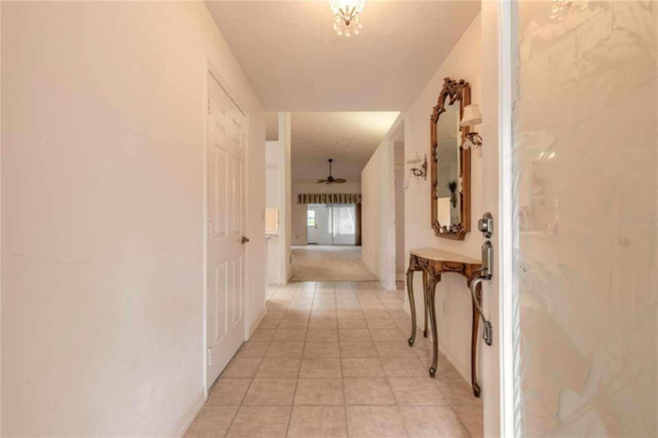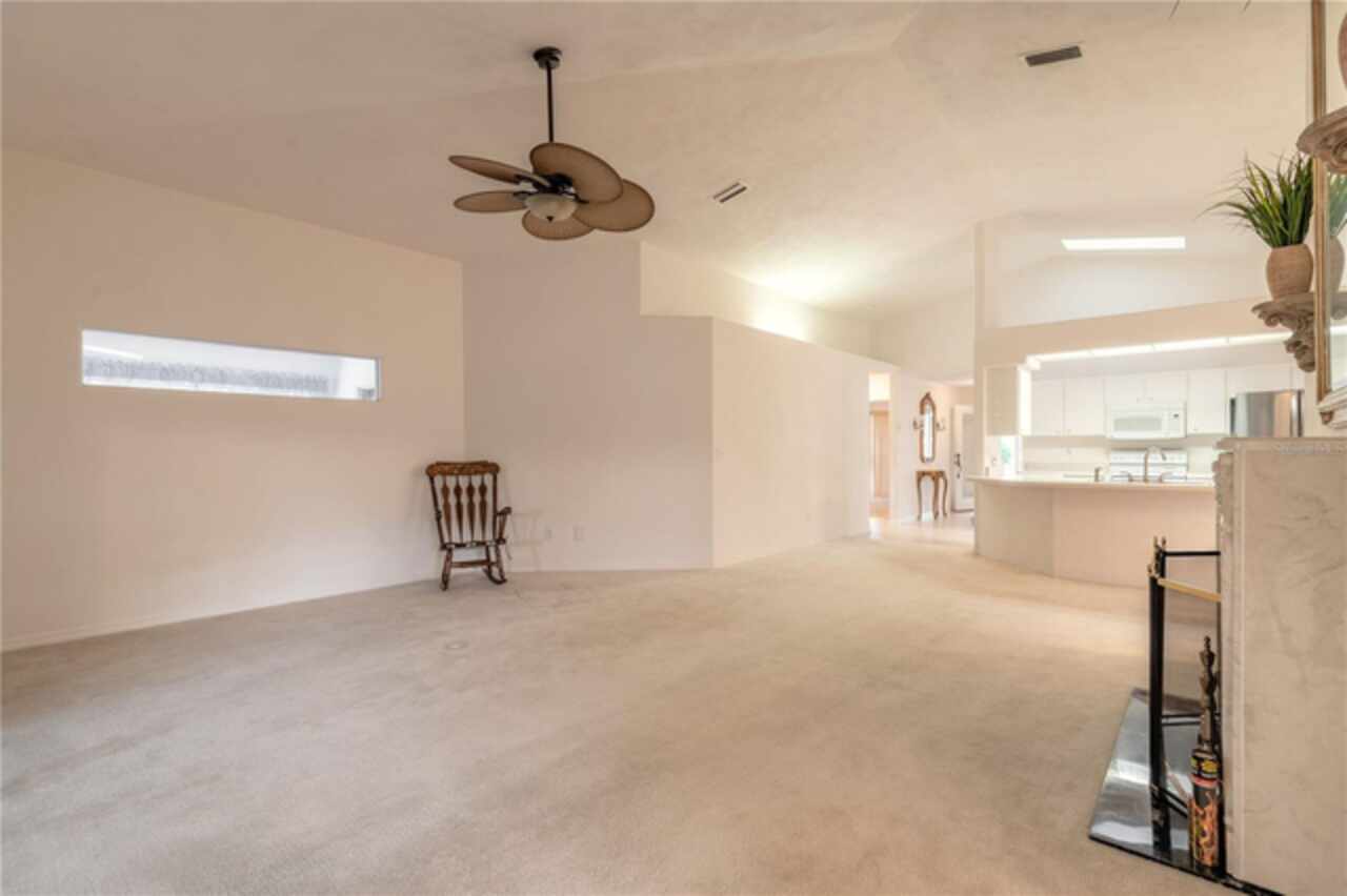Welcome to your Golf Course Oasis! The perfect slice of Golf Course Living and priced to sell. This elegant 3 bedroom, 2 bath home boasts 2393 sqft living area with a bright open floor plan, very desirable split bedroom plan. Spacious En-Suite primary bedroom features walk-in closet with safe room. Generously sized guest bedrooms offering comfort and spaciousness. 19 x 9 glass enclosed 4 Season Florida Room has separate thermostat for heat/air offering views of the beautiful lushly landscaped and picturesque backyard and elegant Golf Course. This home creates the perfect setting for relaxing and entertaining guests- who will definitely be impressed. This beauty features a long list of extras: gorgeous electric fireplace in living room and lighted niche adding that added touch of classic elegance. Vaulted ceilings, lighted plant shelves, separate dining room, skylight, breakfast bar and pantry in kitchen, inside laundry room with sink, tankless hot water heater, central vacuum, gas hookup on rear patio for grill, transferable termite bond. This home offers the best of Florida Living delivering value, lifestyle and Pride of Ownership. If your looking for a full time residence or a vacation getaway this is the place to be where you can ride your golf cart, enjoy walks thru the pristine neighborhood or play that round of golf with neighbors and friends. All information is assumed accurate. Measurements are approximate. Buyers and or buyers agent to verify all and any information.