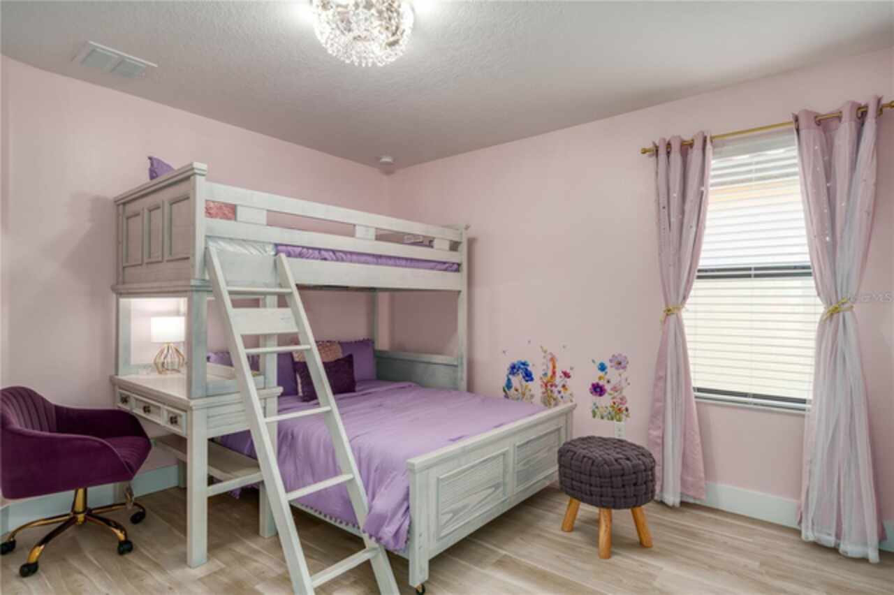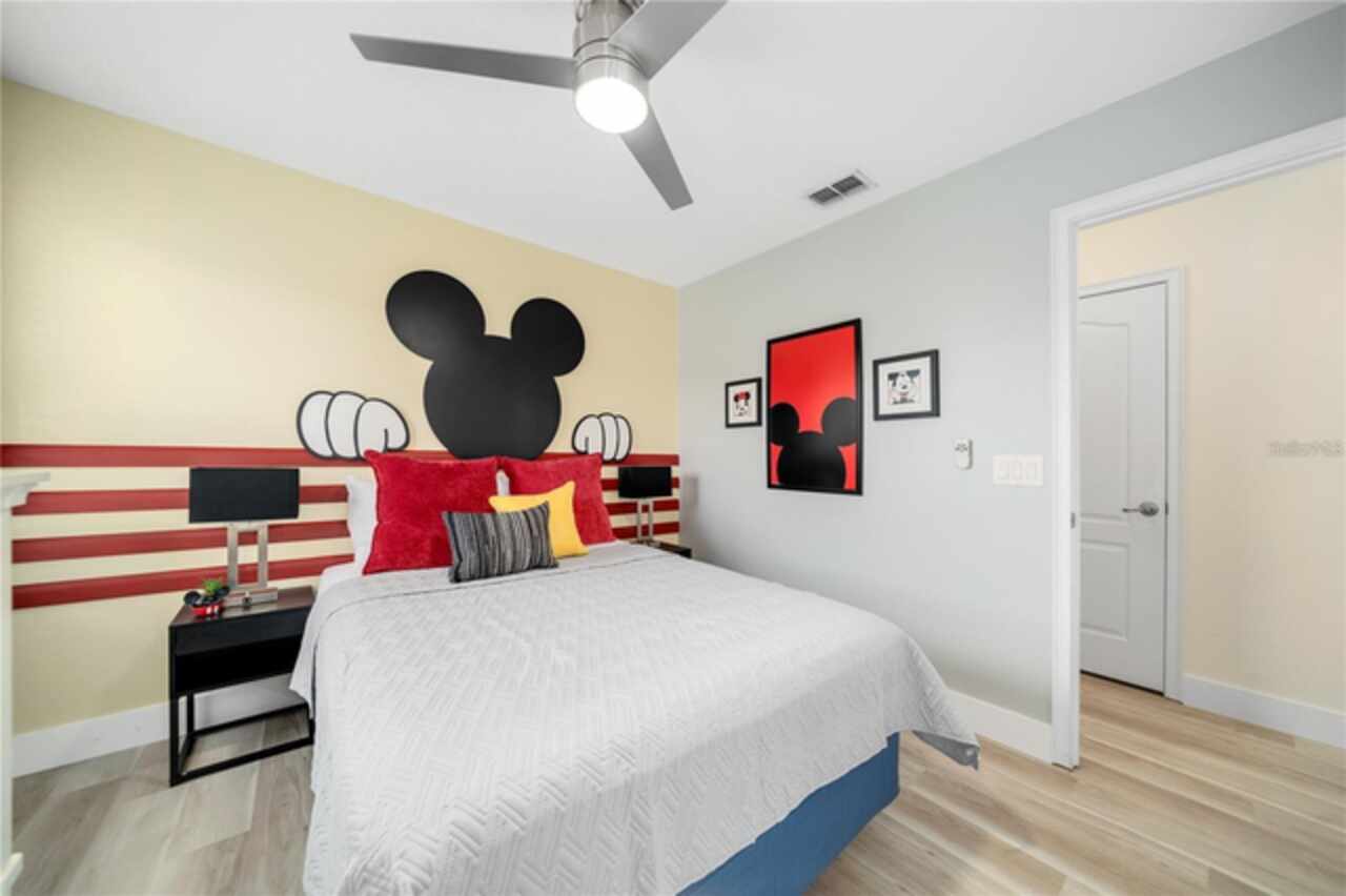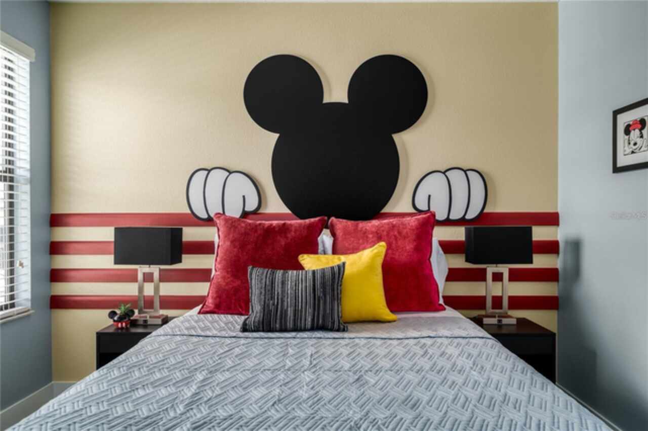 Fully Furnished Disney Resort Vacation Home on a Corner Lot with a Large Private Heated Pool! Located in the highly sought-after, 24-hour manned-gated community of Veranda Palms, this home offers everything you need for the perfect short-term rental or vacation retreat. From the moment you arrive, the lush landscaping and pristine curb appeal welcome you inside. This home has been meticulously maintained and lovingly cared for as a private vacation retreat, and it shows! It features all-new luxury resort-style furnishings that elevate the space to feel both comfortable and elegant. The pool deck was resurfaced in 2021, and the home boasts a brand-new AC. The chef of the family will love the brand-new stainless steel appliances, granite countertops, and natural gas stove, powered by underground natural gas—an uncommon and valuable feature! The open floor plan is perfect for entertaining, with the kitchen overlooking the family room and out to the sparkling private pool, which offers the perfect backdrop for those breathtaking Florida sunrises. With two master suites (one on each level), it’s designed to accommodate everyone comfortably. Upstairs, you’ll find a bright and spacious loft, perfect as a second living space or entertainment area. The home offers five additional bedrooms, each custom-designed and themed to delight guests of all ages, from Disney’s Frozen and Mickey Mouse to more elegant designs. Located just 10 minutes from Walt Disney World, Veranda Palms offers exclusive access to incredible amenities, including a modern clubhouse, resort-style pool with a dual-slide mini waterpark, splash pad, a zero-entry pool, a large Jacuzzi, a covered picnic area, and a state-of-the-art fitness center. It’s surrounded by world-class golf courses, award-winning restaurants, and is just 15 minutes from SeaWorld, 20 minutes from Universal Studios, and close to all the fun in Orlando. Whether you’re looking for a vacation home or an investment property, this is an ideal opportunity in a fantastic location!