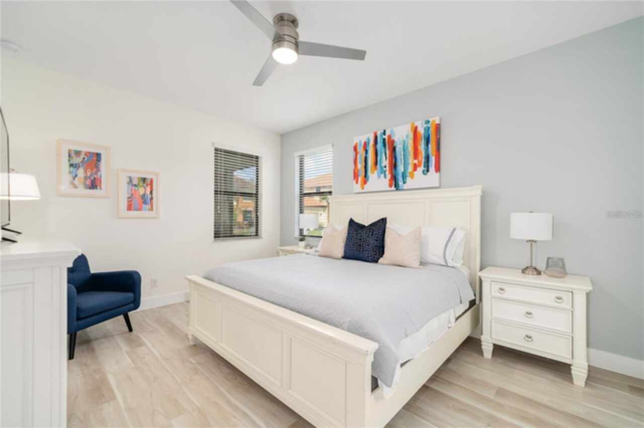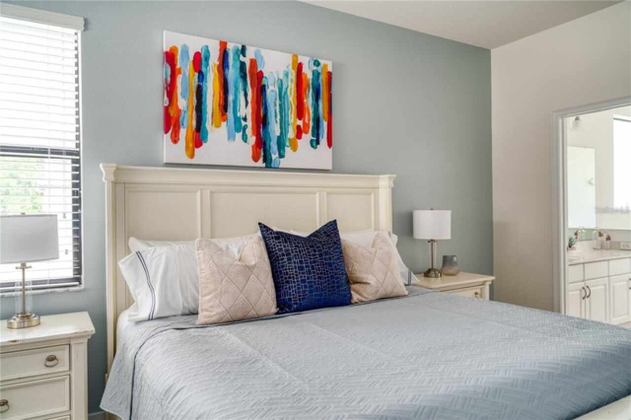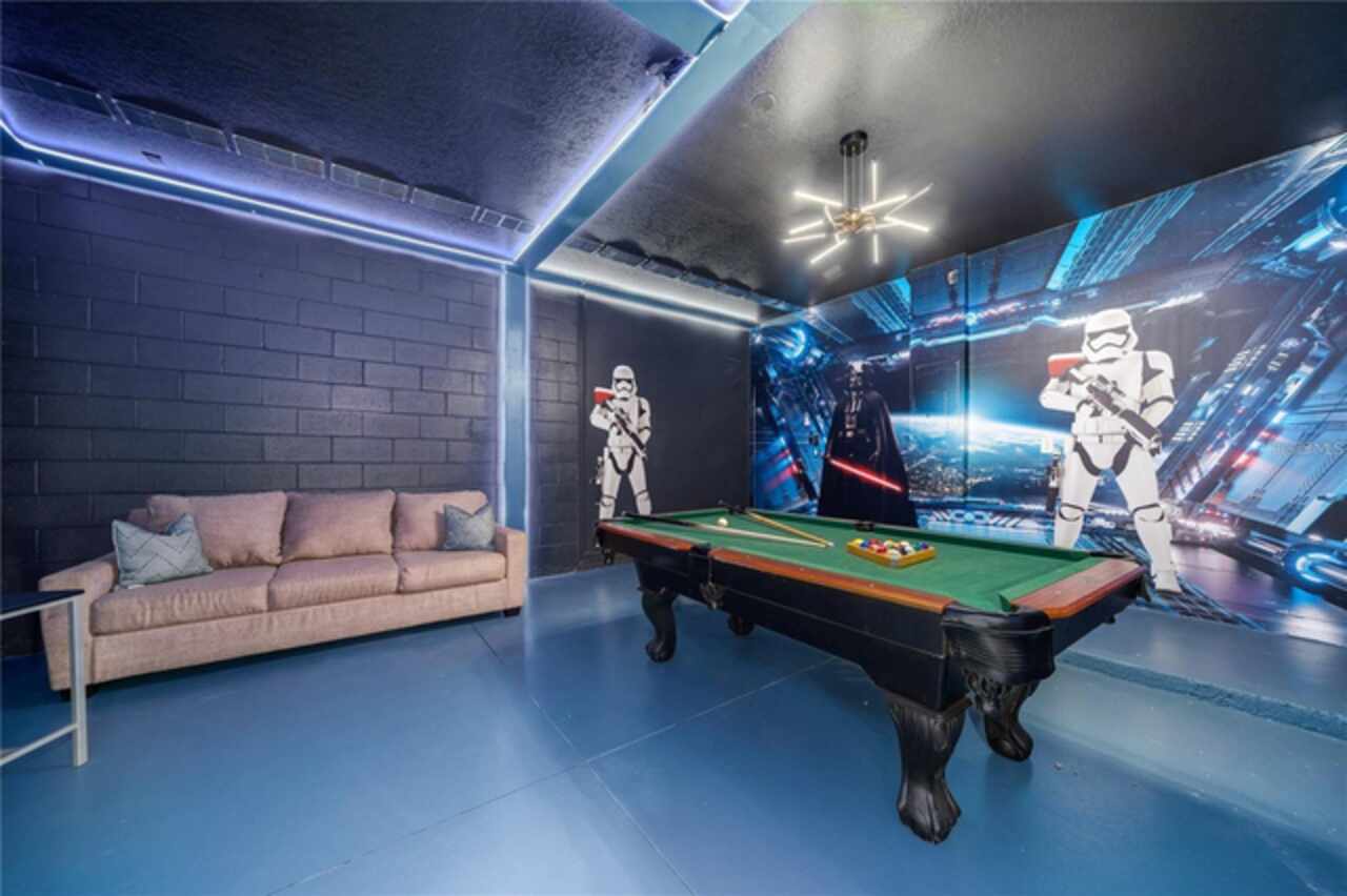 Fully Furnished Disney Resort Vacation Home on a Corner Lot with a Large Private Heated Pool! Located in the highly sought-after, 24-hour manned-gated community of Veranda Palms, this home offers everything you need for the perfect short-term rental or vacation retreat. From the moment you arrive, the lush landscaping and pristine curb appeal welcome you inside. This home has been meticulously maintained and lovingly cared for as a private vacation retreat, and it shows! It features all-new luxury resort-style furnishings that elevate the space to feel both comfortable and elegant. The pool deck was resurfaced in 2021, and the home boasts a brand-new AC. The chef of the family will love the brand-new stainless steel appliances, granite countertops, and natural gas stove, powered by underground natural gas—an uncommon and valuable feature! The open floor plan is perfect for entertaining, with the kitchen overlooking the family room and out to the sparkling private pool, which offers the perfect backdrop for those breathtaking Florida sunrises. With two master suites (one on each level), it’s designed to accommodate everyone comfortably. Upstairs, you’ll find a bright and spacious loft, perfect as a second living space or entertainment area. The home offers five additional bedrooms, each custom-designed and themed to delight guests of all ages, from Disney’s Frozen and Mickey Mouse to more elegant designs. Located just 10 minutes from Walt Disney World, Veranda Palms offers exclusive access to incredible amenities, including a modern clubhouse, resort-style pool with a dual-slide mini waterpark, splash pad, a zero-entry pool, a large Jacuzzi, a covered picnic area, and a state-of-the-art fitness center. It’s surrounded by world-class golf courses, award-winning restaurants, and is just 15 minutes from SeaWorld, 20 minutes from Universal Studios, and close to all the fun in Orlando. Whether you’re looking for a vacation home or an investment property, this is an ideal opportunity in a fantastic location!