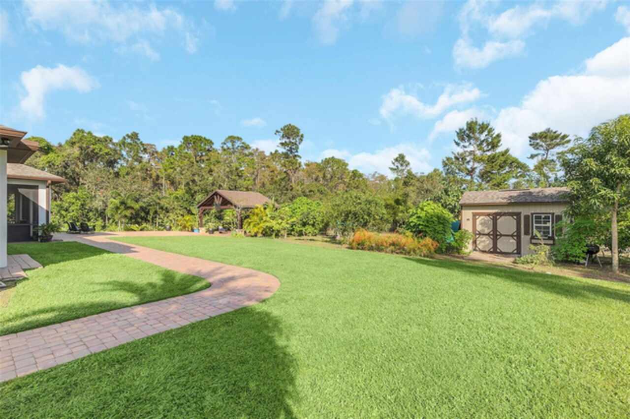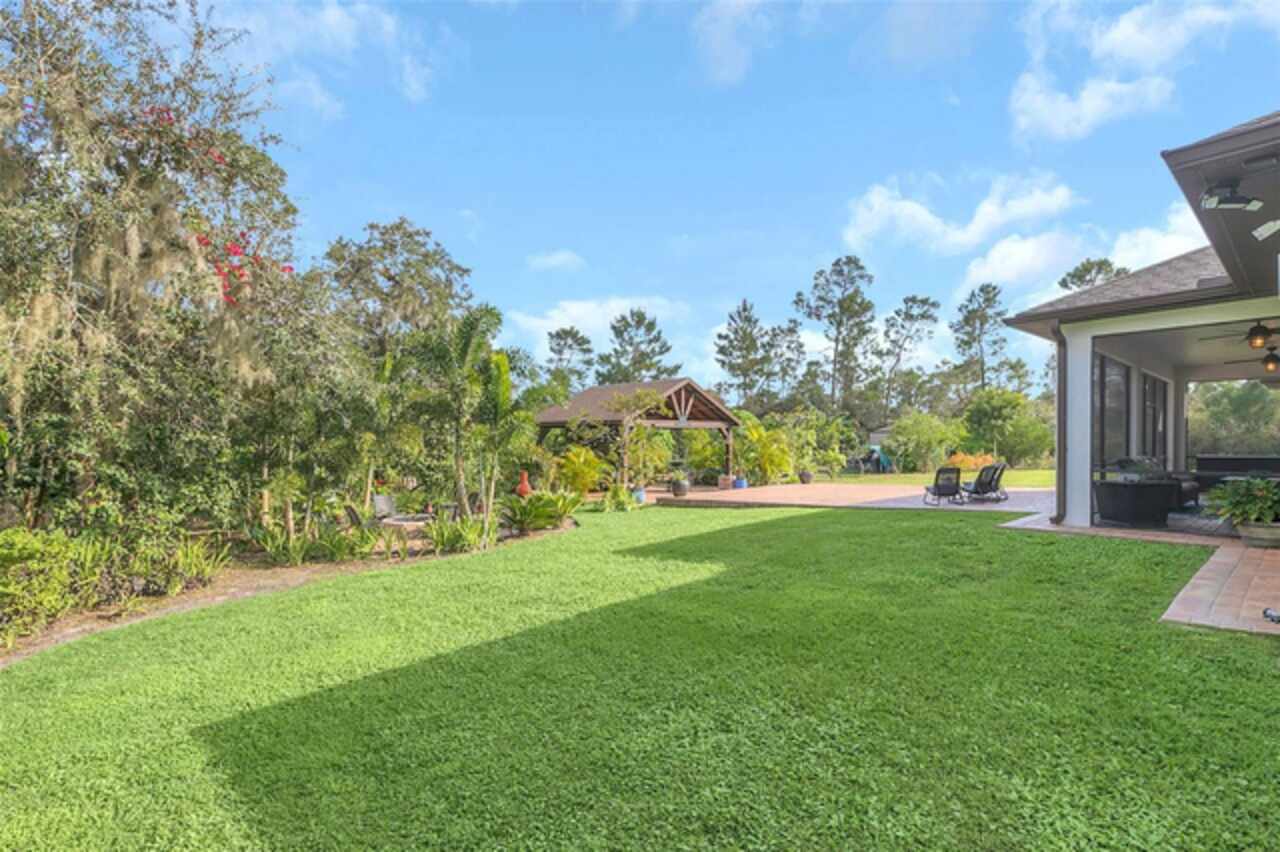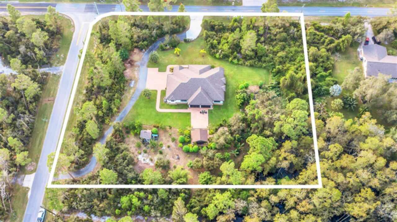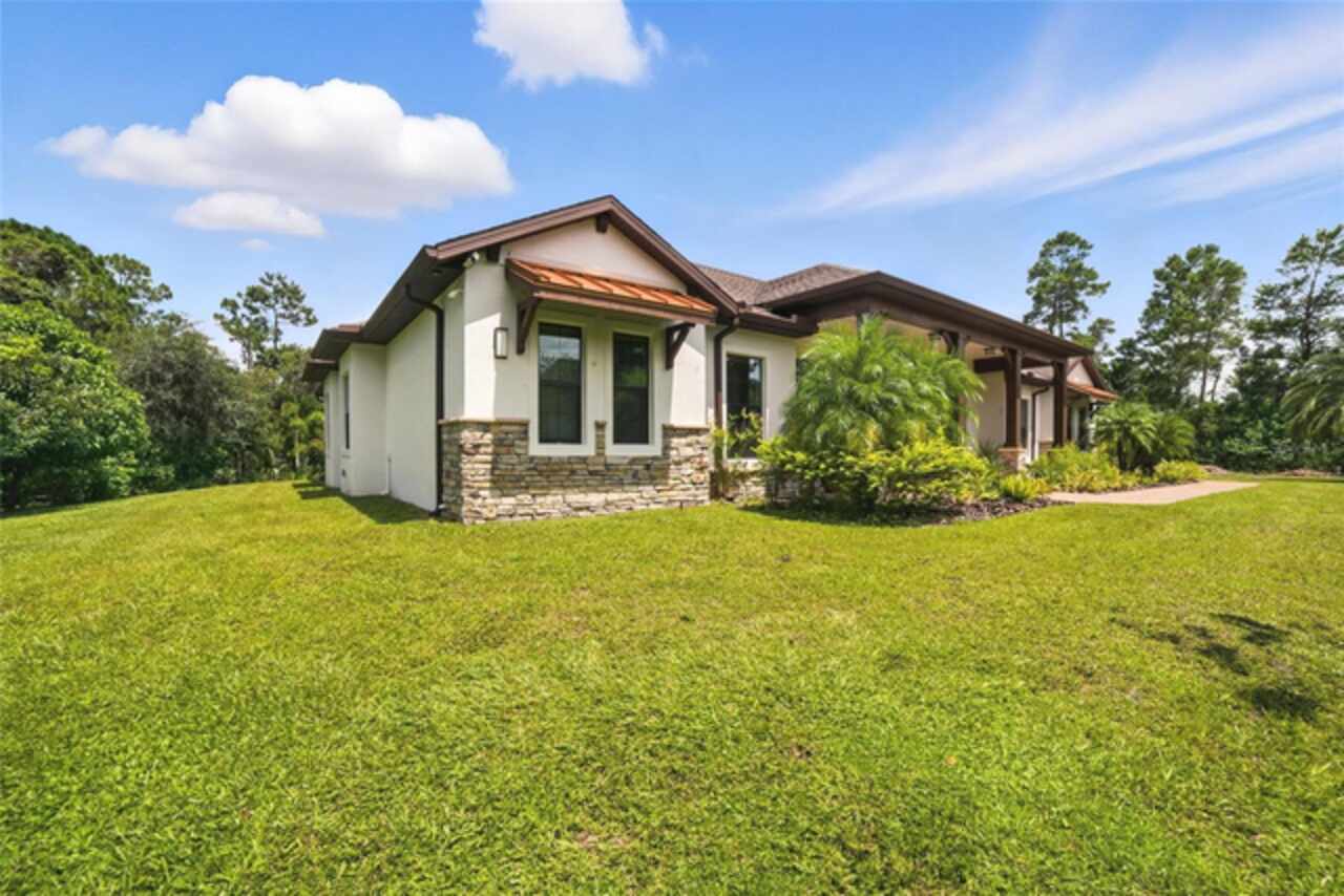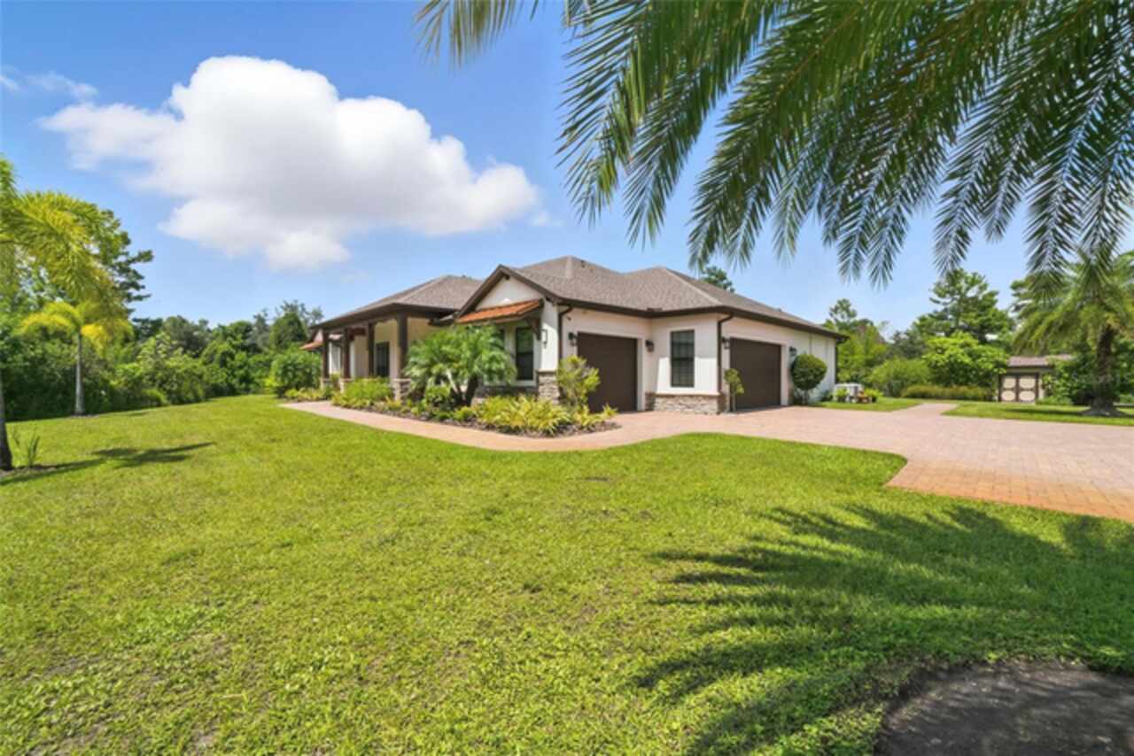 Under contract-accepting backup offers. Stunning Corner-Lot Estate on 2.15 Acres with Modern Amenities and Mature Fruit Trees. This home is a perfect blend of elegance, practicality, and thoughtful design. With no HOA and its proximity to the vibrant Lake Nona area, you can enjoy privacy while still having access to world-class amenities, dining, and entertainment. Discover this exceptional 3, 150 Sqft residence perfectly situated on a 2.15-acre corner lot, surrounded by vibrant gardens and over 50 mature fruit trees, including mango, avocado, pineapple, bananas, acerola, lime, passion fruit, starfruit, and more. The property boasts a charming large front porch, perfect for enjoying the peaceful setting. Step inside this open-concept home, where natural light fills the living spaces, highlighting beautiful architectural details like the exposed beams in the living area. This home features 4 spacious bedrooms and 3.5 bathrooms, thoughtfully designed to provide both comfort and functionality. Two of the bedrooms have cozy window seats and share a convenient Jack and Jill bathroom. The master suite is a true sanctuary, featuring a walk-in closet that doubles as a safe room. This secure space is constructed with cement block walls and reinforced with a separate double roof for added protection. The heart of the home is the beautiful kitchen, complete with a large center island perfect for meal prep, casual dining, or entertaining guests. The kitchen also features modern appliances, ample counter space, and a spacious pantry to accommodate all your culinary needs. Adjacent to the kitchen is a dedicated office for remote work or study. One of the standout features of this property is the versatile game room or TV room, offering additional space for entertainment. Convenience is a priority with a big laundry room and a spacious 3-car garage. The outdoor areas are perfect for gatherings, featuring a large back porch, a 20 x 16 pavilion, and a cozy fire pit—ideal for relaxing with family and friends. The property offers two asphalt-paved entrances, making access easy and convenient to Zuni Rd and Oesterle Rd. With expansive grounds, there's plenty of space for pets, or even adding a pool if desired. This home is a perfect blend of elegance, practicality, and thoughtful design. Schedule your private tour today and experience the exceptional lifestyle this property provides!