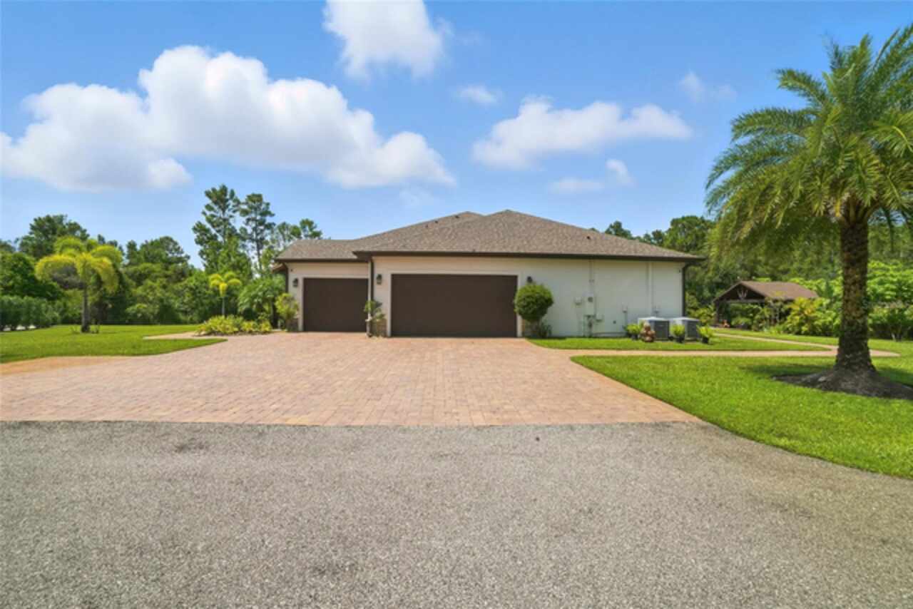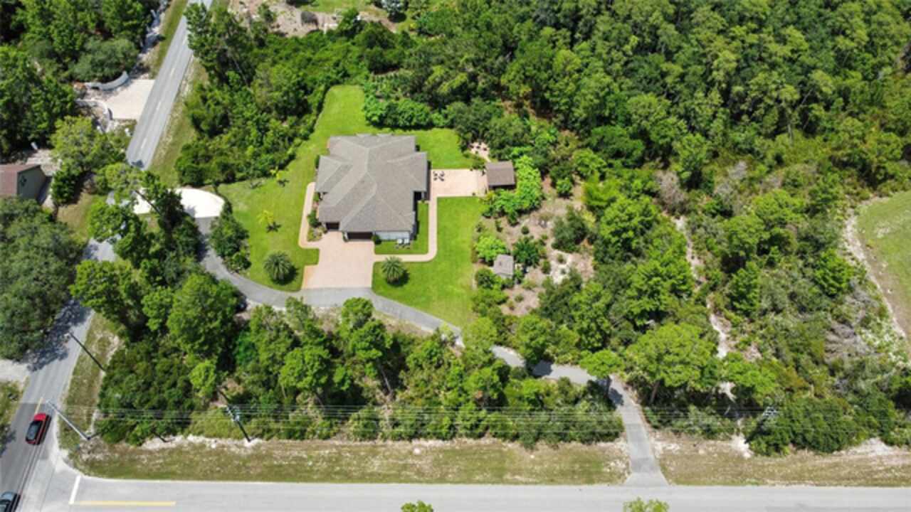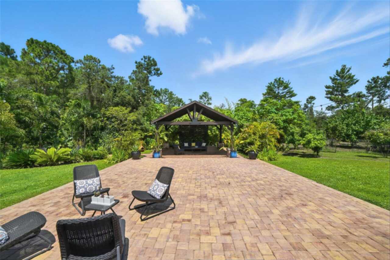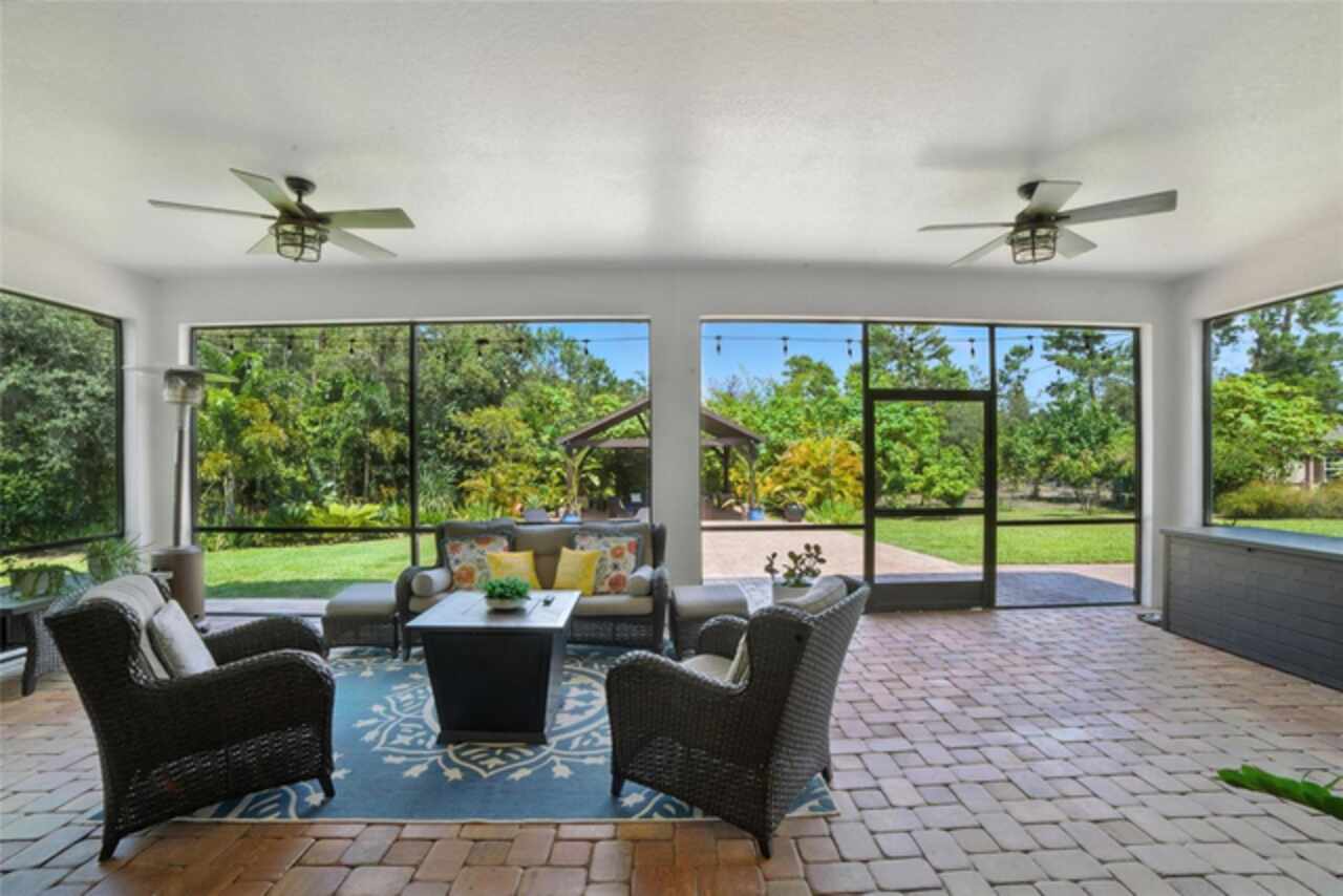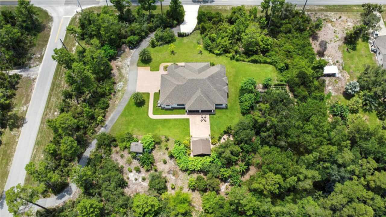 Under contract-accepting backup offers. Stunning Corner-Lot Estate on 2.15 Acres with Modern Amenities and Mature Fruit Trees. This home is a perfect blend of elegance, practicality, and thoughtful design. With no HOA and its proximity to the vibrant Lake Nona area, you can enjoy privacy while still having access to world-class amenities, dining, and entertainment. Discover this exceptional 3, 150 Sqft residence perfectly situated on a 2.15-acre corner lot, surrounded by vibrant gardens and over 50 mature fruit trees, including mango, avocado, pineapple, bananas, acerola, lime, passion fruit, starfruit, and more. The property boasts a charming large front porch, perfect for enjoying the peaceful setting. Step inside this open-concept home, where natural light fills the living spaces, highlighting beautiful architectural details like the exposed beams in the living area. This home features 4 spacious bedrooms and 3.5 bathrooms, thoughtfully designed to provide both comfort and functionality. Two of the bedrooms have cozy window seats and share a convenient Jack and Jill bathroom. The master suite is a true sanctuary, featuring a walk-in closet that doubles as a safe room. This secure space is constructed with cement block walls and reinforced with a separate double roof for added protection. The heart of the home is the beautiful kitchen, complete with a large center island perfect for meal prep, casual dining, or entertaining guests. The kitchen also features modern appliances, ample counter space, and a spacious pantry to accommodate all your culinary needs. Adjacent to the kitchen is a dedicated office for remote work or study. One of the standout features of this property is the versatile game room or TV room, offering additional space for entertainment. Convenience is a priority with a big laundry room and a spacious 3-car garage. The outdoor areas are perfect for gatherings, featuring a large back porch, a 20 x 16 pavilion, and a cozy fire pit—ideal for relaxing with family and friends. The property offers two asphalt-paved entrances, making access easy and convenient to Zuni Rd and Oesterle Rd. With expansive grounds, there's plenty of space for pets, or even adding a pool if desired. This home is a perfect blend of elegance, practicality, and thoughtful design. Schedule your private tour today and experience the exceptional lifestyle this property provides!
