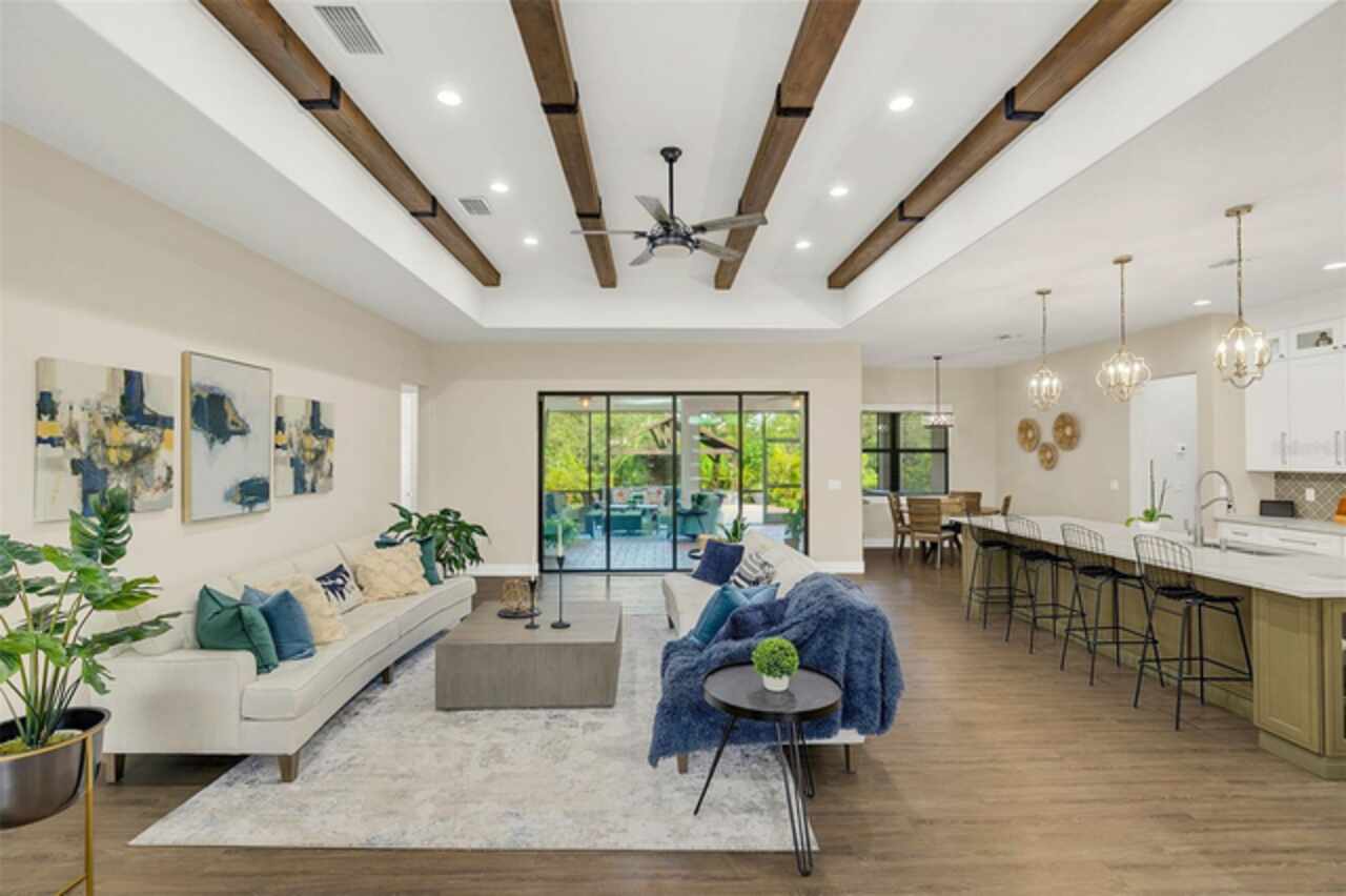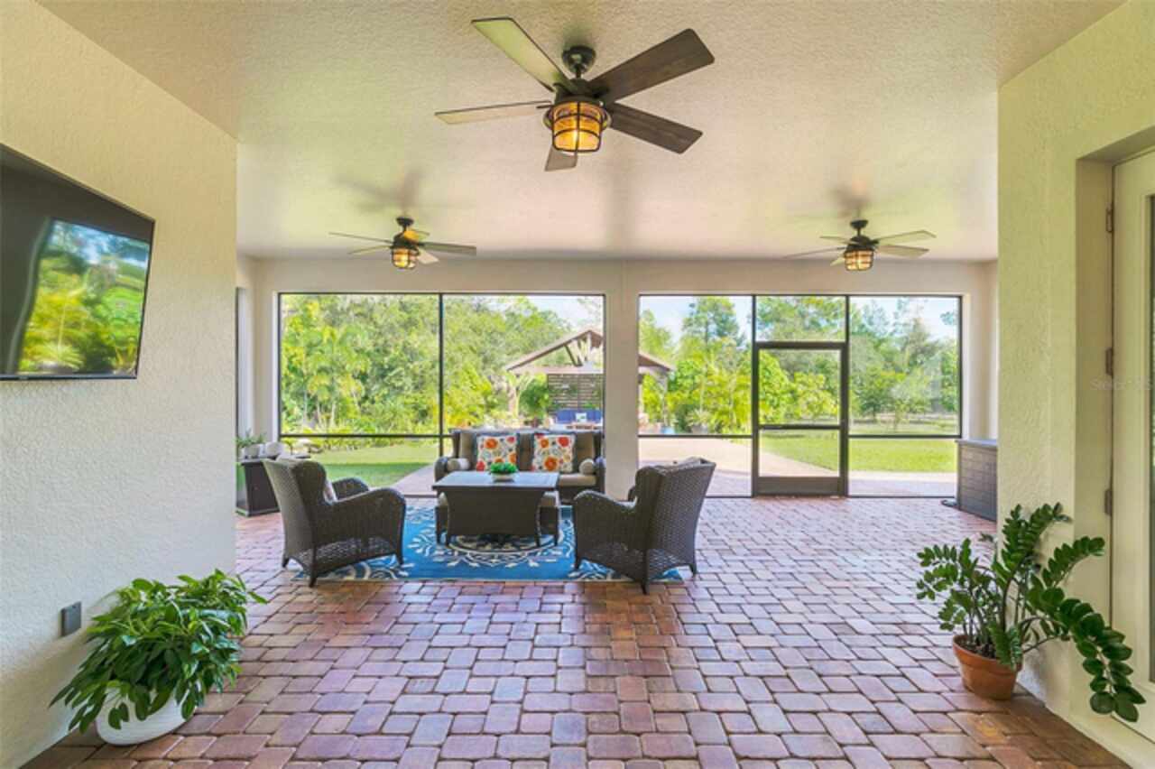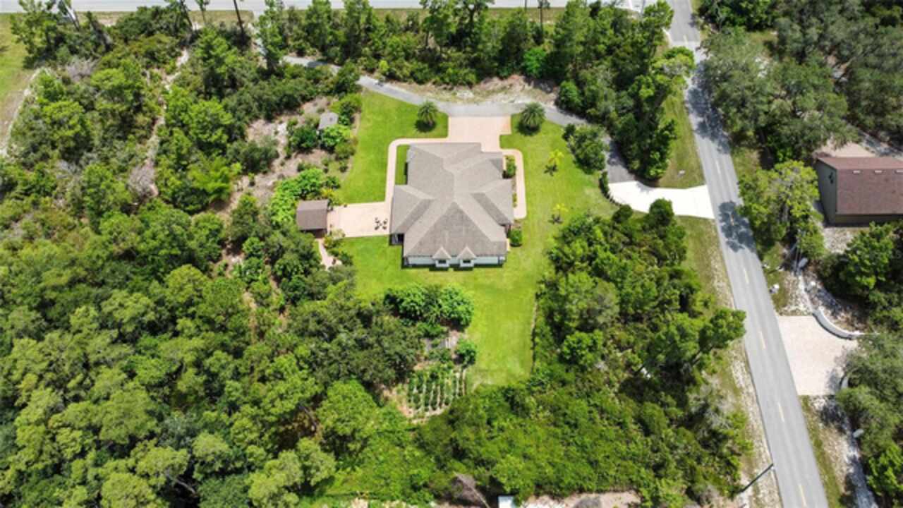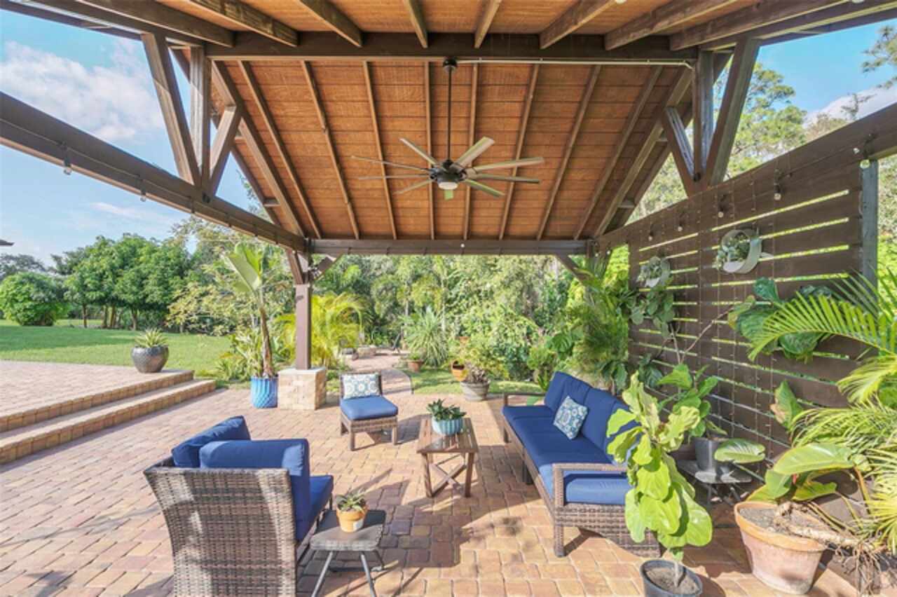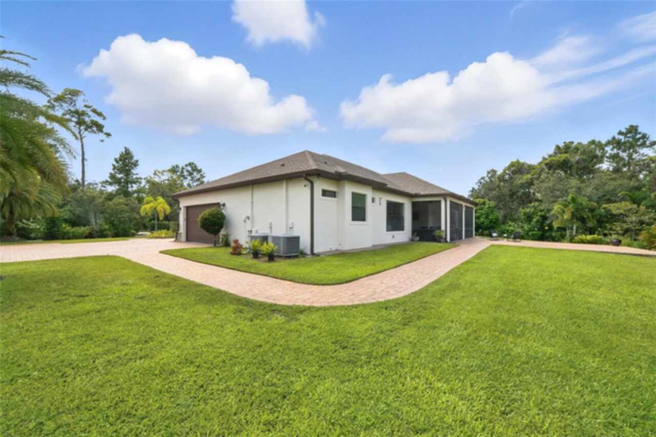 Under contract-accepting backup offers. Stunning Corner-Lot Estate on 2.15 Acres with Modern Amenities and Mature Fruit Trees. This home is a perfect blend of elegance, practicality, and thoughtful design. With no HOA and its proximity to the vibrant Lake Nona area, you can enjoy privacy while still having access to world-class amenities, dining, and entertainment. Discover this exceptional 3, 150 Sqft residence perfectly situated on a 2.15-acre corner lot, surrounded by vibrant gardens and over 50 mature fruit trees, including mango, avocado, pineapple, bananas, acerola, lime, passion fruit, starfruit, and more. The property boasts a charming large front porch, perfect for enjoying the peaceful setting. Step inside this open-concept home, where natural light fills the living spaces, highlighting beautiful architectural details like the exposed beams in the living area. This home features 4 spacious bedrooms and 3.5 bathrooms, thoughtfully designed to provide both comfort and functionality. Two of the bedrooms have cozy window seats and share a convenient Jack and Jill bathroom. The master suite is a true sanctuary, featuring a walk-in closet that doubles as a safe room. This secure space is constructed with cement block walls and reinforced with a separate double roof for added protection. The heart of the home is the beautiful kitchen, complete with a large center island perfect for meal prep, casual dining, or entertaining guests. The kitchen also features modern appliances, ample counter space, and a spacious pantry to accommodate all your culinary needs. Adjacent to the kitchen is a dedicated office for remote work or study. One of the standout features of this property is the versatile game room or TV room, offering additional space for entertainment. Convenience is a priority with a big laundry room and a spacious 3-car garage. The outdoor areas are perfect for gatherings, featuring a large back porch, a 20 x 16 pavilion, and a cozy fire pit—ideal for relaxing with family and friends. The property offers two asphalt-paved entrances, making access easy and convenient to Zuni Rd and Oesterle Rd. With expansive grounds, there's plenty of space for pets, or even adding a pool if desired. This home is a perfect blend of elegance, practicality, and thoughtful design. Schedule your private tour today and experience the exceptional lifestyle this property provides!