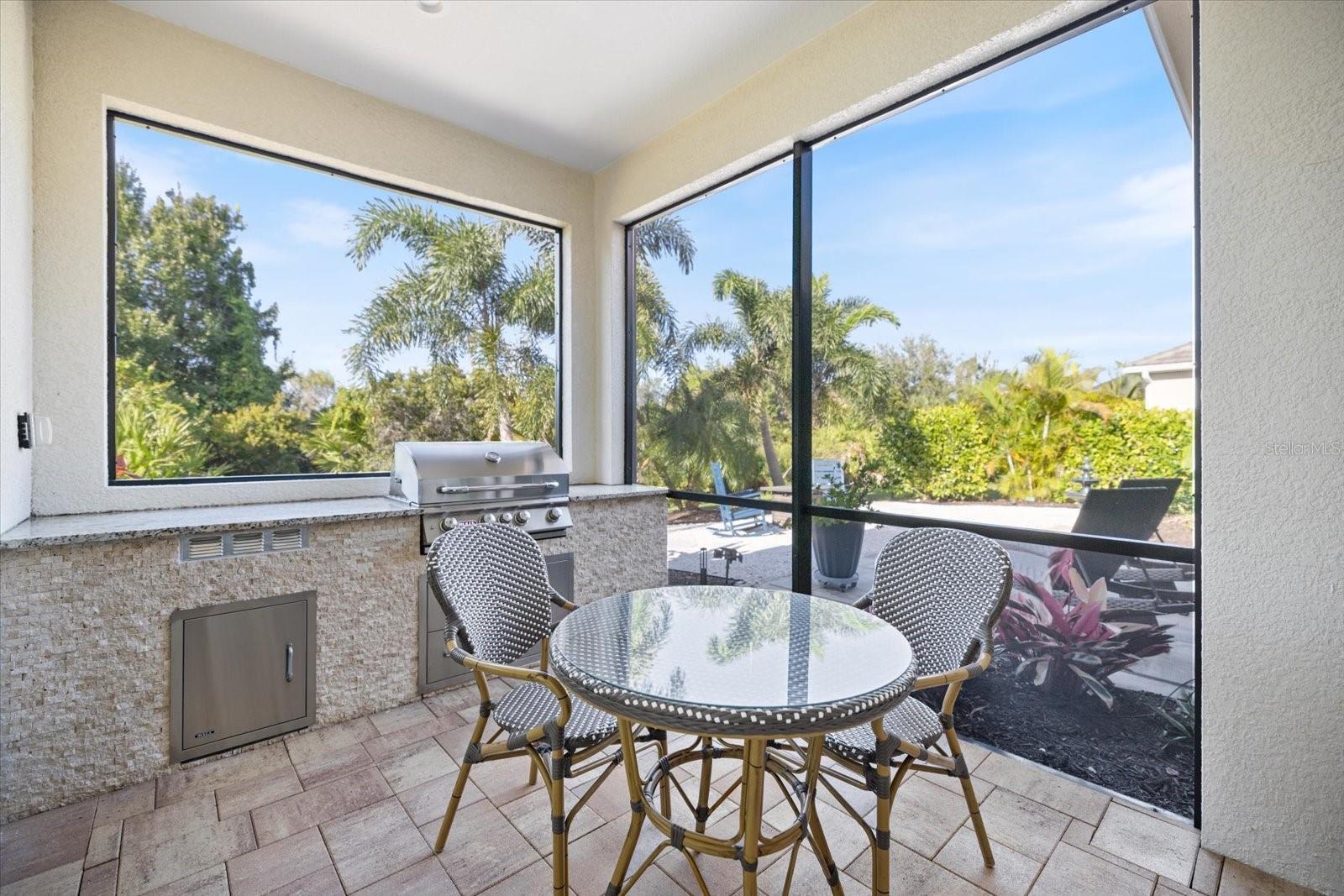 This is the home you have been waiting for! The refined Sanibel model offers everything you need to create your perfect residence, featuring three spacious bedrooms, three full bathrooms, and a versatile club room with elegant French doors—ideal for a study or media room. From the moment you enter through the beautiful custom impact glass front door, you'll be charmed by the thoughtful design and upscale finishes that define this welcoming residence. The well-appointed gourmet kitchen is a chef's delight, highlighted by granite countertops, a gas GE cooktop, and a wall oven with microwave, and customized pantry storage that are all designed for seamless and enjoyable meal preparation. Pocketed sliding glass doors open to an outdoor oasis, complete with a summer kitchen on an extended lanai that overlooks a tranquil preserve, offering both ultimate privacy and relaxation. The open, split floor plan showcases a coffered ceiling in the great room, which flows beautifully into the dining area at the front of the house, while plantation shutters and 8 foot doors throughout lend sophistication to the airy, modern concept. The luxurious primary bedroom is a peaceful retreat, with an ensuite that includes two generous walk-in closets, custom cabinetry with ample drawers, and dual matching sinks. For your safety and peace of mind, the home is equipped with premier PGT high-end impact glass and doors, and sits on an oversized lot surrounded by meticulously maintained landscaping. The extended garage is notable with an epoxy floor, insulated ceiling and doors, ample ceiling storage and a mobile AC unit to keep your treasures intact from the heat. Residents of Boca Royale enjoy access to a resort-style pool and clubhouse, a newly renovated championship golf course, tennis and pickleball courts, and a state-of-the-art fitness center, all set within a welcoming gated community spread across 1, 000 acres of oak trees and nature preserves—a stunning backdrop for relaxation and recreation. The Georgian-style clubhouse serves as the heart of the community, offering fine and casual dining alongside an active calendar filled with wine dinners, trivia nights, and themed events for easy socializing. Walking and biking trails, a dog park, and outdoor recreation areas invite you to enjoy the fresh air, while just minutes away, Manasota Key’s white sand beaches, Venice Island’s boutiques and restaurants, and the shops and entertainment of Wellen Park provide even more to explore. With nearby marinas, parks, and everyday conveniences, Boca Royale perfectly blends coastal charm with a vibrant, connected lifestyle, making it the ideal place to call home. CALL TODAY FOR A SHOWING!