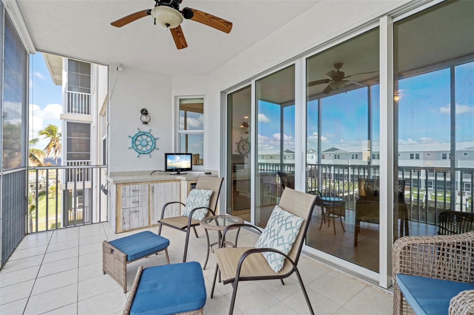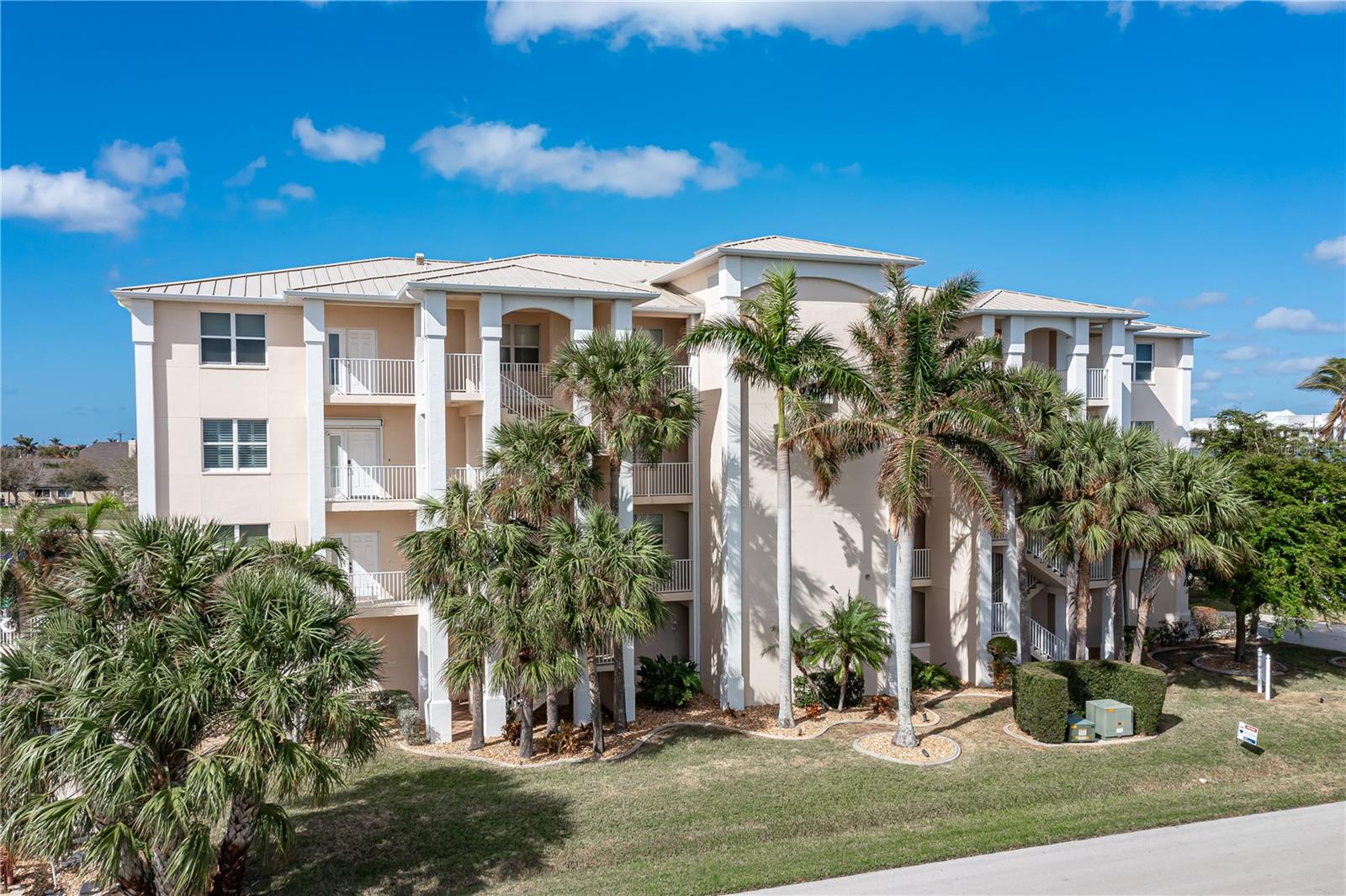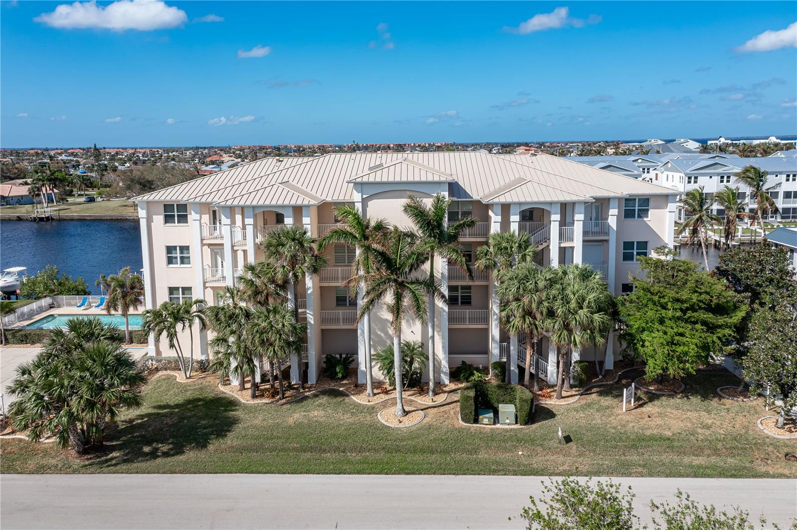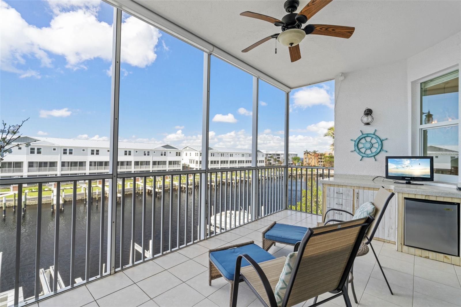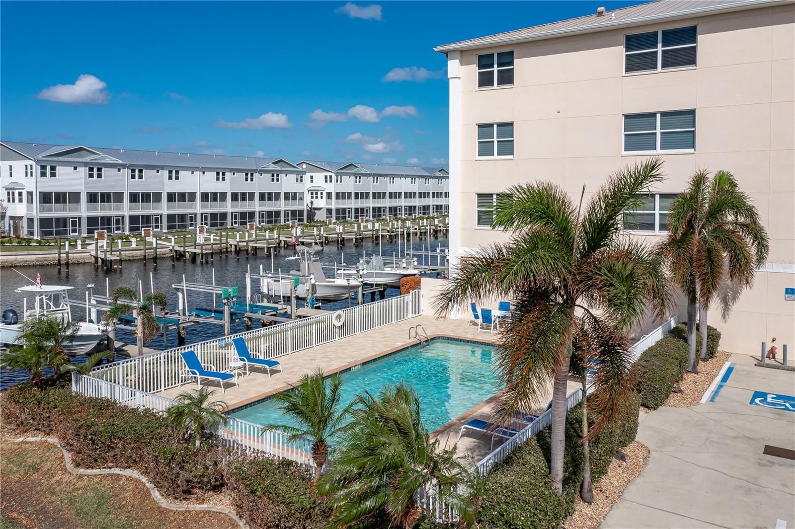 SPACIOUS WATERFRONT CONDO IN PGI W/DEEDED DOCK & QUICK BOATING ACCESS TO CHARLOTTE HARBOR! This condo at Captain's Landing in Punta Gorda Isles has it all: a great location, deeded dock, canal basin view & quick boating access to Charlotte Harbor. The unit boasts a great room layout w/over 2, 000 sq ft of living space, two large bedrooms, den w/French doors, beautiful wood floors, high ceilings, eat-in kitchen & adjacent formal dining area. Large windows & a wall of sliding glass doors provide lots of natural light. Great room opens to the screened lanai extending the living space outside. Lanai has tile flooring & built-in bar w/beverage fridge all overlooking the canal basin & docks below. Grab your favorite beverage & enjoy fabulous sunsets over the canal every night thanks to the western rear exposure. The kitchen has solid surface counters, raised-panel cabinetry + decorative display shelves at end of cabinets. The master suite has a large, picture window overlooking the canal, an oversized, walk-in closet & large master bath. Master bath has dual sinks, seated vanity & glass-block shower. The guest room also features an oversized, walk-in closet. The unit has lots of storage space in addition to the large walk-in closets, there is a linen closet in the guest bath, a coat closet in the foyer & a large storage area off the laundry room plus an assigned storage room in garage. 3rd bedroom features double French doors & can easily be converted to an office/den, if desired. Unit comes w/deeded dock #5. Dock has 10, 000 lb boat lift + water & electric hook-ups available dockside. Enjoy some of the best fishing & boating directly from your backyard. Other amenities include a heated pool & covered, under building parking. Deeded parking space #5 & storage space #5 come w/the unit. Take advantage of the fabulous location - miles of sidewalk connect you to Fishermen's Village, Isles Yacht Club, Gilchrist Park, Hounds on Henry dog park & historic downtown. Come discover why Punta Gorda is considered a hidden gem in SW Florida.