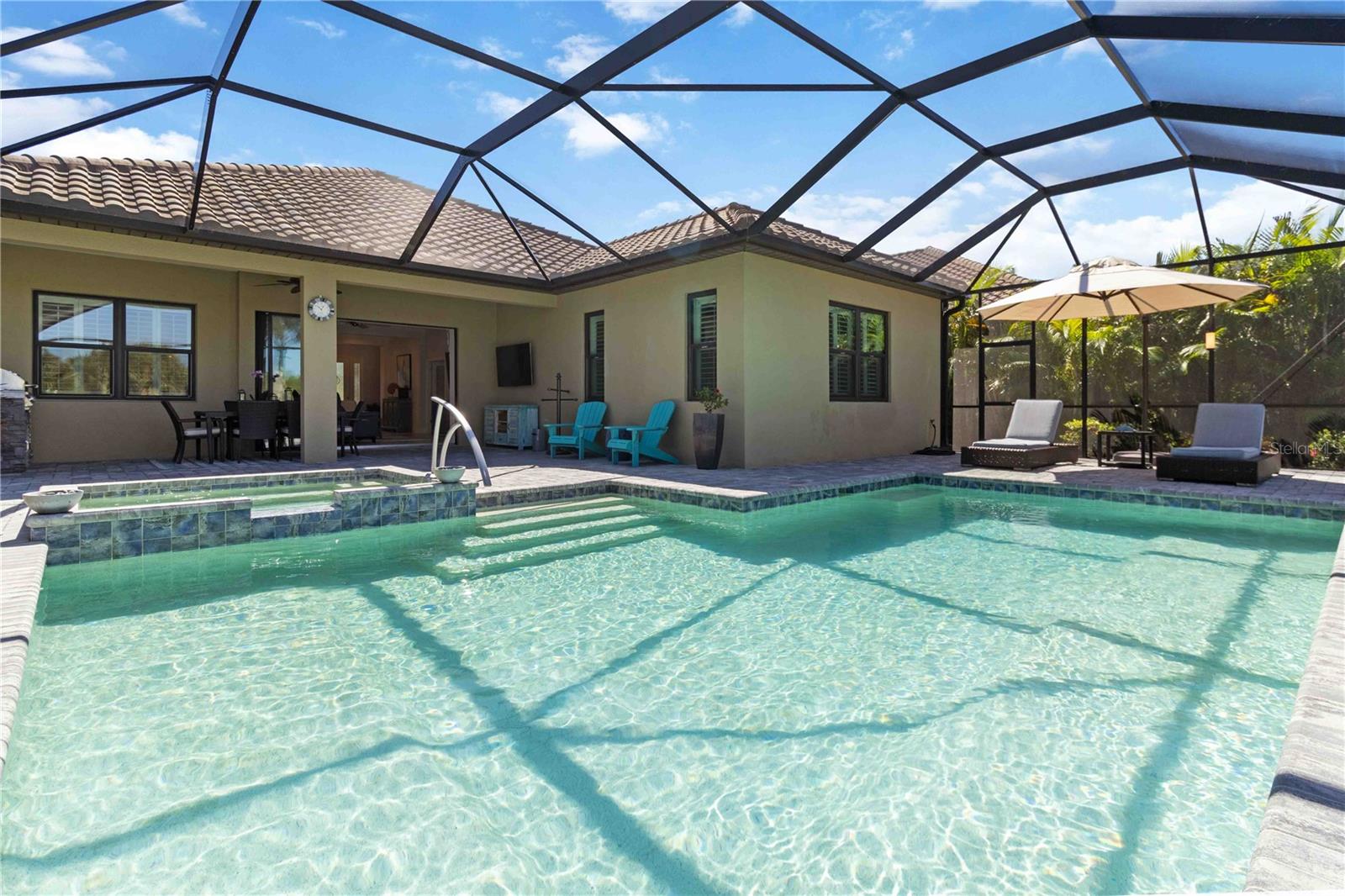 Welcome to your very own slice of paradise with stunning preserve views in the highly sought-after Boca Royale Golf & Country Club! This elegant Endless Summer model single-family POOL home blends luxury, comfort, and convenience—featuring 3 bedrooms, 2 full baths, a den, and a spacious 2-car garage complete with a whole-home Generac generator. Step inside and you’ll immediately appreciate the open, split floor plan—offering both privacy and functionality. The primary suite sits peacefully at the rear of the home, while guest rooms rest comfortably at the front. The interior showcases beautiful tile flooring throughout, plantation shutters, and impact windows on most of the home for added peace of mind. The bright, modern kitchen shines with white cabinetry, granite countertops, and a breakfast bar—perfect for casual dining or entertaining. The laundry room is thoughtfully upgraded with extra cabinetry for added storage. Step outside to your extended screened lanai, where true Florida living begins! Relax in the heated saltwater pool and spa, grill in your outdoor kitchen with refrigerator, and soak in the lush preserve views offering total privacy. The professionally landscaped yard features an upgraded irrigation system with additional sprinklers for easy maintenance. Boca Royale is a gated, amenity-rich community offering dining, fitness, tennis, pickleball, golf, and resort-style pools. With optional golf and racquet memberships, and some amenities open to the public, you can enjoy the best of both worlds. Just minutes from Gulf beaches, boutique shops, and local restaurants, this home delivers the perfect blend of luxury, leisure, and location—everything you need to live your Florida dream!