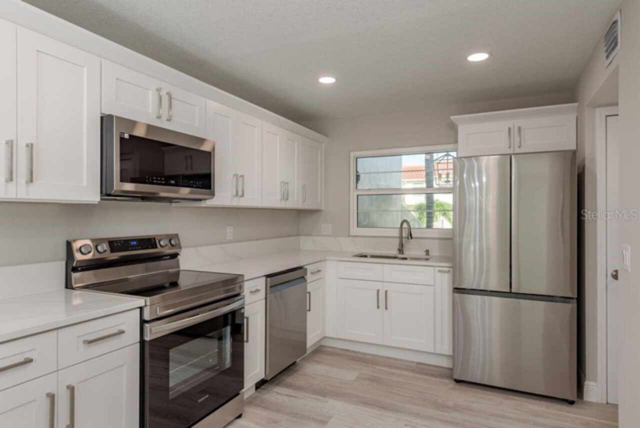 Welcome to 2700 Bayshore Blvd #531, a fully renovated 3-bedroom, 2.5-bath townhome offering modern design, high-end finishes, and water views. This home has been completely updated throughout, featuring new luxury vinyl plank flooring upstairs, wood-look tile downstairs, quartz countertops, renovated kitchen and bathrooms, new windows, garage door, and electrical panel. Every major system and finish has been thoughtfully upgraded for style and peace of mind. An attached one-car garage adds convenience, and the elevated living space sits above the flood zone, offering lower insurance costs and added security. Outdoor living spaces include a front porch, spacious back patio, and private balcony off the primary suite with peaceful water views—ideal for relaxing or entertaining. Located just minutes from downtown Dunedin and Honeymoon Island State Park, this home offers easy access to restaurants, shopping, beaches, and major routes to Tampa and St. Petersburg. Move-in ready and meticulously renovated, this home combines coastal charm with modern luxury in one of Dunedin’s most desirable communities.