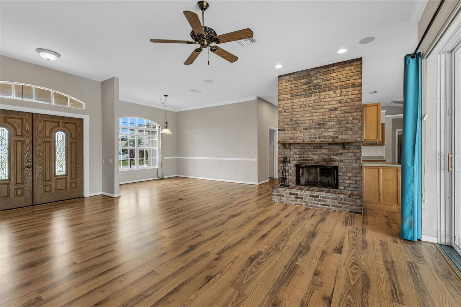 Family Room, Free Standing, Living Room, Masonry, Wood Burning