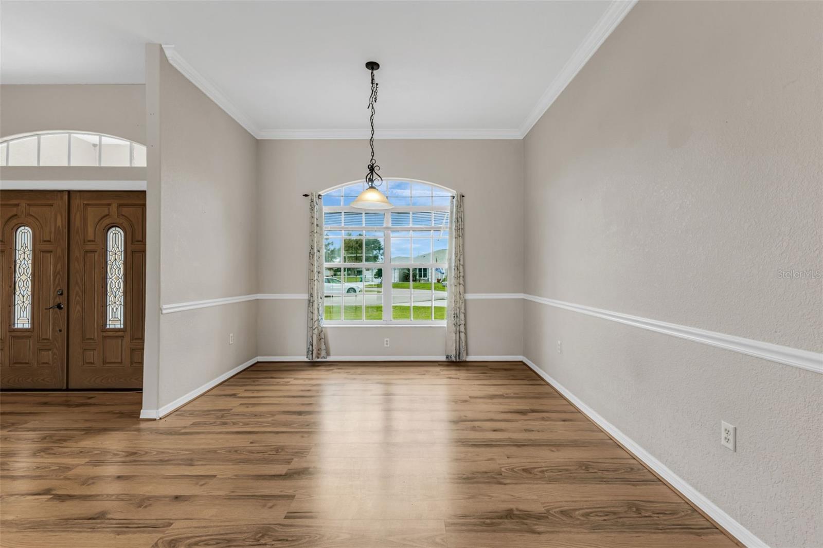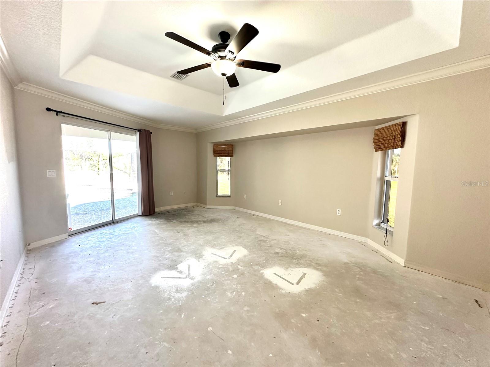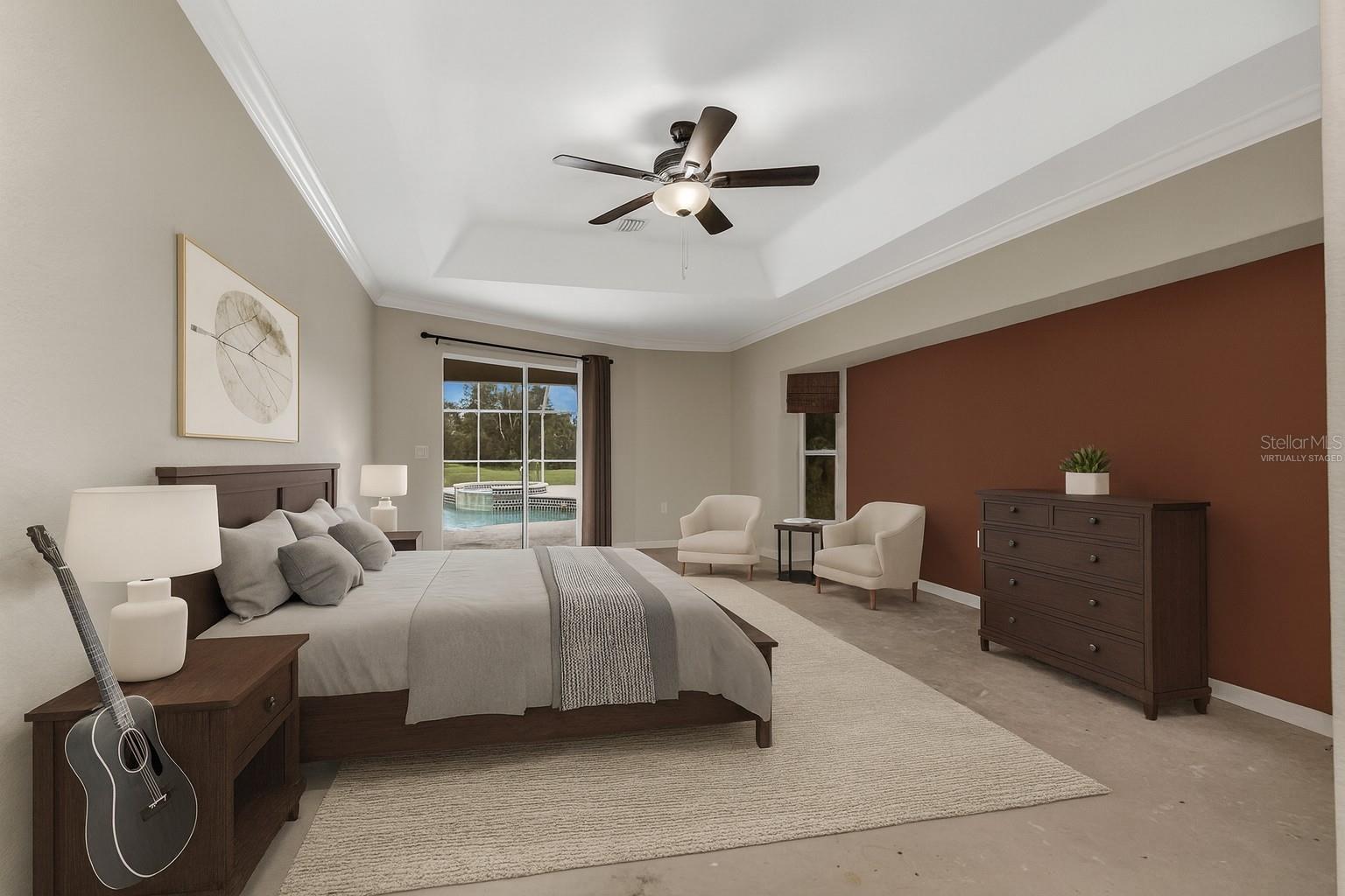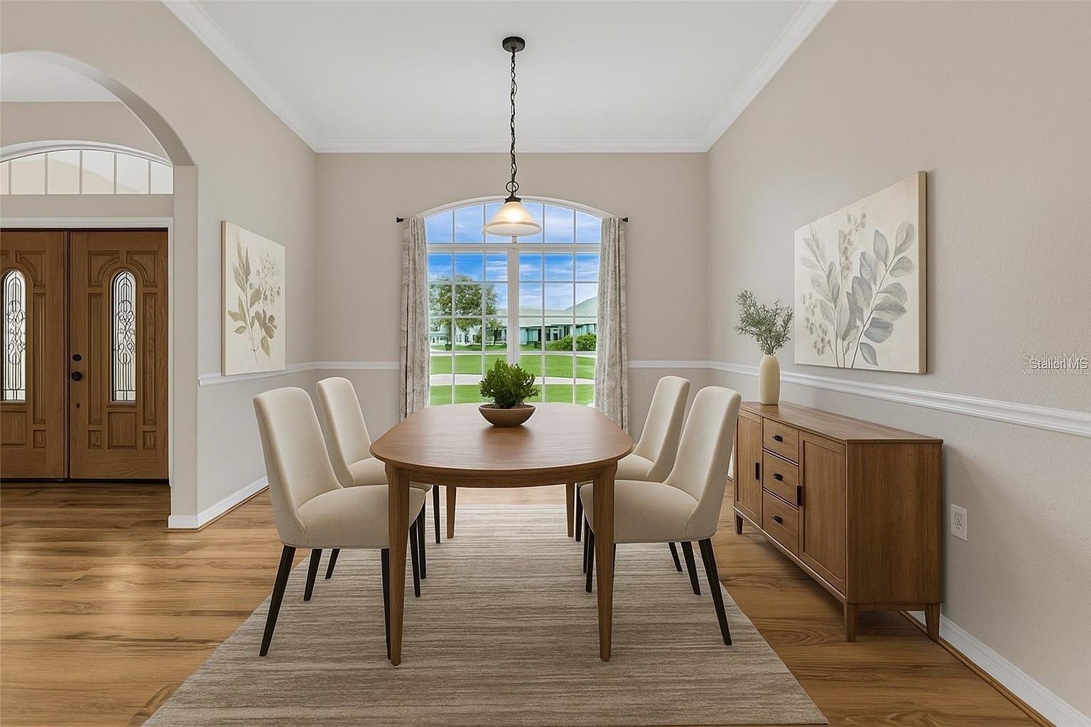 Built-in Features, Ceiling Fans(s), Chair Rail, Crown Molding, Dry Bar, Eat-in Kitchen, High Ceilings, Kitchen/Family Room Combo, Living Room/Dining Room Combo, Open Floorplan, Solid Surface Counters, Split Bedroom, Thermostat, Tray Ceiling(s), Walk-In Closet(s)