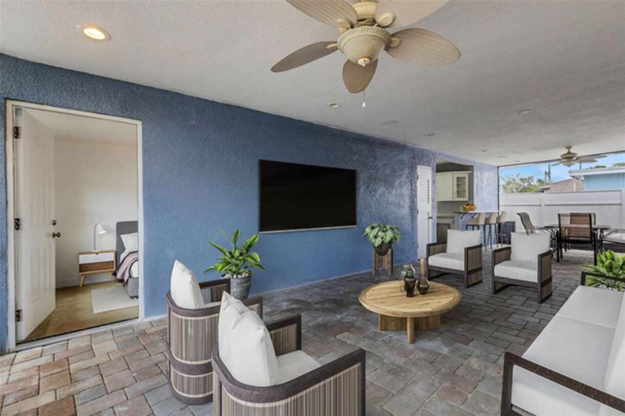 One or more photo(s) has been virtually staged. Welcome to 2707 W Leroy Street — a mid-century Mediterranean gem nestled in the heart of West Tampa. Originally built in the 1950s and thoughtfully updated throughout, this 4 bedroom, 4.5 bathroom, in-law suite property with newly paved and screened in lanai (2020), newer roof (Main home - 4 y.o. / In-law - 12 y.o.) and outdoor kitchen offers a blend of character, functionality, and versatile living spaces that make it truly one of a kind. As you pull into the paved driveway, you’ll immediately notice the mature landscaping that frames the home beautifully, creating a warm and inviting curb appeal. Step inside and you’re greeted by an open and airy living and dining space with tile flooring that carries throughout the entire home — including the garage. The kitchen is both stylish and practical, featuring rich walnut-stained shaker cabinetry, granite countertops, stainless steel appliances, pendant lighting, and a breakfast bar with seating for four. The main home includes three spacious bedrooms and three full bathrooms. The primary suite is a peaceful retreat with a large walk-in closet and a luxurious en-suite bath complete with a travertine-tiled walk-in shower and a jetted soaking tub. One guest bedroom includes its own en-suite bathroom, while the third bedroom has easy access to another full bath. Just off the main living area is a dedicated office space with built-in cabinetry — perfect for working from home or managing day-to-day tasks. A door from the office leads you outside to the oversized screened lanai, where outdoor living takes center stage. This incredible entertaining space features an outdoor kitchen, complete with a refrigerator, kegerator, ample bar seating, and a convenient half bathroom for guests. Two additional large walk in storage rooms anchor the screened-in lanai. Beyond the lanai, you’ll find a detached guest suite with its own private entrance, full bathroom, walk-in closet and separate A/C system — ideal for visitors, in-laws, or even a creative studio or workspace. The entire property is fully fenced, offering plenty of space and privacy. Additional upgrades include 2015 HVAC, 2018 water heater, Ring security system with doorbell and cameras, smart irrigation, WiFi-enabled thermostats, smart lighting, a split HVAC system for the guest suite, and pre-wiring for a 240V electric vehicle charger. Whether you’re looking for a home with room to host, space to work, or the potential for multigenerational living, 2707 W Leroy Street offers a rare opportunity to enjoy it all in a beautifully updated and move-in ready home. Located just minutes from Midtown Tampa and the Raymond James Stadium, you’ll find yourself in the center of it all. Enjoy easy access to Armature Works, Riverwalk, Downtown Tampa, and Hyde Park Village — where you'll find some of the city’s best dining, shopping, and nightlife. Catch a Bucs game, explore local breweries, or spend a weekend at nearby Julian B. Lane Riverfront Park. With quick access to I-275, Tampa International Airport is just a short drive away, making travel and commuting a breeze. Don’t miss your chance to experience this one-of-a-kind West Tampa home — where timeless charm meets modern convenience.
