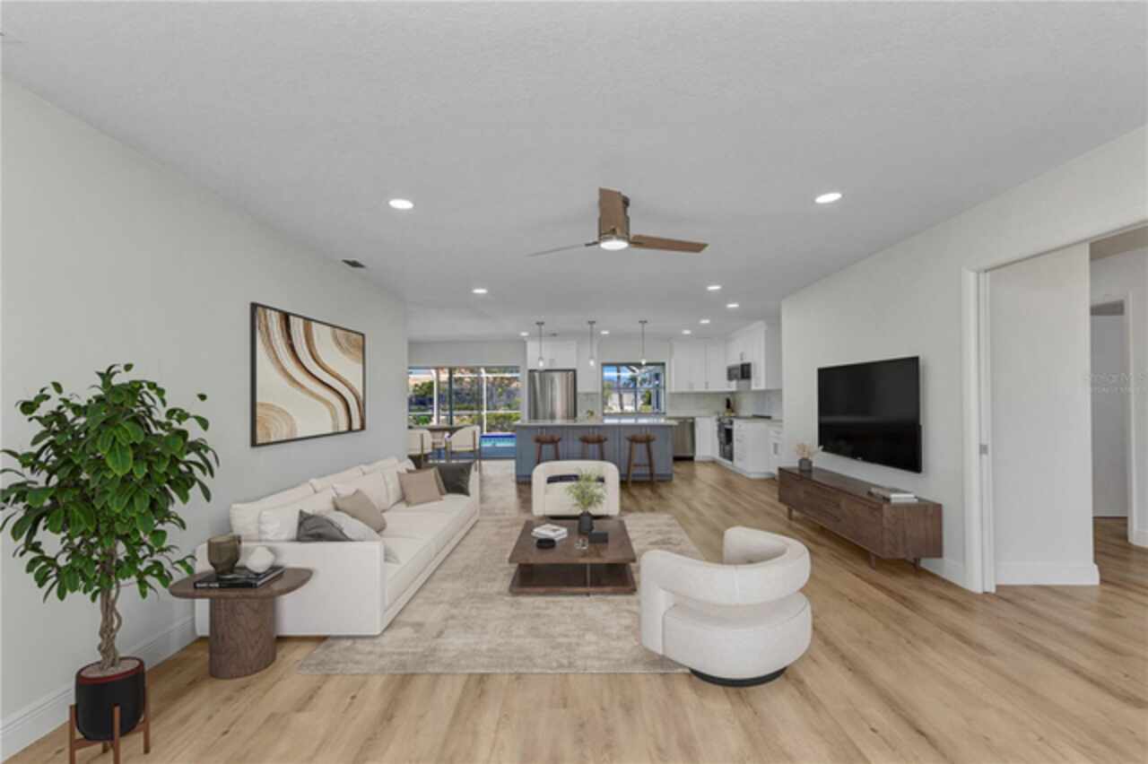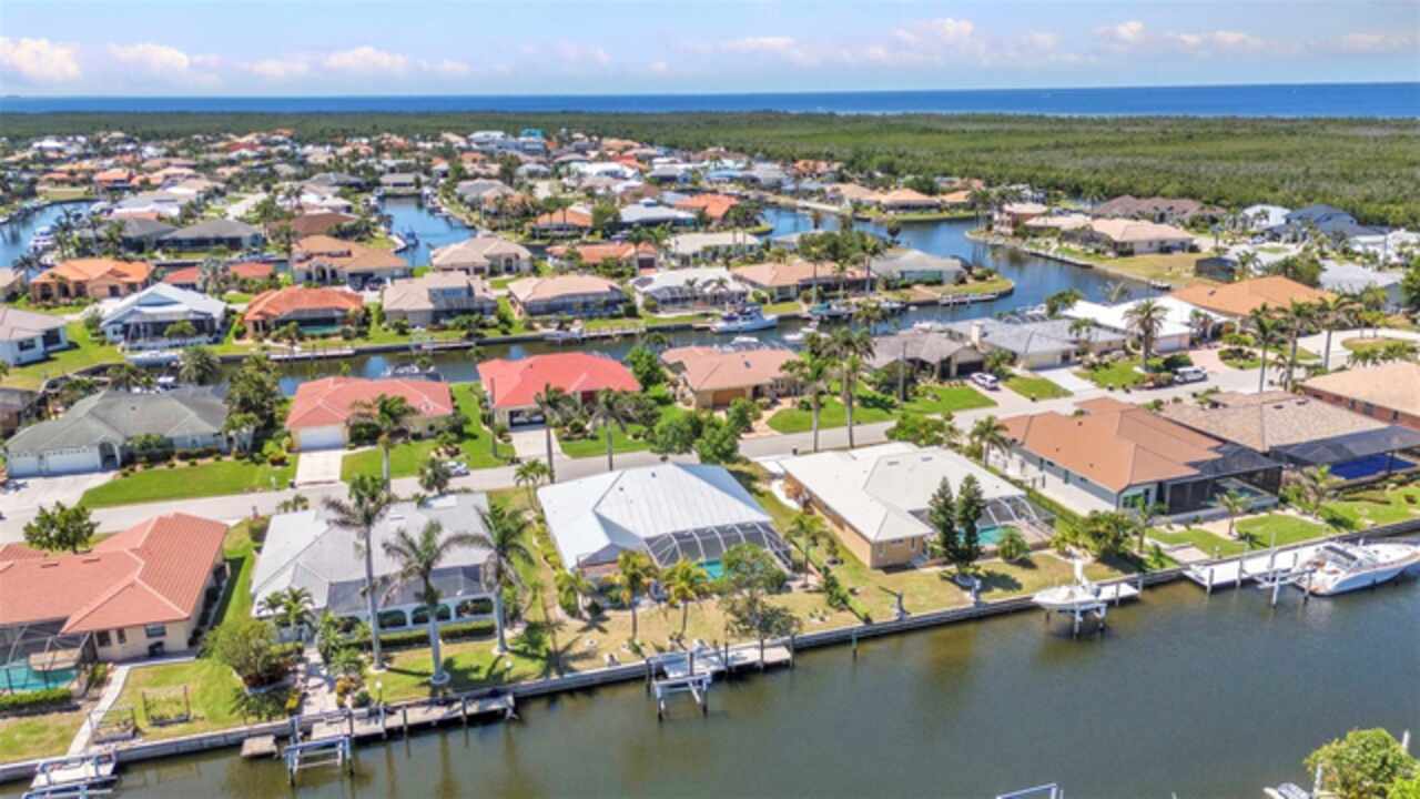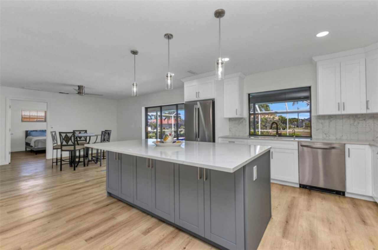 One or more photo(s) has been virtually staged. WOW!! LOCATION - LOCATION - LOCATION & GORGEOUSLY RENOVATED 3 BED 2 BATH HOME THAT PROVIDES SPECTACULAR WATERFRONT LIVING WITH ONLY A ROUGHLY 3 MINUTE DIRECT SAILBOAT ACCESS TO CHARLOTTE HARBOR , A HUGE SPARKLING POOL, AND A TON OF UPGRADES OF THE HIGHER TICKET ITEMS —THIS IS COASTAL FLORIDA LIVING AT ITS VERY FINEST! Fully remodeled with high-end finishes and thoughtfully planned improvements, this Punta Gorda Isles home delivers modern style and reliable function in one of Southwest Florida’s most desirable boating communities. The kitchen is a standout with sleek quartz countertops, custom cabinetry, and brand-new stainless steel appliances, while both bathrooms mirror the same fresh, contemporary look. Luxury vinyl plank flooring flows throughout the light-filled interior, creating a clean, cohesive feel. Major updates include a beloved Florida-style metal roof completed in March 2024, December 2024 PEX overhead plumbing, and an electrical upgrade in April 2022. The 10, 000 lb boat lift was added in October 2021, and the HVAC system was replaced in 2019. Hurricane shutters add extra peace of mind, and thanks to the home’s higher elevation, there was no flooding during Hurricanes Milton or Helene. The outdoor living space is equally impressive. A sparkling pool overlooks the canal, framed by a generous screened lanai ideal for entertaining or quiet mornings. A spiral staircase leads to a unique observation deck where you can take in panoramic water views and spectacular sunsets. For boaters, it doesn’t get much better: direct sailboat water with no bridges, city-maintained seawall, and quick access to Charlotte Harbor—renowned for nearly 190 miles of protected shoreline and world-class sportfishing. Cruise to nearby dock-and-dine favorites like Riviera Bar & Grill, Laishley Crab House, and Hurricane Charley’s. Spend the day exploring Fishermen’s Village with its marina, boutiques, and live music, or unwind at Ponce de Leon Park with walking trails, a sandy beach, and stunning views of the harbor. Golf courses, marinas, and Punta Gorda’s vibrant downtown are just minutes away. With 3 bedrooms, 2 bathrooms, a 2-car garage, and a long list of upgrades, this move-in-ready home is your gateway to a laid-back, waterfront lifestyle.