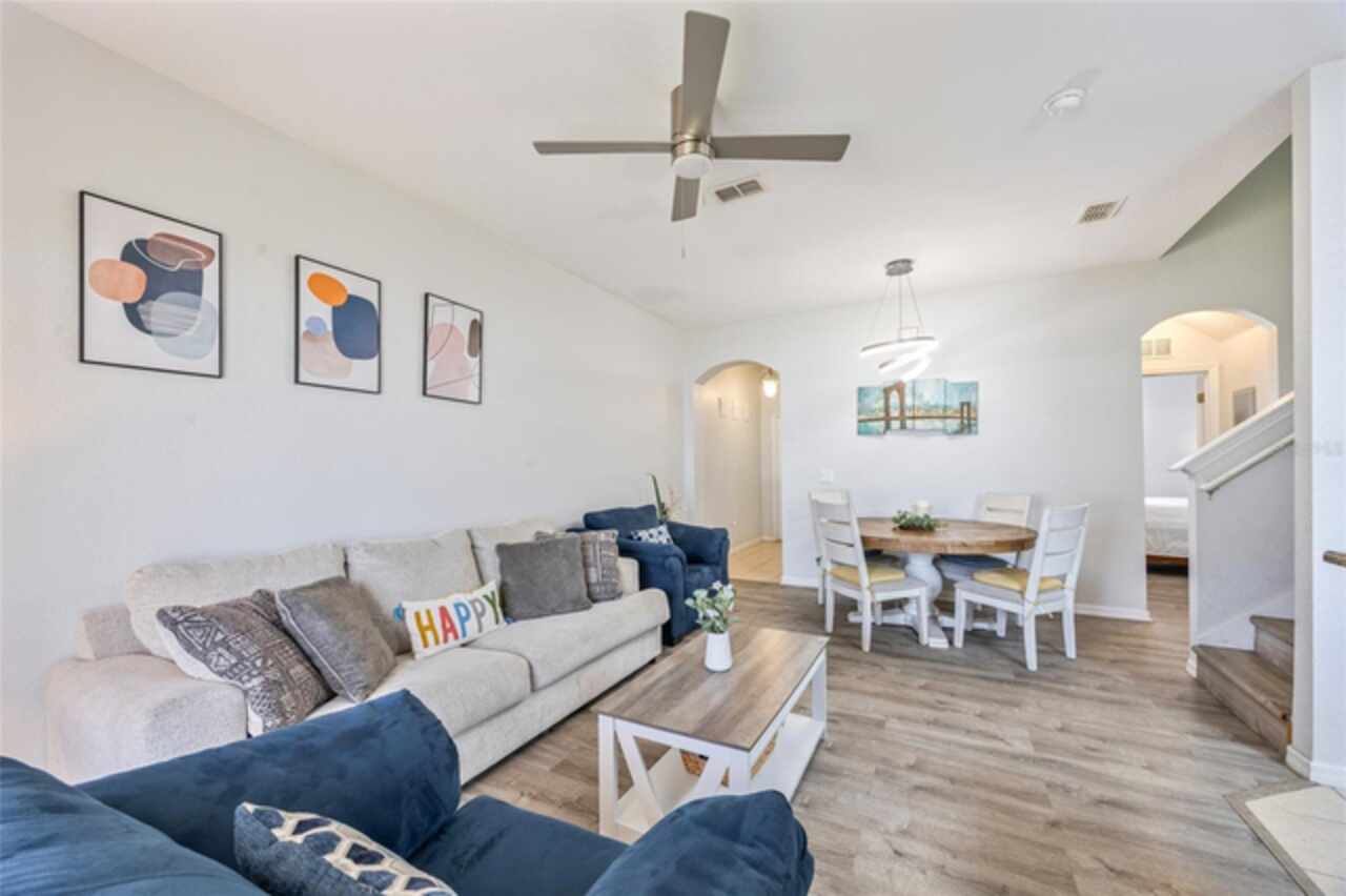 MOTIVATED SELLER. WILLING TO PAY $8, 000.00 IN CLOSING COST OR 1 YEAR OF HOA. MOVE IN READY/OR START INVESTING! BRING YOUR OFFERS. ALL FURNITURE CONVEYS WITH PROPERTY. GATED COMMUNITY Welcome to your next chapter in comfort and convenience—this beautifully maintained townhouse is nestled in a resort-style community designed for easy living. Perfect for those looking to DOWNSIZE. This home offers the ideal blend of style, simplicity, and PEACE OF MIND. The homeowners association takes care of lawn maintenance and roof upkeep, allowing you to spend more time enjoying the things you love. Whether you're relaxing by the pool, strolling through manicured grounds, or simply savoring the low-maintenance lifestyle, this is your opportunity to downsize into greatness. This exquisite four-bedroom, three-bath townhome offers a harmonious blend of comfort and sophistication. The home features UPDATED VINYL PLANK flooring, combining aesthetic appeal with durability. Sunshine pours into the spacious living room, creating a warm and inviting atmosphere. The MODERN KITCHEN is equipped with STAINLESS STEEL appliances and GRANITE countertops, ensuring a delightful culinary experience. Convenience is key, with a STACKABLE WASHER AND DRYER located in the laundry closet adjacent to the kitchen. The first-floor bedroom boasts an en suite bedroom and FULL BATHROOM. Upstairs, you’ll find three additional bedrooms along with a generous master suite with an en suite bathroom. All bedrooms are Dorn with luxury vinyl and plain flooring, enhancing the home's cohesive design. REGAL PALMS RESORT/SPA offers an array of exceptional amenities that cater to every family member’s desires. Spend your days lounging by the resort-style pool, floating along the lazy river, or unwinding in the spa Jacuzzi. The resort provides a BEACH VOLLYBALL COURT, playground and an en suite ARCADE for those seeking activity, in addition to the TIKI BAR and ON-SITE RESTURANT, ensuring dining options without leaving the community. Safety and security are prioritized in this guarded and gated community, allowing you to relax and fully enjoy your surroundings. Whether you’re considering this as YOUR FOREVER-HOME, a personal vacation spot, time sharing amongst families, or an investment opportunity, platforms like Airbnb and VRBO for short-term rentals make it simple and easy. Don’t miss this opportunity, schedule your viewing today and embrace the LIFESTYLE OF LUXURY AND CONVENIENCE.