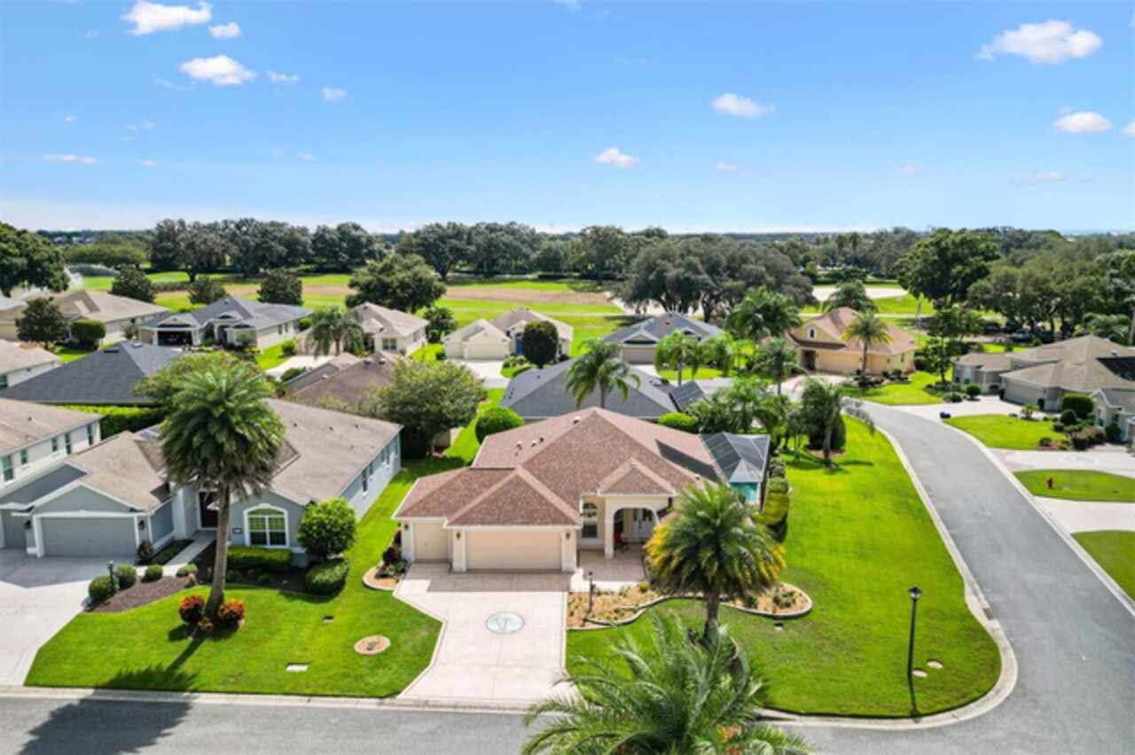 Pool Home• 2 Car plus Golf Cart Garage • Corner Lot • Virtual Tour Available Welcome to this exceptional Gardenia Pool Home in the Village of Hemingway, combining the perfect balance of style, comfort, and location in the heart of The Villages, Florida. Situated on a corner lot and featuring a golf cart garage, this 3-Bedroom, 2-Bathroom residence offers everything you need to enjoy The Villages lifestyle at its best. This home is offered partially furnished (with golf cart included) and showcases tasteful details throughout. Plantation shutters, four solar tubes for natural light, and thoughtful upgrades enhance the sense of openness and warmth. The kitchen blends function and beauty with light staggered cabinetry, glass-front display cabinet, pull-out shelving, and Corian countertops. Enjoy casual dining in the breakfast nook or host guests in the formal dining area, which is free of the column typical of the Gardenia model, creating a more open flow between living spaces. The spacious Primary Suite features a tray ceiling, two walk-in closets, and a luxurious ensuite bath with split vanities and a Roman shower. The front bedroom includes a wall bed and built-in desk, providing flexibility for guests and a home office. The split-bedroom design places the second and third bedrooms apart from the primary suite, with the guest bath in between for added privacy. The living room flows seamlessly to your private saltwater pool, surrounded by a screen enclosure that offers the ultimate in outdoor relaxation. Double sliding doors lead to the east-facing lanai, where you can enjoy morning sun or cool evening breezes. Major system upgrades provide peace of mind: a new roof (2024) and brand-new HVAC (July 2025). Additional highlights include an inside laundry room, neutral color palette, and low-maintenance landscaping. This property’s location is one of its strongest features—just minutes from golf, recreation, dining, and shopping. You’re approximately 0.7 miles to Havana Country Club and Championship Golf, which also offers one of The Villages’ most popular restaurants. The Hemingway Pool is about 0.8 miles away, and Colony Plaza with retail and dining options is approximately 1.6 miles. Lake Sumter Landing Town Square, known for its waterfront dining, boutiques, and nightly entertainment, is 3.9 miles by golf cart. Enjoy the Florida lifestyle year-round with indoor and outdoor living spaces designed for comfort and convenience. Whether you’re lounging by the pool, hosting friends for dinner, or taking your golf cart to explore the nearby amenities, this home provides it all. Be sure to view the virtual tour to explore every detail of this impressive Gardenia Pool Home in The Village of Hemingway.