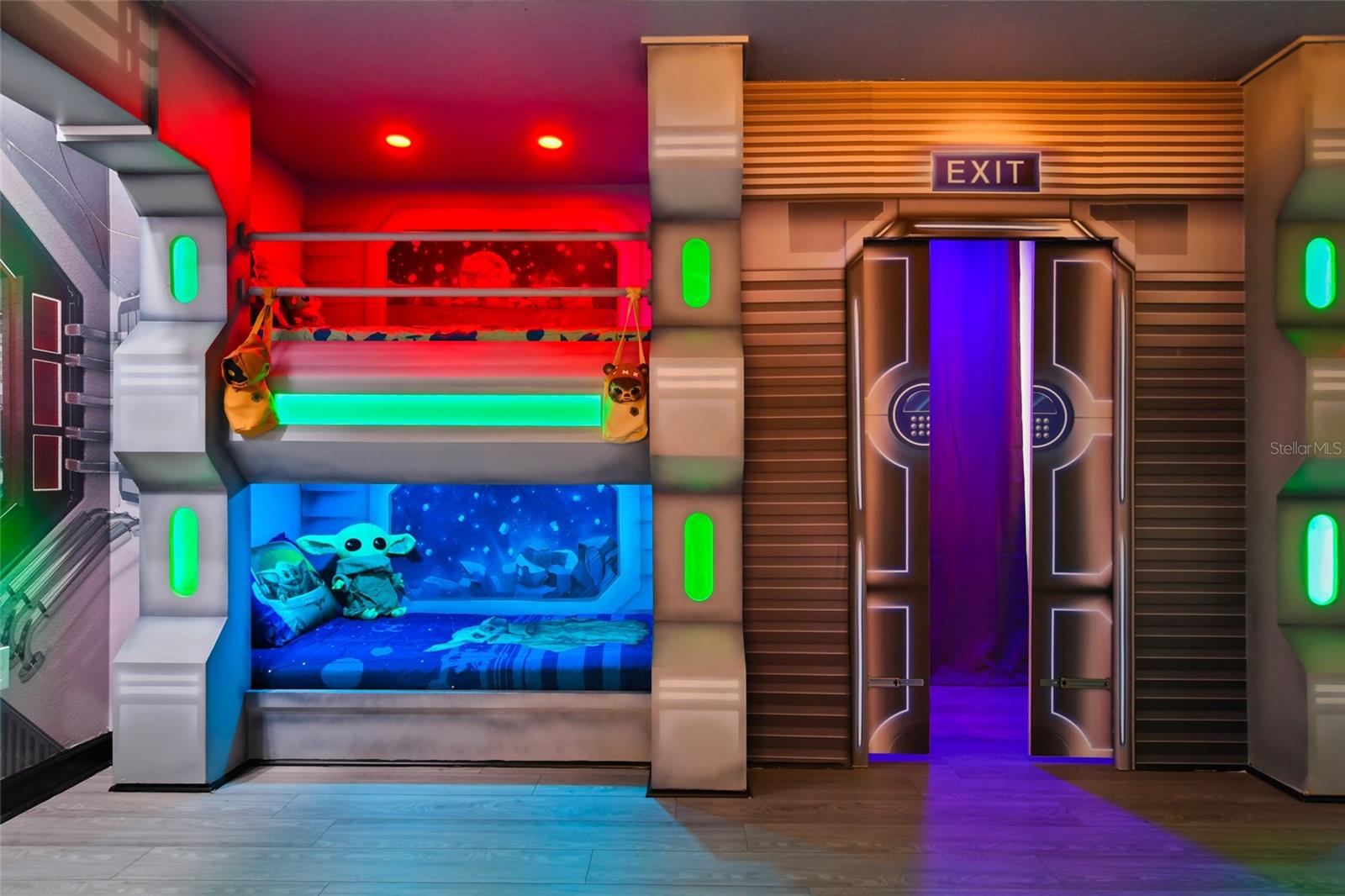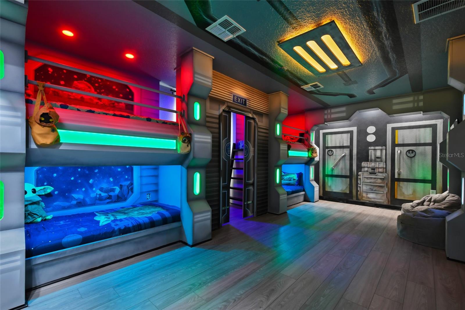Welcome to this extraordinary 8-bedroom luxury home located in the highly sought-after Storey Lake Resort in Kissimmee. Fully furnished and professionally themed throughout, this residence delivers a true turnkey experience for vacation rental investors and families seeking an exceptional second home just minutes from Walt Disney World. The main floor centers around an expansive open-concept layout with a beautifully appointed living room, spacious dining area for large groups, and a gourmet kitchen featuring quartz countertops, stainless steel appliances, 42-inch cabinetry, and an oversized island with seating for six. One elegant king bedrooms are conveniently located on the first level, offering comfort and privacy for multi-generational groups. Sliding doors open to a private screened outdoor oasis complete with a heated pool, spa, covered patio, outdoor dining, and sun loungers — the perfect place to enjoy Florida living. The upper level elevates the guest experience with an impressive Avengers-style entertainment loft and multiple themed bedrooms thoughtfully designed to delight every age group, including Frozen, Star Wars, Harry Potter, Minecraft, and more. Additional king bedrooms and tastefully decorated suites ensure ample space and comfort for large parties. Every room boasts coordinated décor, premium bedding, and smart TVs. The home also features a full Avengers-themed game room equipped with pool table, air hockey, gaming area, and vibrant mural work. This residence has been meticulously maintained and curated to maximize guest enjoyment and convenience, offering a seamless transition for short-term rental use or immediate personal enjoyment. Storey Lake is one of Central Florida’s most desirable resort communities, offering gated access and world-class amenities including multiple pools, lazy river, water slides, splash park, fitness center, tiki bar, sports courts, and mini-golf. Ideally located minutes from Disney, Universal, shopping, dining, and major highways. A rare opportunity to acquire a fully turnkey 8-bedroom resort home in a premier community with outstanding rental appeal and no setup required.