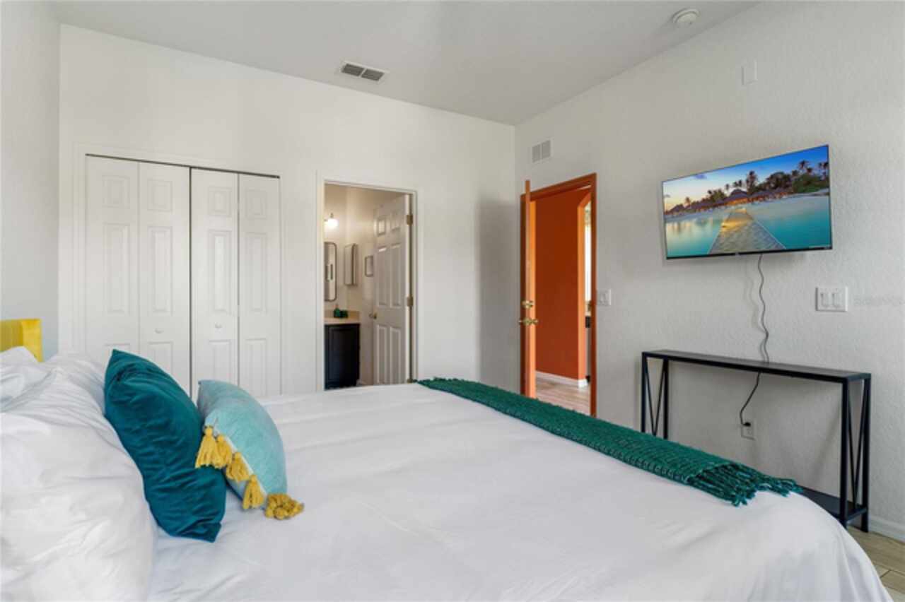 Available today and tomorrow until 2pm. This is a BUSY rental. Ask your agent to view it now! This is Awesome! This townhouse reflects pride of ownership and is perfectly suited for use as a vacation rental or a primary residence. 4-bedroom, 3.5-bathroom end-unit in the gated community of Regal Palms at Highland Reserve. Recent updates include new flooring on the second level and a brand-new HVAC system, with approximately $35, 000 invested in theming and enhancements throughout. The open floor plan features a spacious living and dining area, an eat-in kitchen, and a primary bedroom with en-suite bathroom.Regal Palms offers a variety of exceptional amenities, including a business center, heated pools, a lazy river with a slide, restaurants, a game room, and a fully equipped fitness center with a spa. The community is conveniently located near shopping, dining, and a pharmacy, with schools, Disney attractions, and major roadways just a short drive away.
