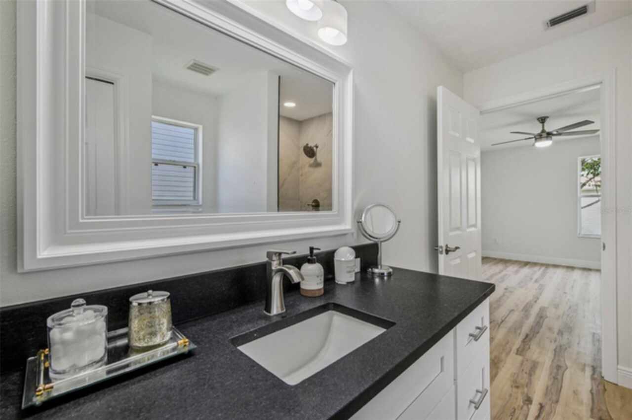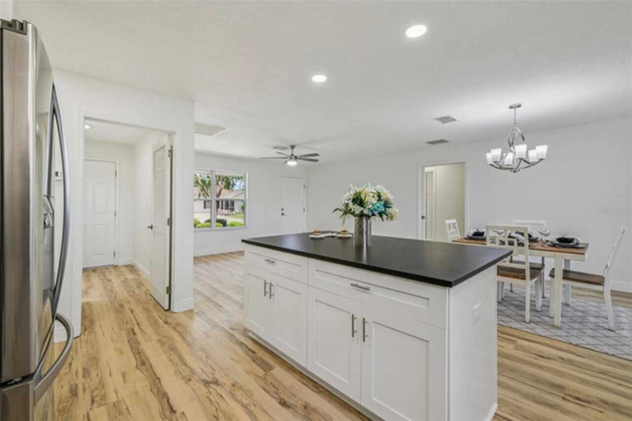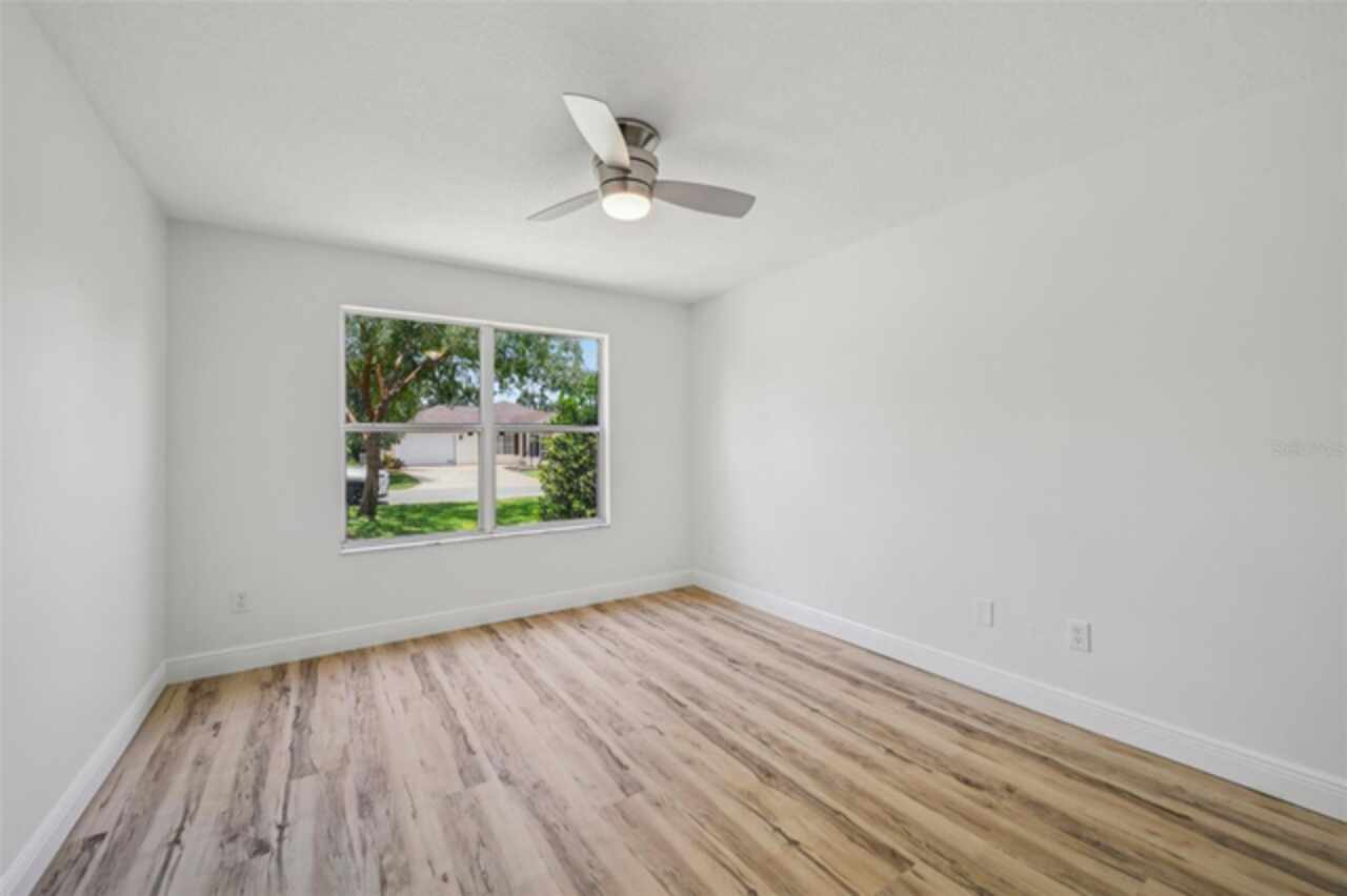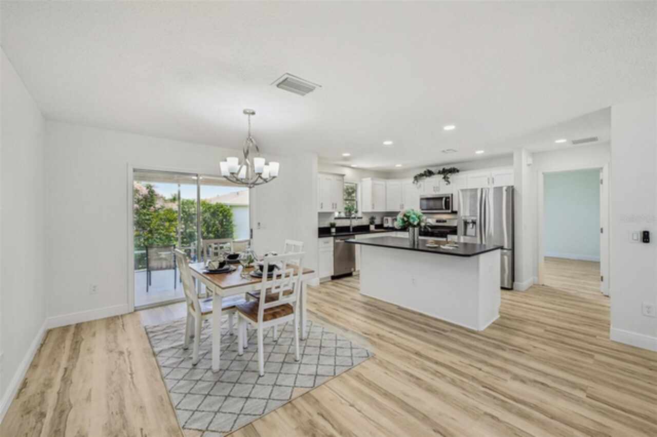 No Bond on this beautifully updated Amarillo Model located in the highly desirable Village of Lynnhaven. This home has been thoughtfully refreshed with above-average upgrades throughout, including leathered granite countertops, a custom kitchen island, and brand-new shaker-style soft-close cabinets in both the kitchen and bathrooms. Recent improvements include a new roof in 2022, stainless steel appliances, luxury vinyl plank flooring, 5 1/4-inch baseboards, brushed nickel remote-controlled ceiling fans with LED lighting, six-panel doors with brushed nickel hardware, and stylish walk-in tile showers in both bathrooms. Additional upgrades include a gas water heater, updated toilets, and fresh paint inside and out—with no popcorn ceilings. Window treatments and Shower doors have been left off for the Buyer to choose. Ideally situated, this home is just a golf cart ride from a wide range of amenities, including Lake Sumter Landing, Spanish Springs, Churchill Street Rec Center, Pimlico Rec Center, Saddlebrook Rec Center and Softball Complex, Buffalo Glen Softball Complex, and the Savannah Center. You’ll also enjoy convenient access to Publix, Walmart, Fresh Market, the brand-new Costco, Starbucks, ALDI, restaurants, banks, and shopping. Schedule your private showing today—or request a FaceTime tour if you’re out of the area—and experience all this beautiful property provides.