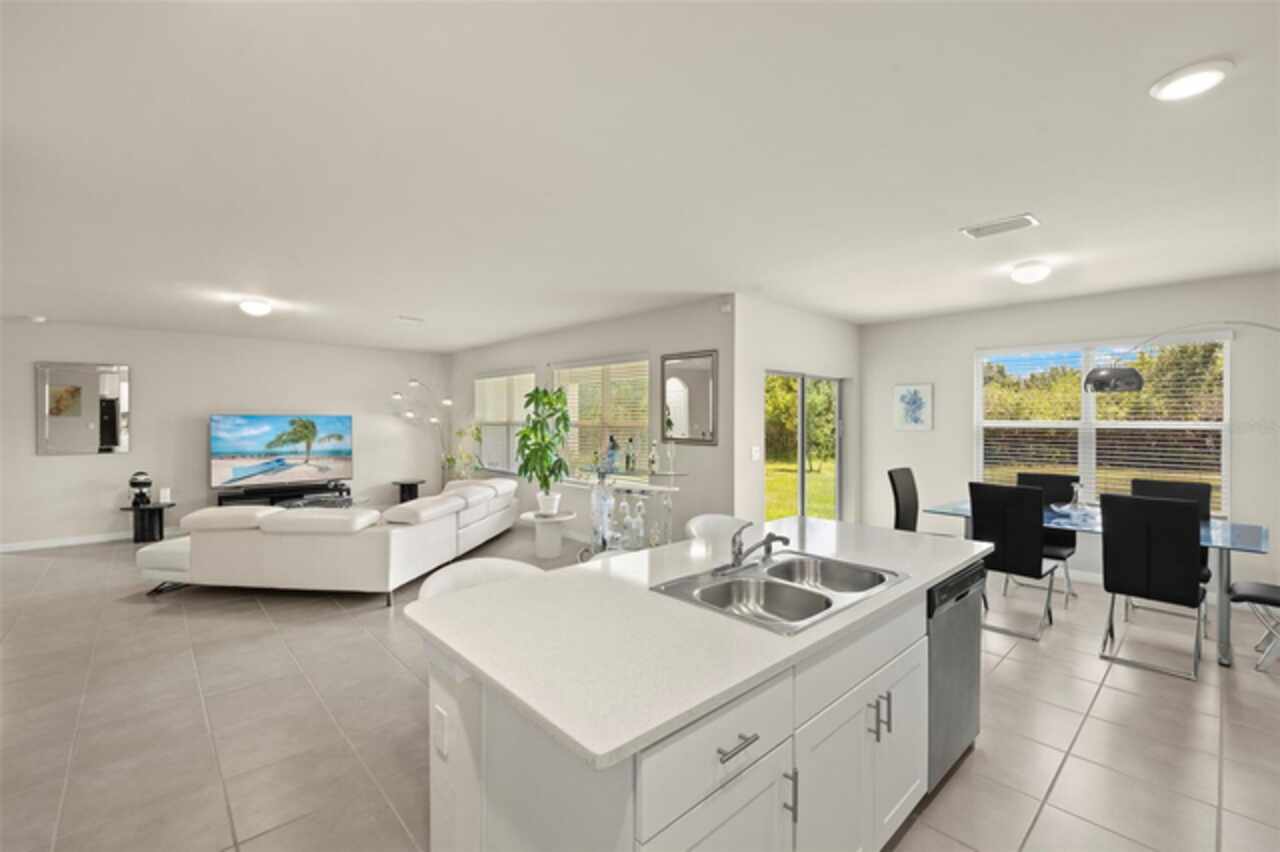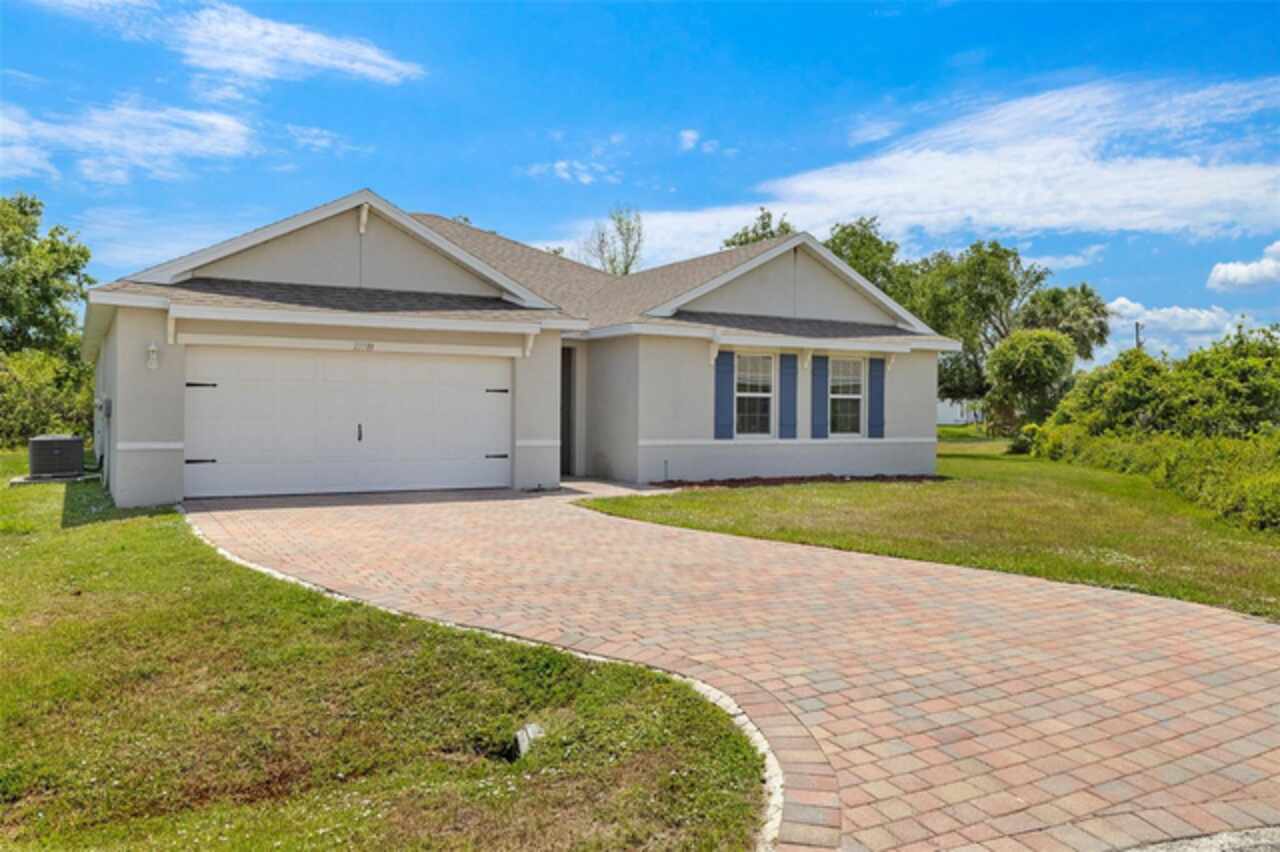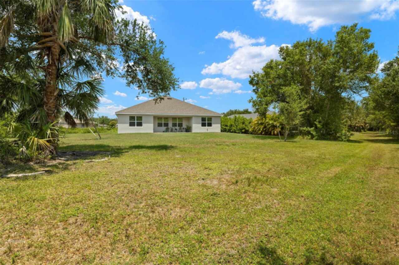 Beautiful 3 Bedroom Plus a Den Home built in 2021, Located in the highly desired Deep Creek Community, Like New without the wait! When you enter you will be amazed at the open-floor plan design, with several large windows that bring in lots of natural light. This home features a huge kitchen with Quartz countertops, Stainless Steel Appliances, double-bowl sink, white shaker cabinetry and large pantry. This Denton model has a supersized living room measuring over 22x20 with plenty of room for entertainment and the primary bedroom is also very spacious, over 16 feet long and has an en-suite with double sinks and a walk-in shower and good-size walk-in closet. The outdoor space is great for entertainment, BBQ’s, Families, or your pet, the way the lot is shaped you will have a huge back yard that backs up to a wooded area for lots of privacy or just enjoy the Covered Lanai Space to relax with your morning coffee or nightly book. One thing that makes this home separate from most other homes is that the SELLER HAS A VA ASSUMABLE MORTAGE WITH A LOW INTEREST RATE (Call for Details). This home is located close to restaurants, schools, hospitals & a car ride to Many Sandy Beaches like Boca Grande, Englewood, Fort Myers and Sanibel Beach. This is a Great property for a permanent residence, investment income or even a great get-a-way vacation home you can just lock the doors and leave with no worries. Get ready to Enjoy the Florida lifestyle.