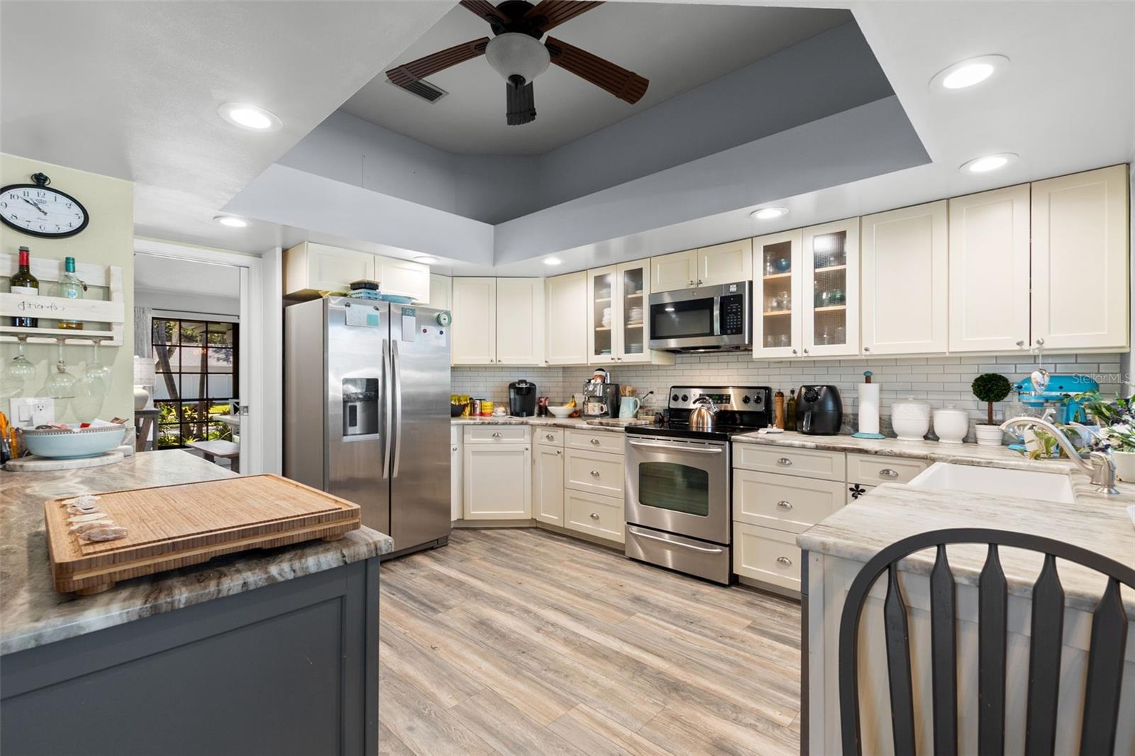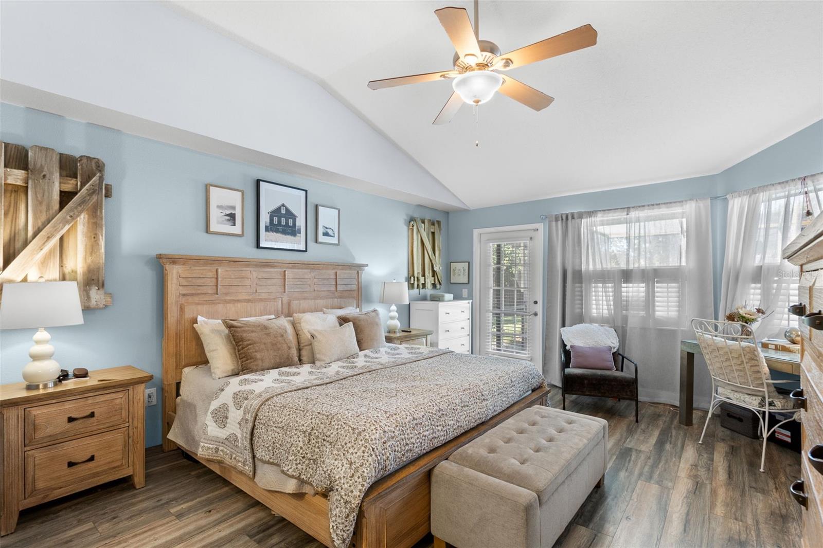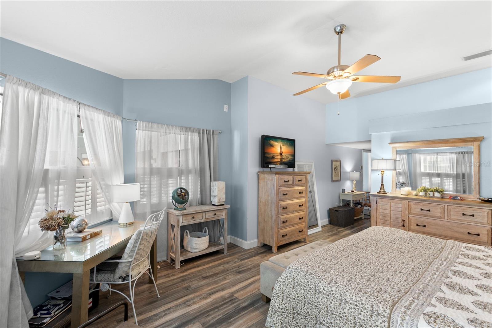 Cathedral Ceiling(s), Ceiling Fans(s), Open Floorplan, Solid Surface Counters, Solid Wood Cabinets, Stone Counters, Thermostat, Tray Ceiling(s), Walk-In Closet(s), Window Treatments