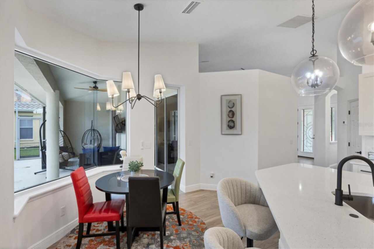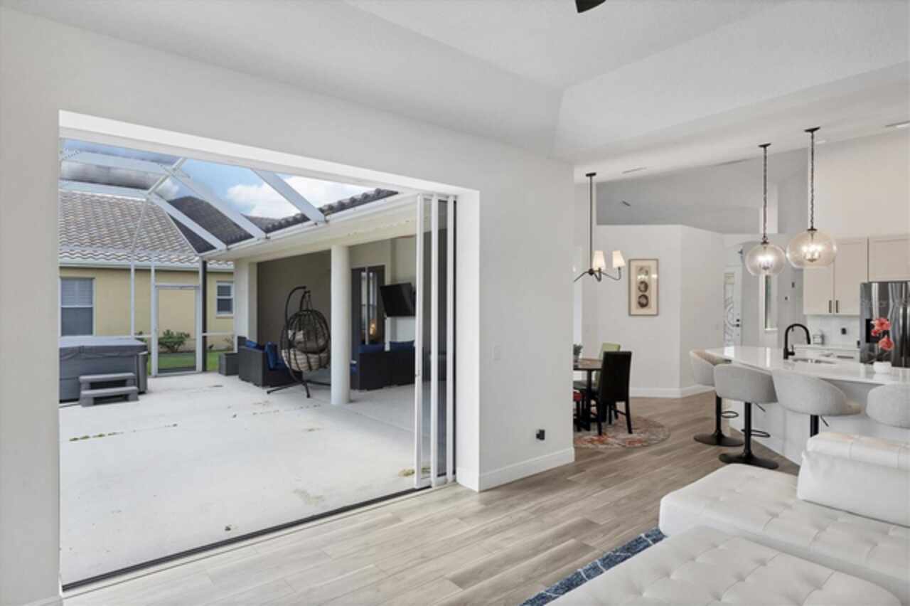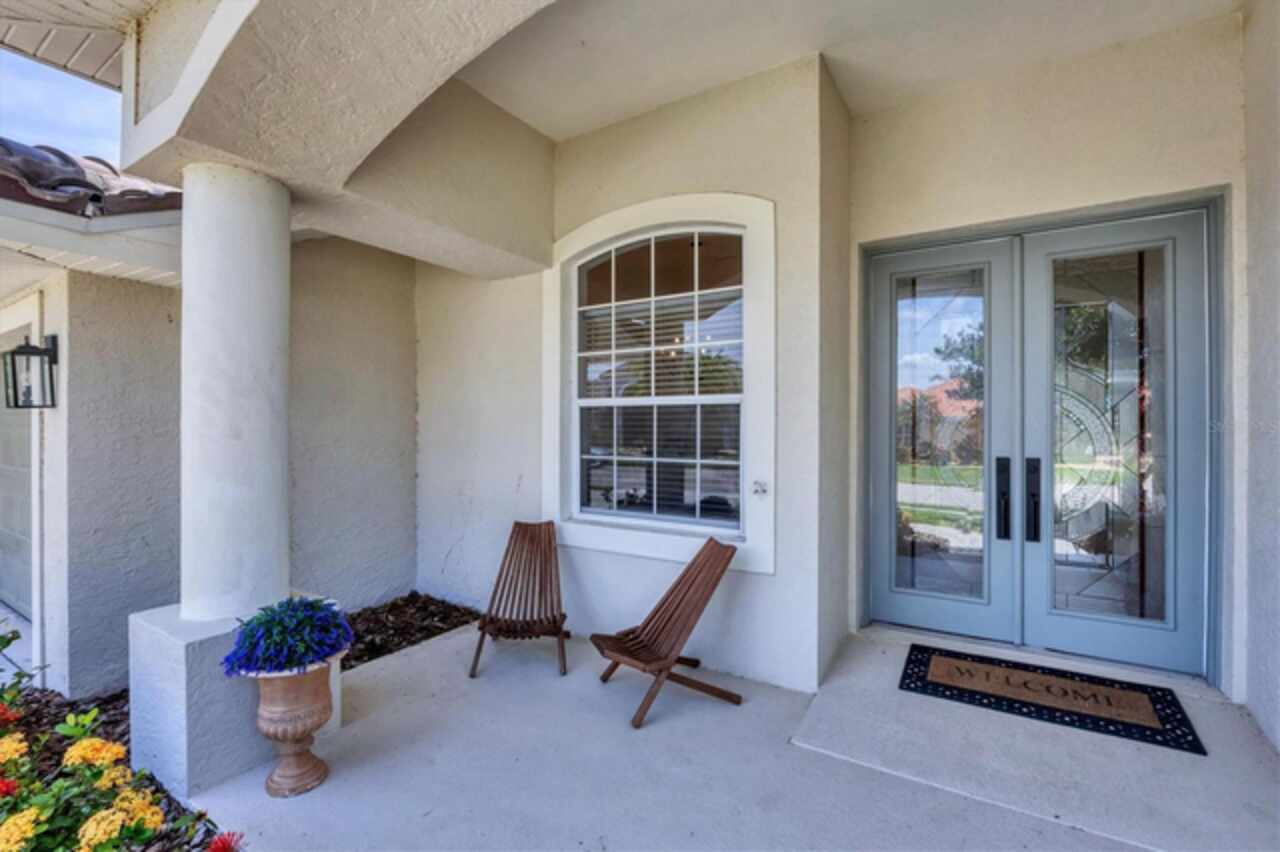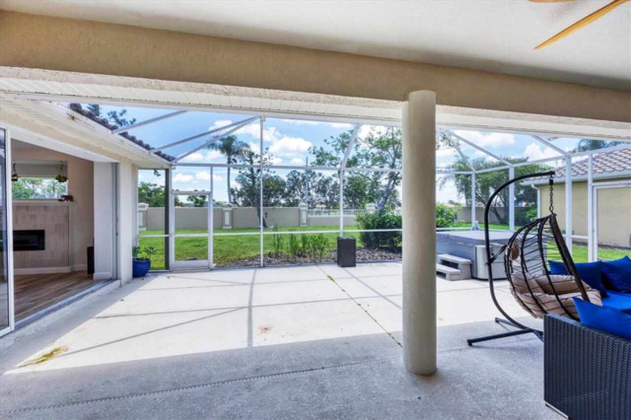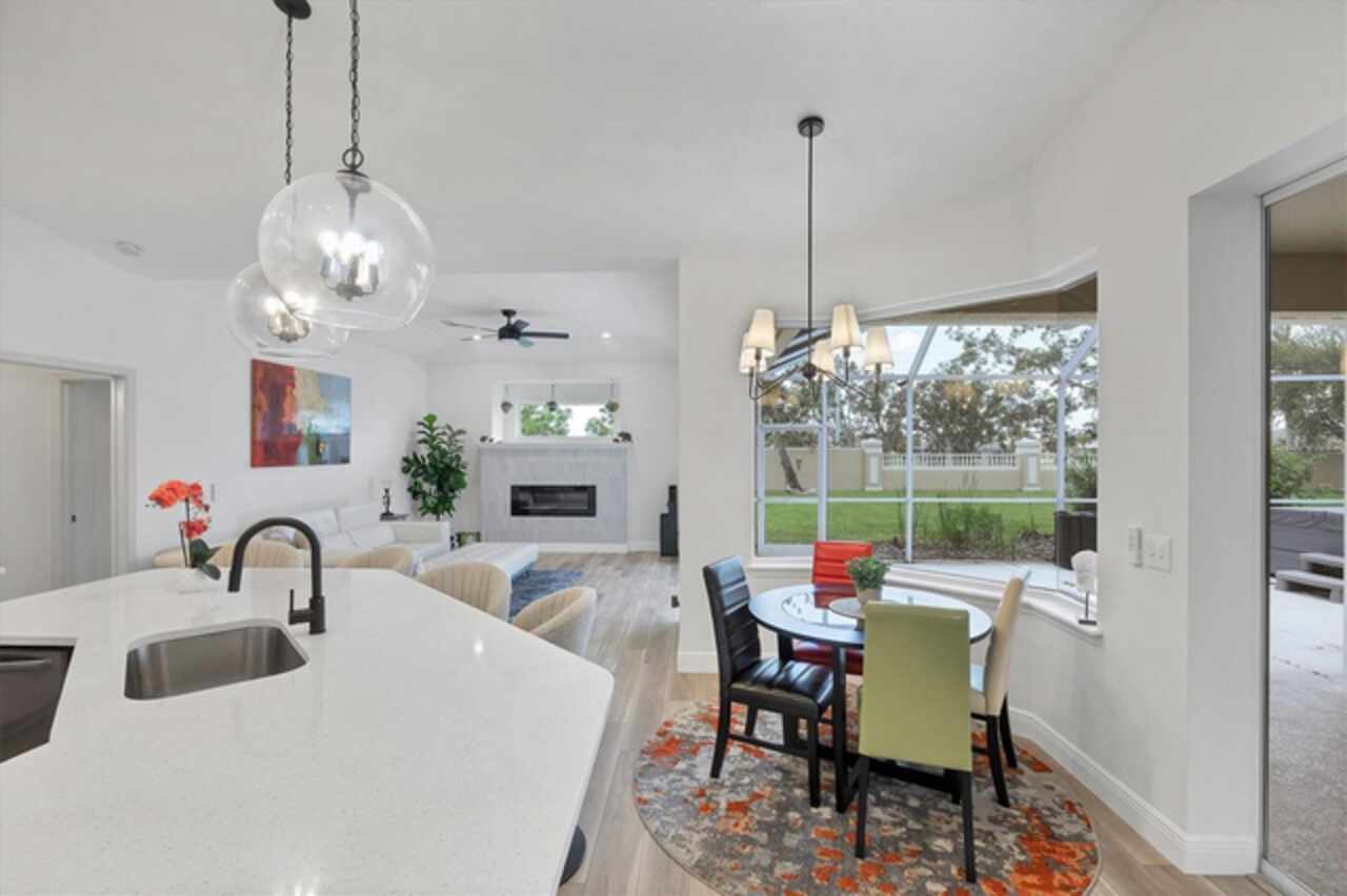 Stunning 4-Bedroom, 2-Bath Home with 2-Car Garage – New Tile Roof & A/C (2024)! This Beautifully Updated Split floor plan offers both a Spacious Living room and a Cozy Family room with a Sleek Electric Fireplace. Indoor Utility room with a Deep sink & Storage closet. Enjoy Outdoor Living on the Large Extended Screened Lanai, featuring Pocket Sliding Glass Doors from both the Family room & the Primary suite. Interior upgrades include Luxury Vinyl flooring, Stylish Modern Fixtures, 42” upper kitchen cabinets, Stainless steel appliances, Quartz countertops & Mosaic tile backsplash. The kitchen also features a Closet pantry, Breakfast bar, and a Charming Breakfast nook. The private primary suite boasts a Walk-in Closet and a Spa-like en-suite Bath with Porcelain Tile floors, a Double-Sink vanity, Soaking tub, and Seamless glass shower. Additional highlights include an Outdoor shower, New Water softener system, and an Irrigation system that uses Reclaimed water. Set on a 12, 155 sq ft lot in a Desirable Gated Community offering a Clubhouse, Fitness Center, Pickleball, Tennis, Heated Pool and Spa. All Conveniently located near Publix, Shopping, Dining, Rothenbach Park (a community park with about five miles of paved recreational trails & Two playground areas with the latest in safe playground equipment and more), and the Celery Fields (an ideal location for wildlife watching and passive recreational use). Bonus: Spa on the lanai and all furnishings available separately!