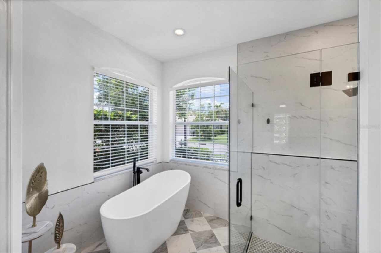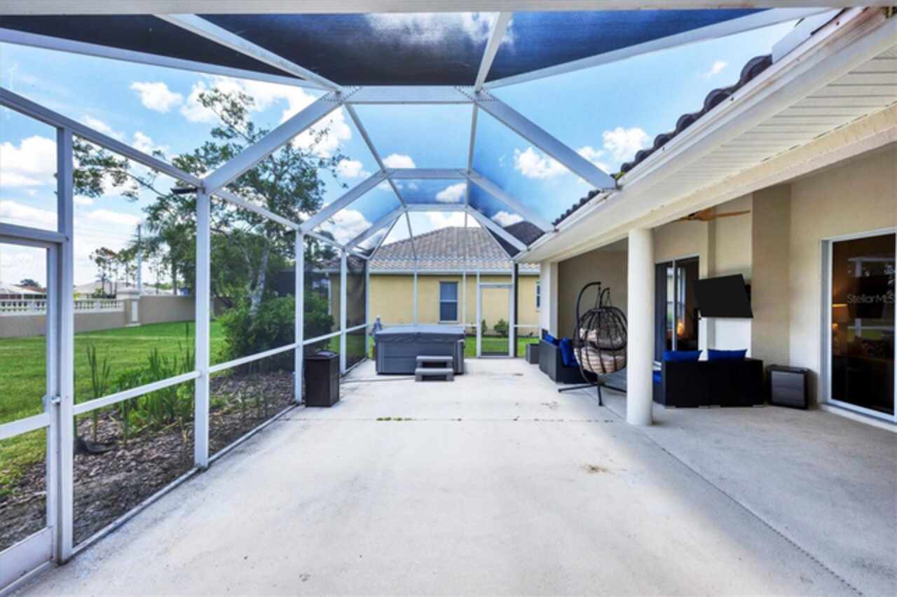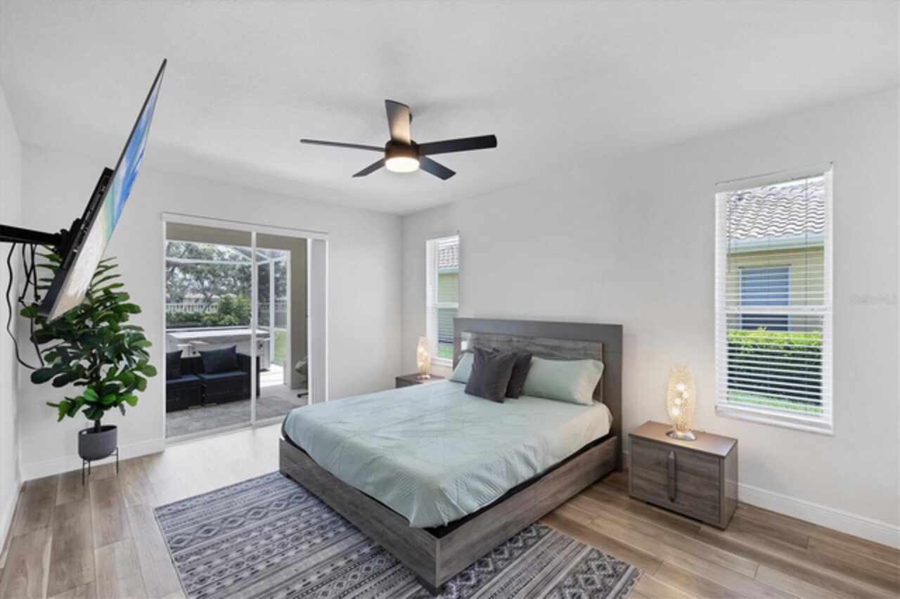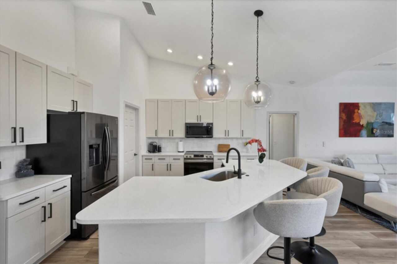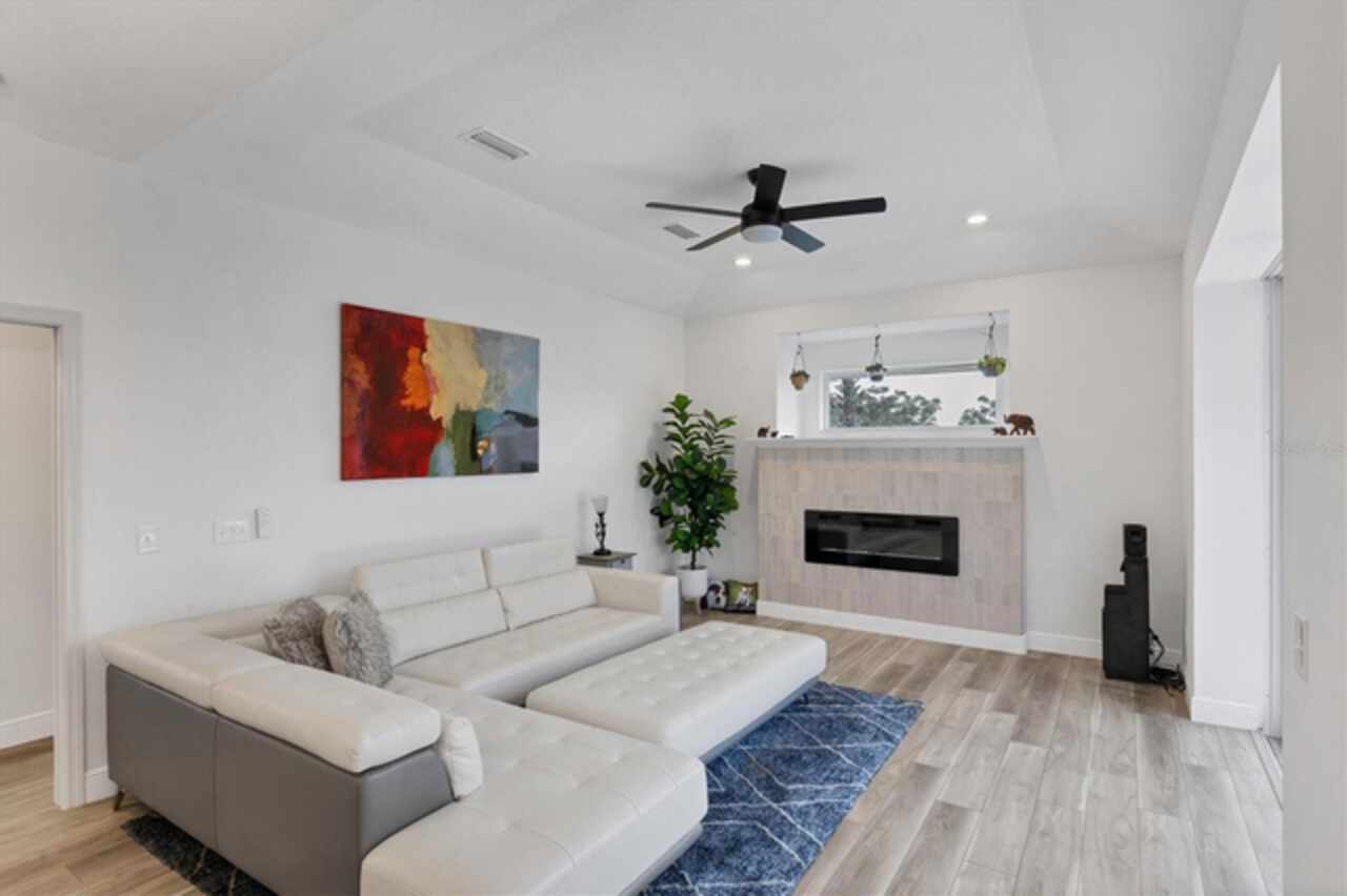 Stunning 4-Bedroom, 2-Bath Home with 2-Car Garage – New Tile Roof & A/C (2024)! This Beautifully Updated Split floor plan offers both a Spacious Living room and a Cozy Family room with a Sleek Electric Fireplace. Indoor Utility room with a Deep sink & Storage closet. Enjoy Outdoor Living on the Large Extended Screened Lanai, featuring Pocket Sliding Glass Doors from both the Family room & the Primary suite. Interior upgrades include Luxury Vinyl flooring, Stylish Modern Fixtures, 42” upper kitchen cabinets, Stainless steel appliances, Quartz countertops & Mosaic tile backsplash. The kitchen also features a Closet pantry, Breakfast bar, and a Charming Breakfast nook. The private primary suite boasts a Walk-in Closet and a Spa-like en-suite Bath with Porcelain Tile floors, a Double-Sink vanity, Soaking tub, and Seamless glass shower. Additional highlights include an Outdoor shower, New Water softener system, and an Irrigation system that uses Reclaimed water. Set on a 12, 155 sq ft lot in a Desirable Gated Community offering a Clubhouse, Fitness Center, Pickleball, Tennis, Heated Pool and Spa. All Conveniently located near Publix, Shopping, Dining, Rothenbach Park (a community park with about five miles of paved recreational trails & Two playground areas with the latest in safe playground equipment and more), and the Celery Fields (an ideal location for wildlife watching and passive recreational use). Bonus: Spa on the lanai and all furnishings available separately!