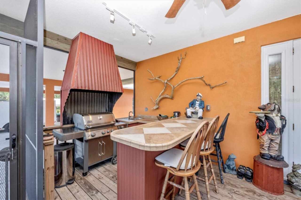 Tucked away just blocks from Historic Dearborn Street and Indian Mound Park, this custom-built masterpiece is a rare find in one of Englewood’s most sought-after neighborhoods zoned for A rated schools. Sitting on over a half-acre of fenced land, you’re minutes from the intracoastal and just 3 miles to the sandy shores of Manasota Beach. Built by a seasoned builder for his personal residence, this home offers the kind of strength and craftsmanship that’s hard to come by—designed to weather Florida’s fiercest storms while still delivering all the comforts of home. Masterfully crafted floors stretch throughout the main living areas, while the kitchen and dining space are an entertainer’s dream—anchored by a double-sided gas fireplace and filled with custom cabinetry, tile countertops, and a warm, open layout that’s both functional and inviting. Step outside to your screened-in porch complete with a full outdoor kitchen, firepit, and private upper-level balcony that captures peaceful views and stunning sunsets. A brand new Generac whole-house generator and a 500-gallon buried propane tank power it all—from the gas range to the fireplace and beyond. And if storage is on your wishlist, you’ll love the massive 1, 260 sq ft detached garage and workshop space—plenty of room for RVs, boats, and everything in between. Whether you’re looking for a forever home, a Florida getaway, or a place to live and work in peace, this one checks all the boxes. Come see it in person to truly appreciate the space, quality, and prime location.