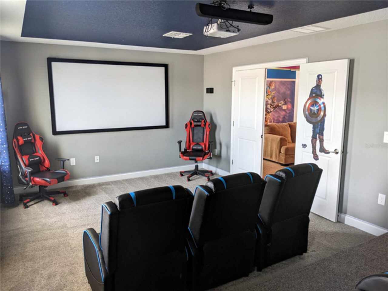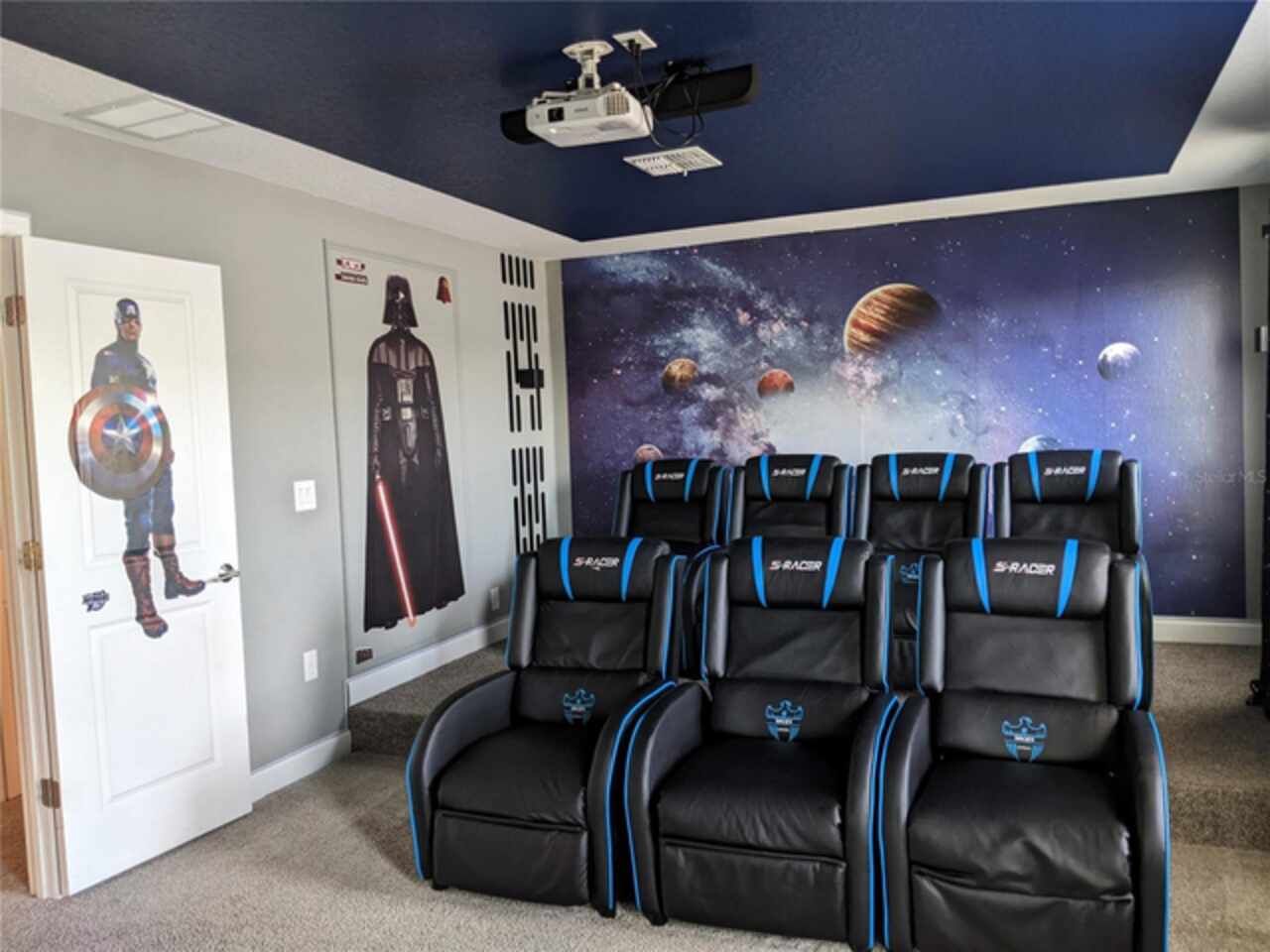 PRICE REDUCED! Investors! This is the cash flow opportunity you've been waiting for. Beautiful corner lot, overlooking a conservation area. This stunning property is located in the beautiful community of "Cove at Storey Lake", one of the most popular vacation rental communities in Central Florida. This spacious single-family home is FULLY FURNISHED and custom designed. It is the Santiago model by Lennar Homes with 9 bedrooms, 5 bathrooms, a movie theater, and a game room. The modern kitchen features 42-inch cabinets, quartz countertops, and stainless steel appliances, with an open floor plan that blends into the family and dining areas. This home includes access to the community amenities, including a resort-style pool, lazy river, water slides, a splash pad and a tiki bar serving food and drinks. Additionally, you will have access to the indoor fitness center, mini-golf courses, a playground, and much more. This is a gated community that ensures the privacy and security of its guests. It is perfect for vacation rental investors as well as families looking to create lasting memories in the magical City of Orlando. MOTIVATED SELLER IS OFFERING $5, 000 CREDIT TOWARDS BUYER'S CLOSING COSTS. This credit can be applied to BUY-DOWN YOUR INTEREST RATE. Don't miss it and schedule your private tour today!