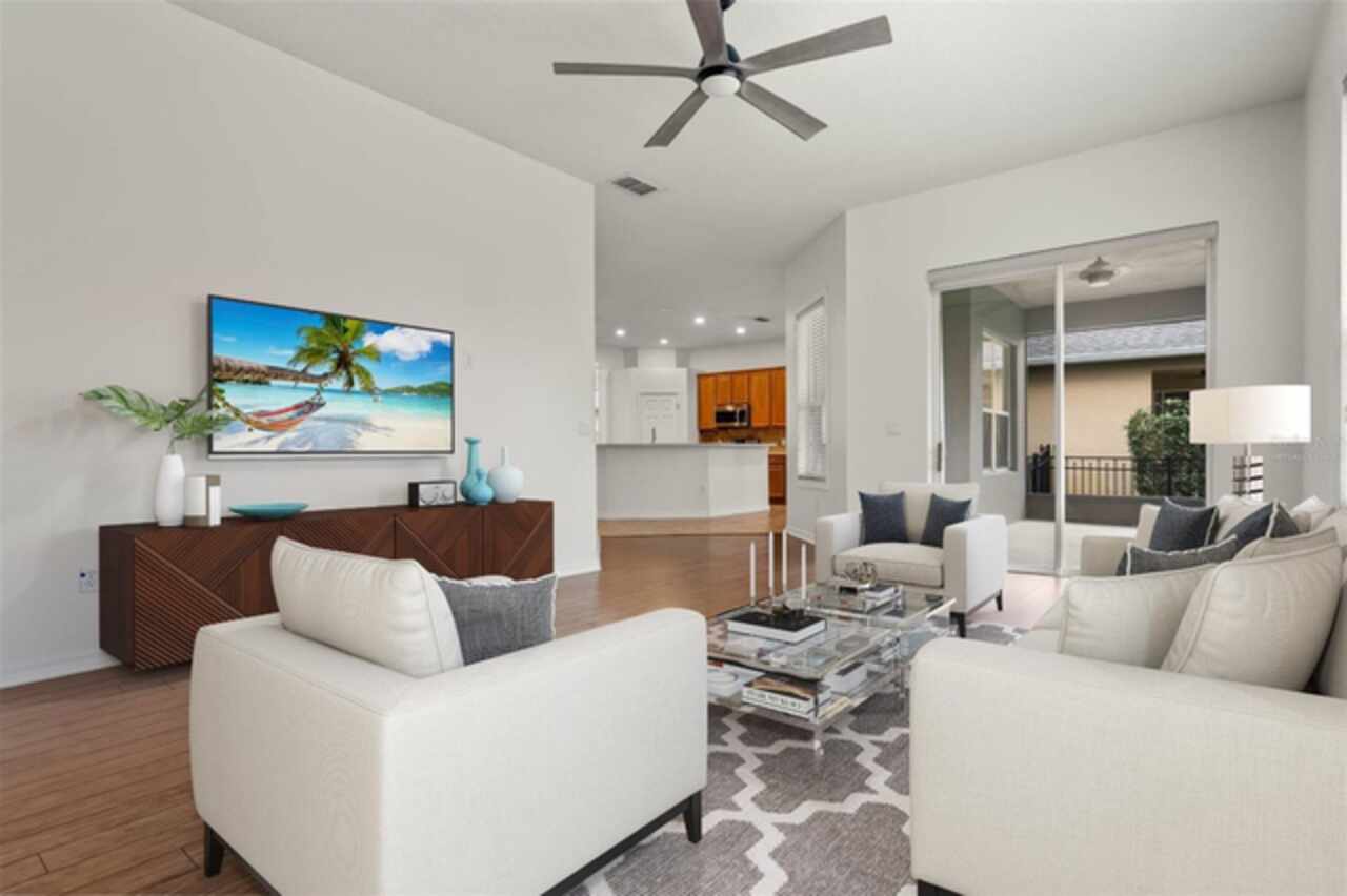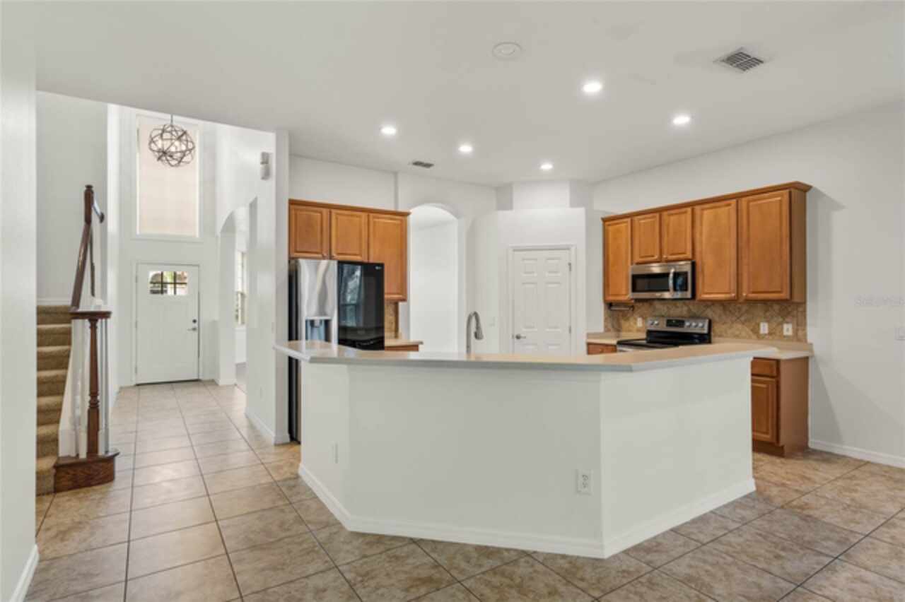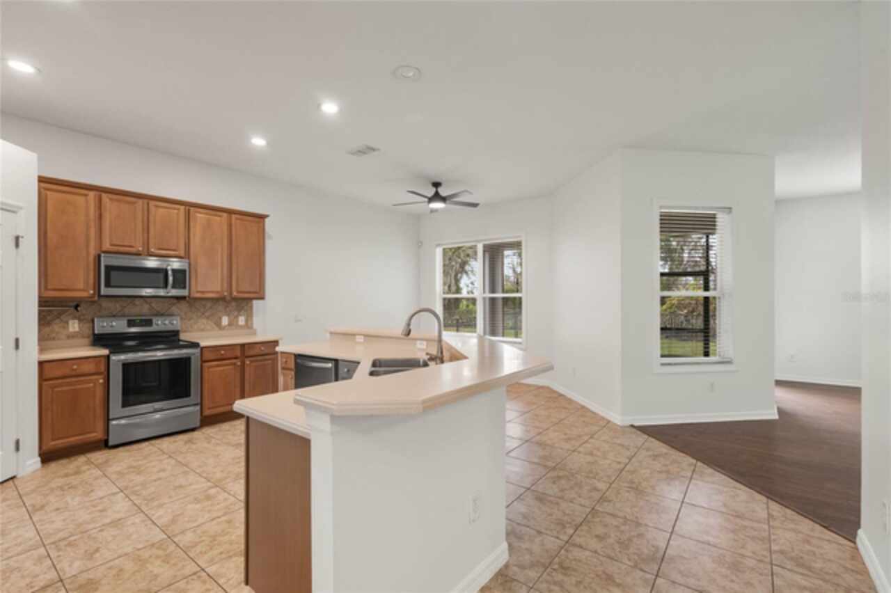 One or more photo(s) has been virtually staged. Welcome to this beautifully updated 5-bedroom, 3-bath home in the guard-gated community of Stoneybrook West, offering peaceful conservation living with partial Lake Tilden views. Ideally positioned near the resident gate for quick neighborhood access and convenient connectivity to SR-429, this home features a bright, open layout with a grand two-story foyer, formal dining, spacious family room, and a main-floor guest bedroom with full bath. Major updates provide long-term peace of mind, including two brand-new HVAC systems, a new roof (December 2024), a new water heater (May 2025), and fresh interior and exterior paint. With no carpet—only laminate, luxury vinyl plank, and tile throughout—maintenance is effortless. The kitchen offers abundant cabinetry, stainless steel appliances, and a cozy dinette overlooking the screened lanai and fenced backyard, where treetop views and glimpses of Lake Tilden create a serene outdoor retreat. Upstairs, a versatile loft offers a perfect workspace or reading nook, while the primary suite showcases lake views, a jetted tub, glass-enclosed shower, double vanities, and a walk-in closet. Secondary bedrooms are generously sized and share a full bath. Additional features include a 2-car garage with dual EV chargers and a long driveway that can comfortably accommodate multiple vehicles. Stoneybrook West residents enjoy resort-style amenities including golf, a driving range, pool, clubhouse, gym with classes, fishing pier, boat ramp, sports courts, and a playground, with cable and internet included in the HOA. Located minutes from Downtown Winter Garden, top-rated schools, shopping, dining, and major highways.