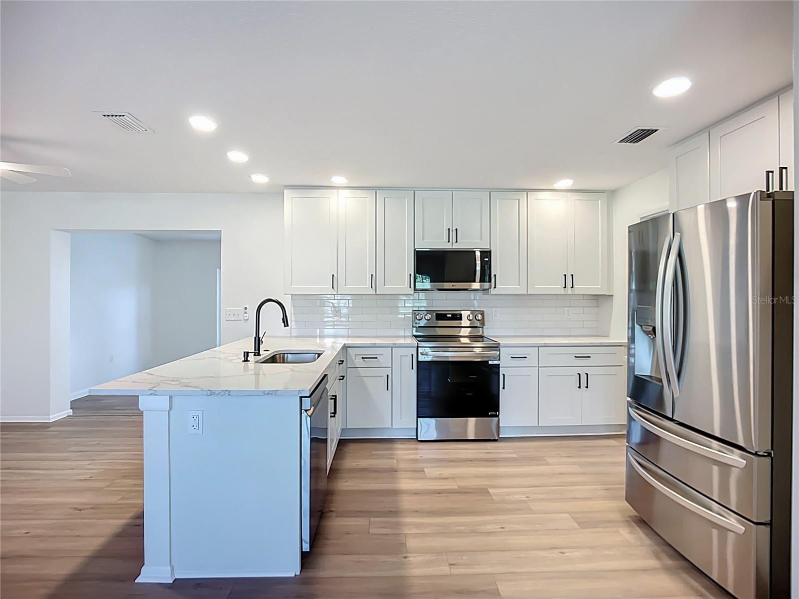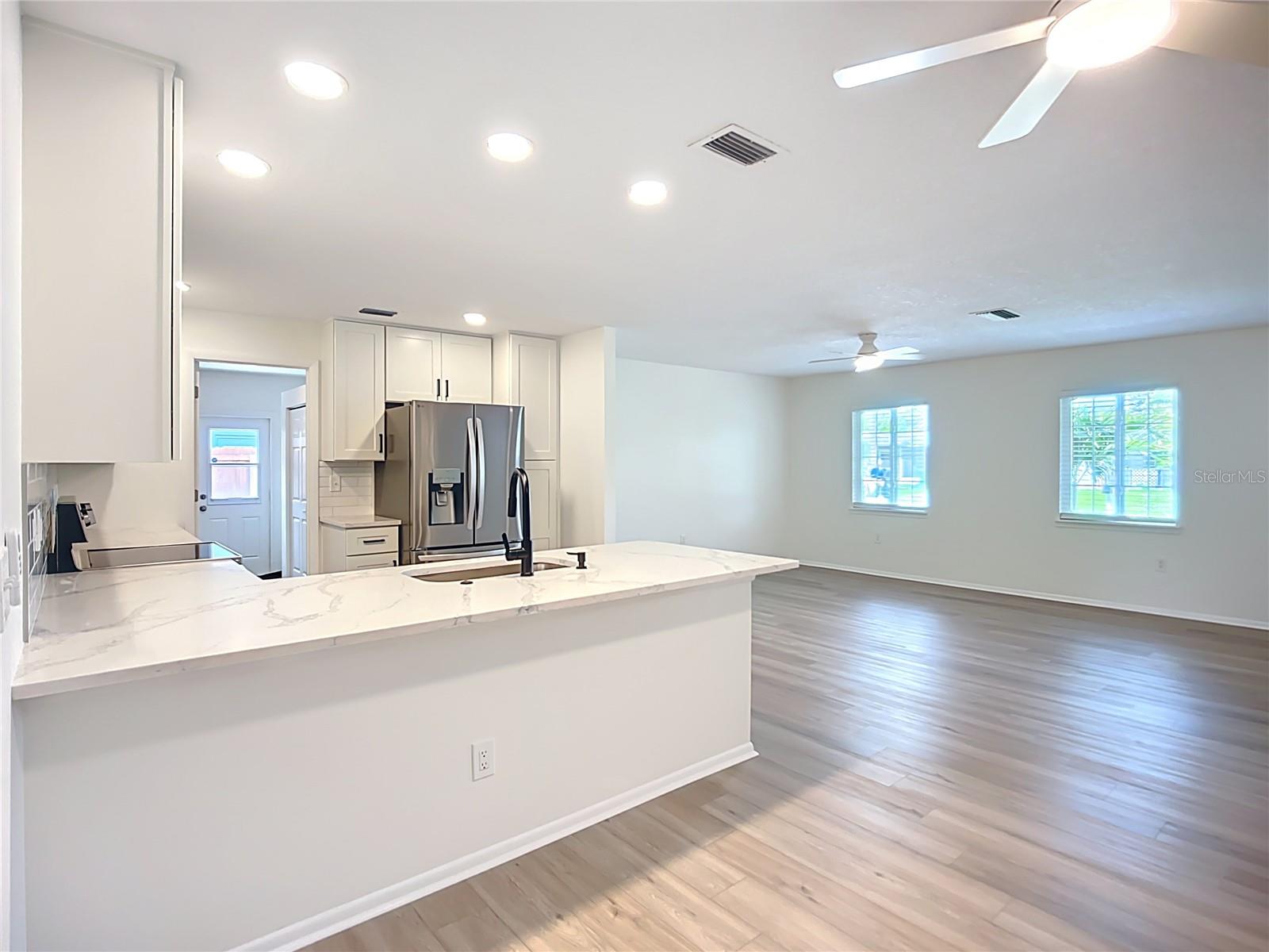 One or more photo(s) has been virtually staged. Meticulously Updated 3BR/2BA Home in West Central Bradenton – 1, 700+ Sq Ft Beautifully renovated single-family home offering over 1, 700 sq ft of living space. This 3-bedroom, 2-bath property features an open floorplan with all-new luxury vinyl flooring, fresh interior and exterior paint, and a spacious kitchen complete with quartz countertops and all-wood cabinetry. The large primary suite includes a walk-in closet and a fully updated en-suite bath with double vanity and walk-in shower. Additional highlights include a dedicated laundry room and mudroom with driveway access, a Florida room leading to a large covered patio, and a fully fenced backyard with room for a pool, outdoor kitchen, and an oversized storage shed. Owned solar system keeps electric bills low. Everything has been meticulously updated—inside and out. Move-in ready and centrally located near shopping, dining, schools, and beaches.