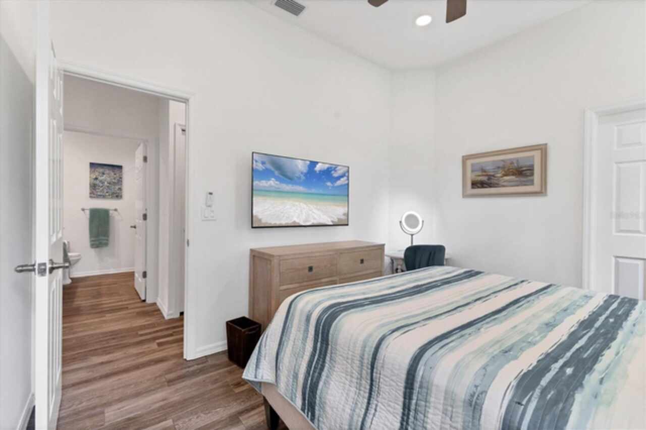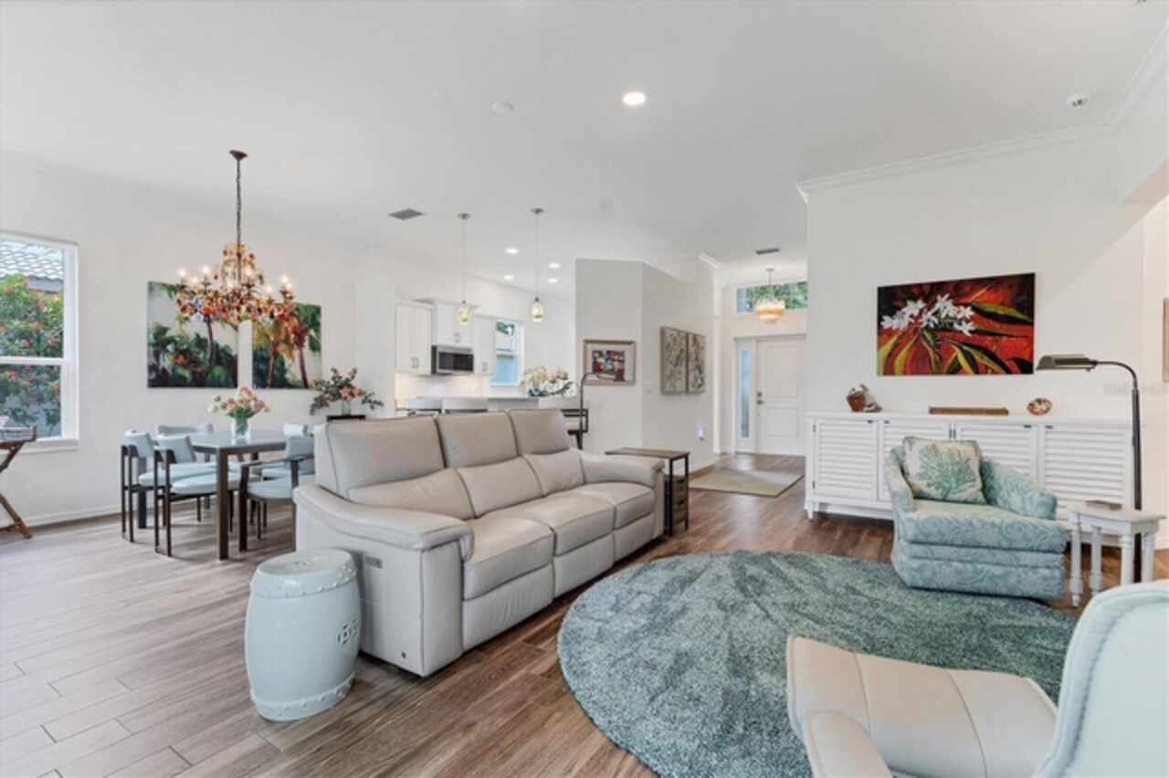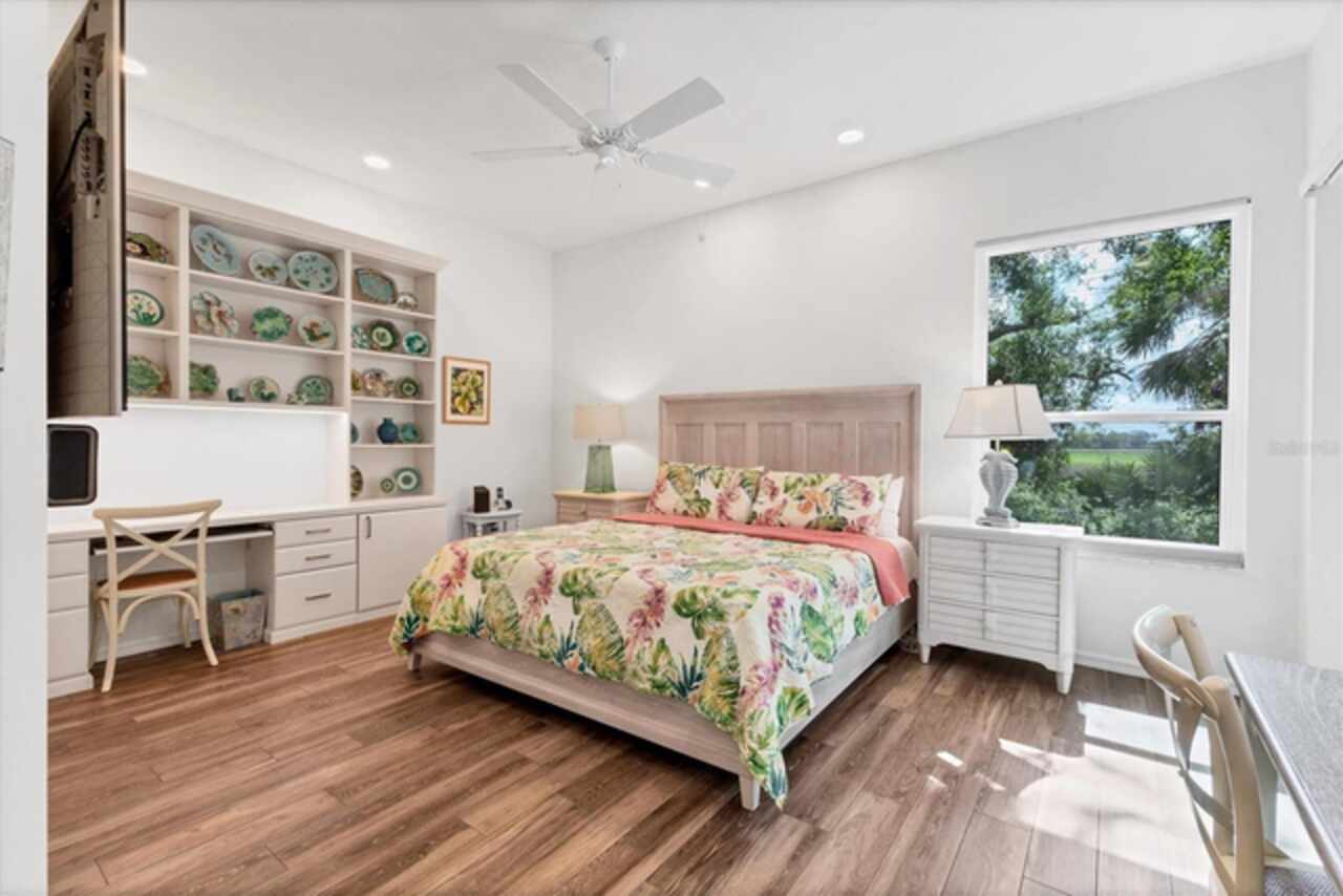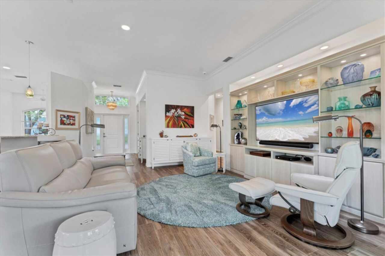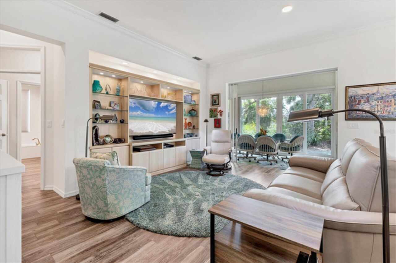 Under contract-accepting backup offers. Welcome to 2816 Breton Woods in the Meadows. This exquisite home is a three-bedroom, two-bath ranch-style home featuring an open floor plan with great flow and is move-in ready with ample storage. There are quartz countertops, custom motorized window treatments and tile flooring throughout. The kitchen features new stainless steel appliances, tile backsplash and under-cabinet lighting. Both baths have newly remodeled frameless showers. The media center in the living room, primary bedroom closet and desk/display area in the primary en-suite bedroom are custom designed by Closet Tec. In 2024, PGT Cat 5 hurricane windows and doors, including the lanai sliders and garage door, were installed. The new four-ton air conditioner with UV light, mini-split in garage and new water heater were installed in 2023. The remodel of 2023 included all new light fixtures, flooring, door hardware, ceiling fans, garage flooring and garage ceiling storage racks. The security system is by Leader. The lanai views the private old Florida wooded backyard. The tile roof is only nine years old. The home is in the Stratfield Park neighborhood of the Meadows Community. It is on a tree-canopied cul-de-sac. Stratfield offers an access trail to Nathan Benderson Park, think fireworks and walking trails around the lake. The Meadows is a vibrant community offering a maintenance-free lifestyle in a park-like setting. This property’s location is minutes from University Parkway, Interstate 75, University Town Center with upscale shopping and extensive dining venues, MoteSea Aquarium, Nathan Benderson Park and future home of the Sarasota Orchestra. It is close to SRQ airport and only 15 minutes from downtown, with all the art and culture Sarasota offers.