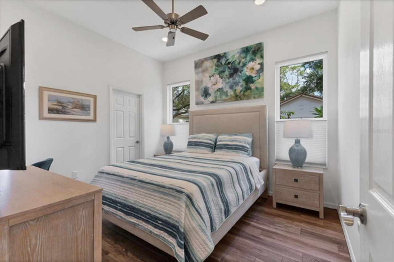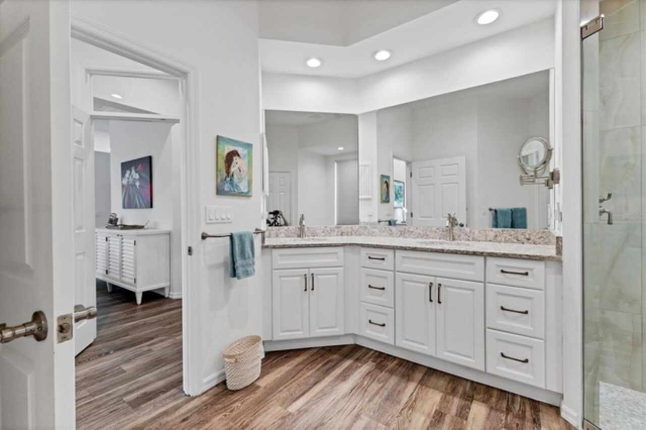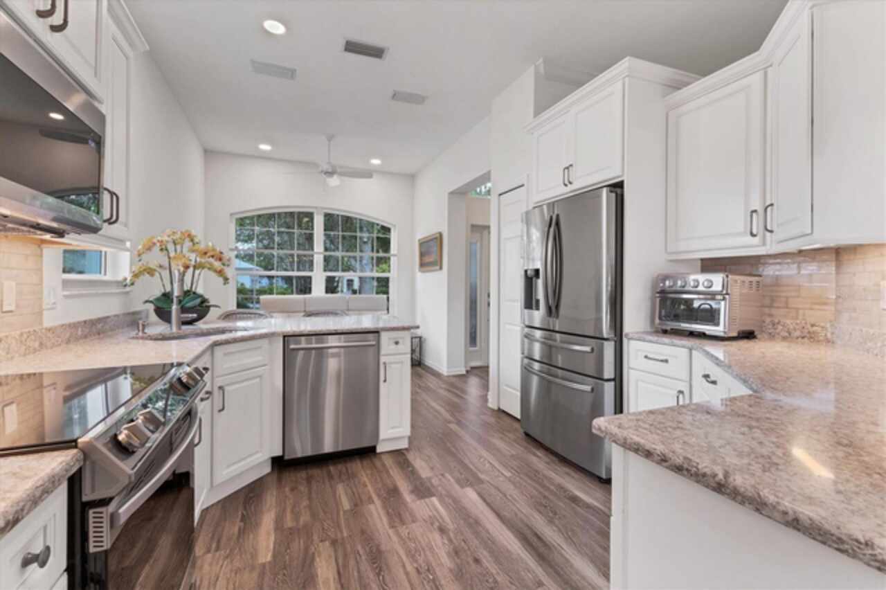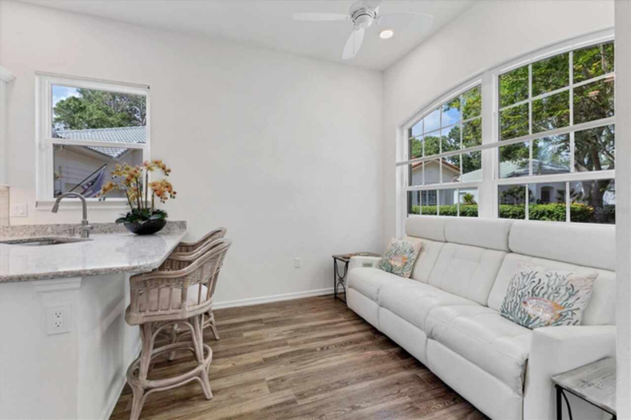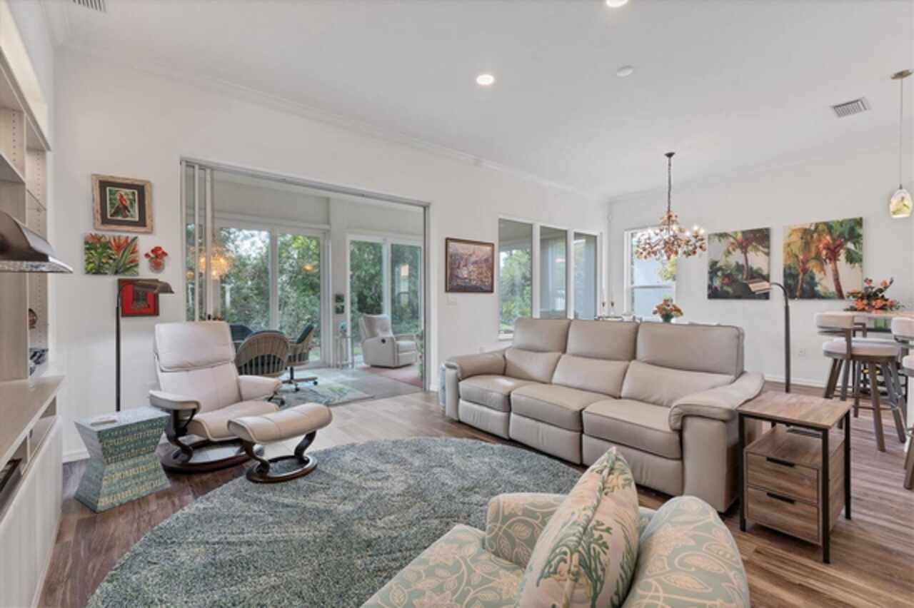 Under contract-accepting backup offers. Welcome to 2816 Breton Woods in the Meadows. This exquisite home is a three-bedroom, two-bath ranch-style home featuring an open floor plan with great flow and is move-in ready with ample storage. There are quartz countertops, custom motorized window treatments and tile flooring throughout. The kitchen features new stainless steel appliances, tile backsplash and under-cabinet lighting. Both baths have newly remodeled frameless showers. The media center in the living room, primary bedroom closet and desk/display area in the primary en-suite bedroom are custom designed by Closet Tec. In 2024, PGT Cat 5 hurricane windows and doors, including the lanai sliders and garage door, were installed. The new four-ton air conditioner with UV light, mini-split in garage and new water heater were installed in 2023. The remodel of 2023 included all new light fixtures, flooring, door hardware, ceiling fans, garage flooring and garage ceiling storage racks. The security system is by Leader. The lanai views the private old Florida wooded backyard. The tile roof is only nine years old. The home is in the Stratfield Park neighborhood of the Meadows Community. It is on a tree-canopied cul-de-sac. Stratfield offers an access trail to Nathan Benderson Park, think fireworks and walking trails around the lake. The Meadows is a vibrant community offering a maintenance-free lifestyle in a park-like setting. This property’s location is minutes from University Parkway, Interstate 75, University Town Center with upscale shopping and extensive dining venues, MoteSea Aquarium, Nathan Benderson Park and future home of the Sarasota Orchestra. It is close to SRQ airport and only 15 minutes from downtown, with all the art and culture Sarasota offers.