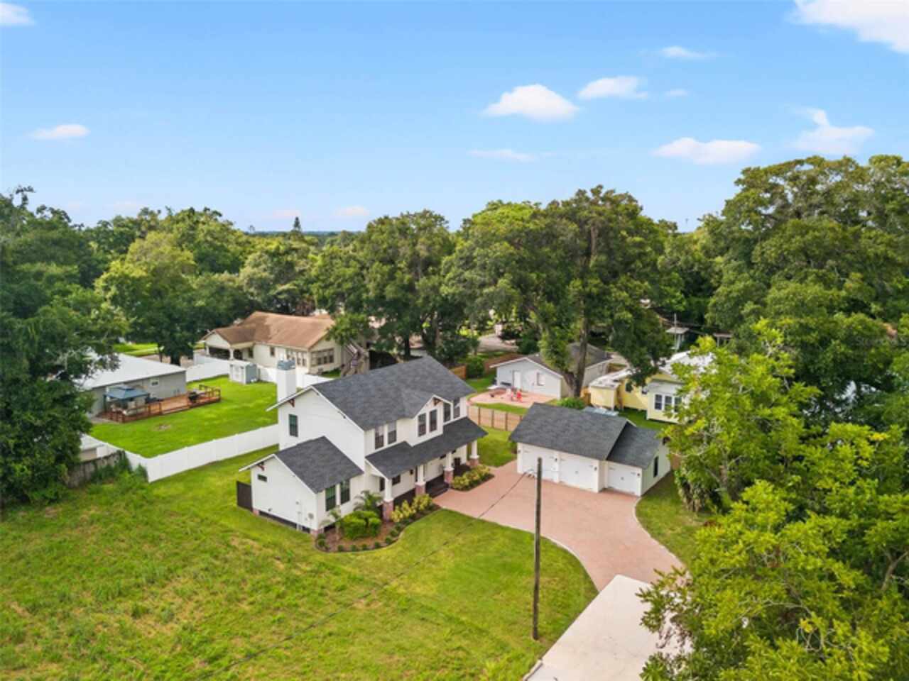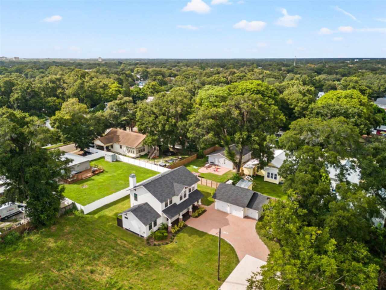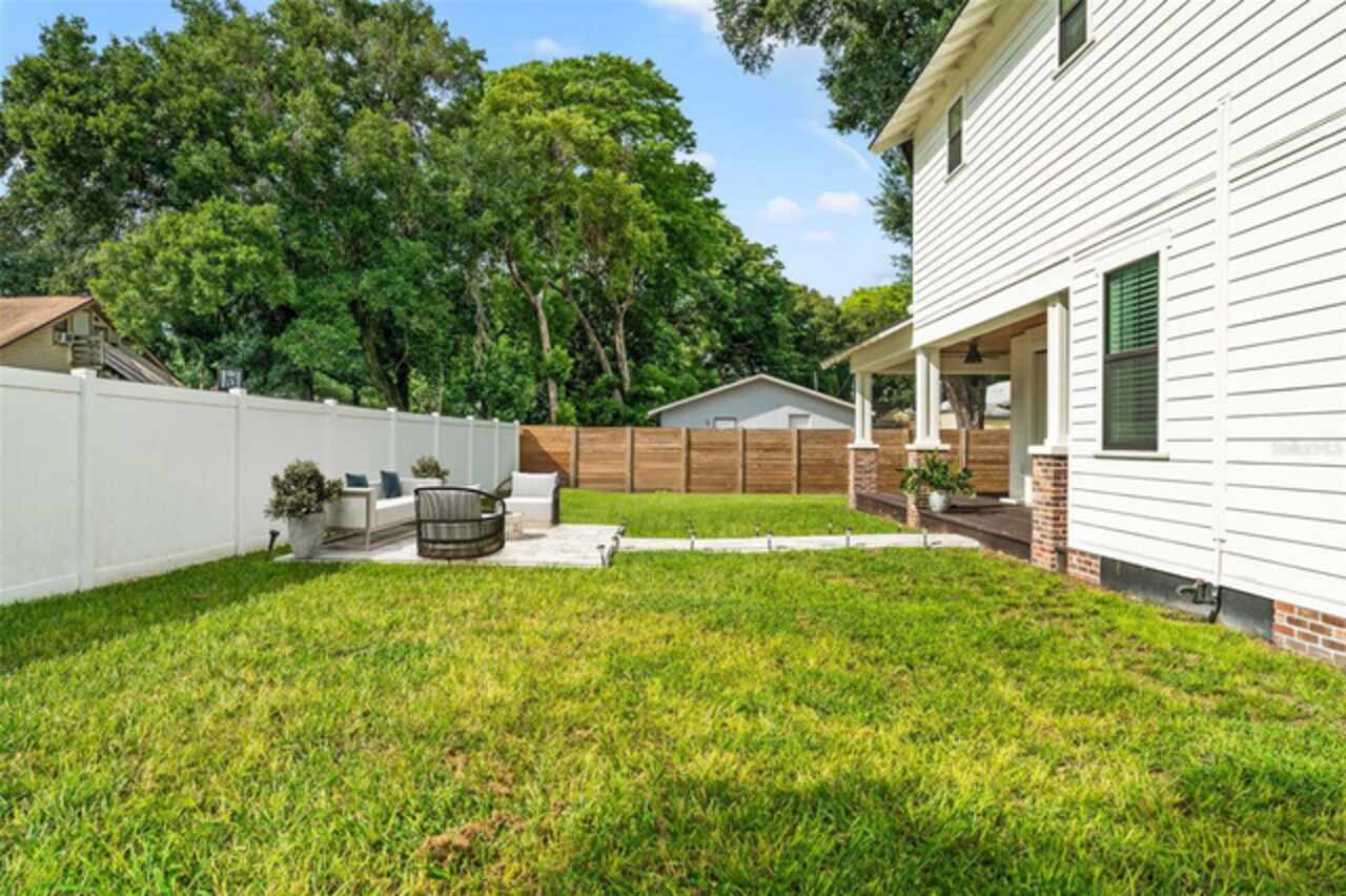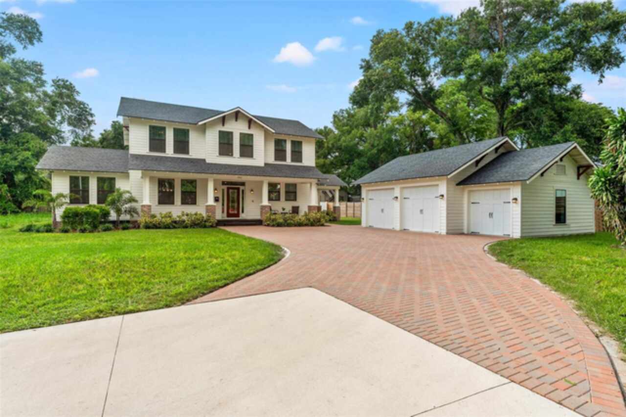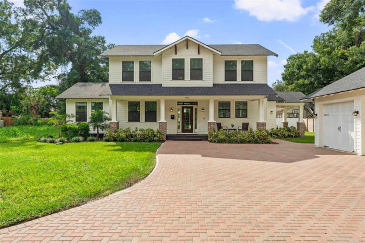 Under contract-accepting backup offers. TWO YEAR PRE LEASE OCCUPANCY AGREEMENT. Welcome to your dream home in the heart of Tampa Heights! This stunning 2023-built Craftsman farmhouse sits on an expansive 1/3 acre lot at the end of a quiet, dead-end street. From the moment you arrive, you'll be captivated by the charming curb appeal, featuring a large front porch and beautifully landscaped surroundings. The detached three-car garage and expansive paved driveway offer ample space for parking. Inside, you'll find engineered hardwood floors that guide you through a spacious living and dining area, featuring a brick feature wall and a cozy gas-burning fireplace. A versatile bedroom/office with vaulted ceilings and wood beams adds convenience and flexibility to the floor plan, making it perfect for work or relaxation. The heart of the home is the beautifully designed kitchen, boasting two islands—one with a butcher block surface and the other with quartz countertops, offering plenty of space for prep and seating. High-end GE appliances, including a gas range and drawer microwave, enhance the kitchen’s functionality. A Zellige tile backsplash adds a modern touch, while the walk-in pantry provides ample storage. Tucked away for a more intimate feel, this kitchen strikes the perfect balance of luxury and practicality. Step through the infinity sliding glass doors and enter a backyard that’s bursting with possibilities. Whether you're dreaming of adding a resort-style pool, an outdoor kitchen, or creating the ultimate entertainment space, the expansive yard can accommodate it all. Enjoy cozy evenings by the paved firepit, or relax on the covered porch with its stunning wood-accented ceilings and fans. Upstairs, the primary bedroom is a true retreat, featuring vaulted ceilings with wood beams and an abundance of natural light. Step through the sliding barn door to the spacious primary bathroom, where you’ll find a double vanity, an oversized walk-in shower, and a custom walk-in closet. Two additional spacious bedrooms with large closets complete the upper level. This home seamlessly blends modern amenities with timeless design, offering the perfect balance of style, comfort, and limitless potential. Don’t miss the chance to call this Tampa Heights gem your own!