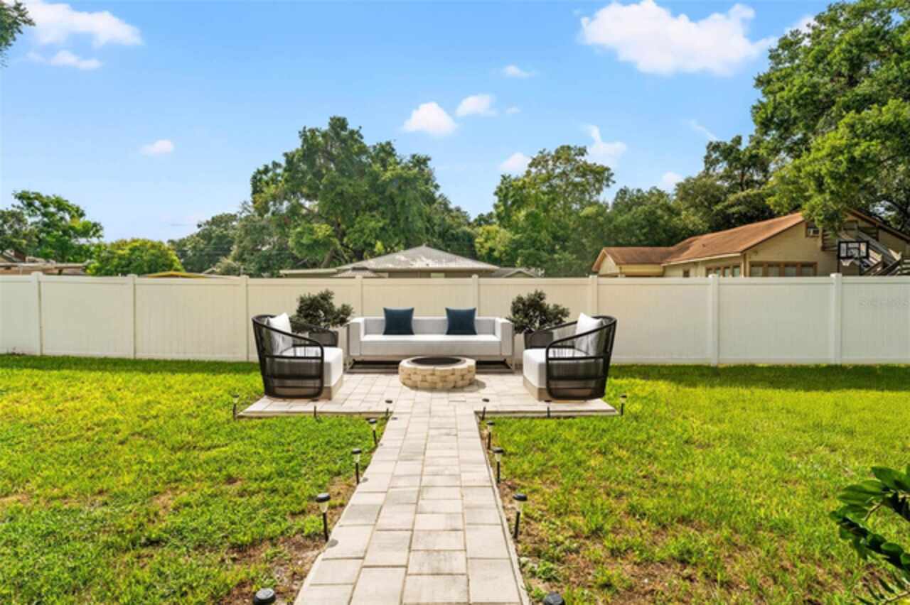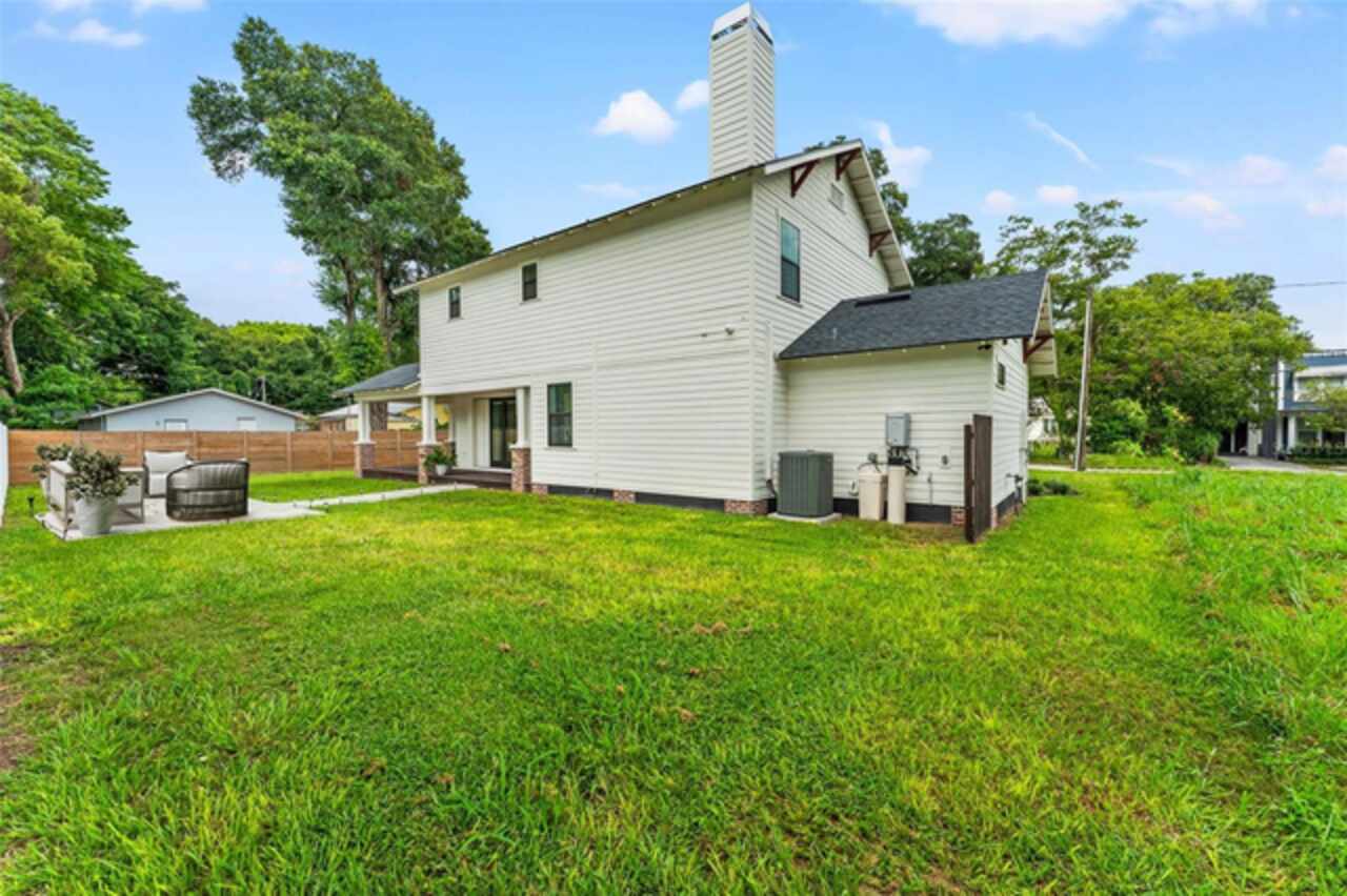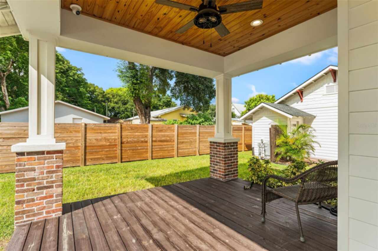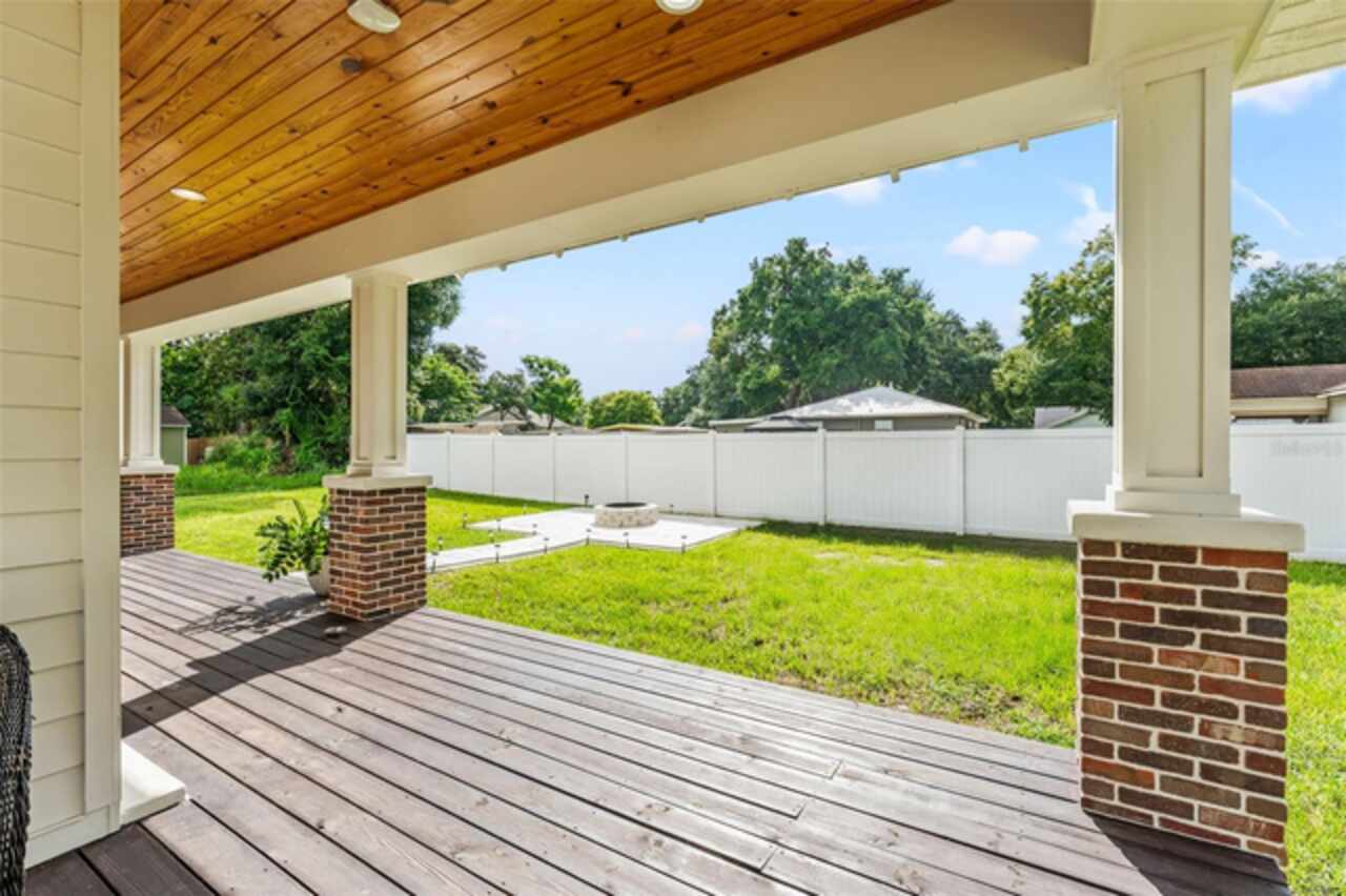 Under contract-accepting backup offers. TWO YEAR PRE LEASE OCCUPANCY AGREEMENT. Welcome to your dream home in the heart of Tampa Heights! This stunning 2023-built Craftsman farmhouse sits on an expansive 1/3 acre lot at the end of a quiet, dead-end street. From the moment you arrive, you'll be captivated by the charming curb appeal, featuring a large front porch and beautifully landscaped surroundings. The detached three-car garage and expansive paved driveway offer ample space for parking. Inside, you'll find engineered hardwood floors that guide you through a spacious living and dining area, featuring a brick feature wall and a cozy gas-burning fireplace. A versatile bedroom/office with vaulted ceilings and wood beams adds convenience and flexibility to the floor plan, making it perfect for work or relaxation. The heart of the home is the beautifully designed kitchen, boasting two islands—one with a butcher block surface and the other with quartz countertops, offering plenty of space for prep and seating. High-end GE appliances, including a gas range and drawer microwave, enhance the kitchen’s functionality. A Zellige tile backsplash adds a modern touch, while the walk-in pantry provides ample storage. Tucked away for a more intimate feel, this kitchen strikes the perfect balance of luxury and practicality. Step through the infinity sliding glass doors and enter a backyard that’s bursting with possibilities. Whether you're dreaming of adding a resort-style pool, an outdoor kitchen, or creating the ultimate entertainment space, the expansive yard can accommodate it all. Enjoy cozy evenings by the paved firepit, or relax on the covered porch with its stunning wood-accented ceilings and fans. Upstairs, the primary bedroom is a true retreat, featuring vaulted ceilings with wood beams and an abundance of natural light. Step through the sliding barn door to the spacious primary bathroom, where you’ll find a double vanity, an oversized walk-in shower, and a custom walk-in closet. Two additional spacious bedrooms with large closets complete the upper level. This home seamlessly blends modern amenities with timeless design, offering the perfect balance of style, comfort, and limitless potential. Don’t miss the chance to call this Tampa Heights gem your own!