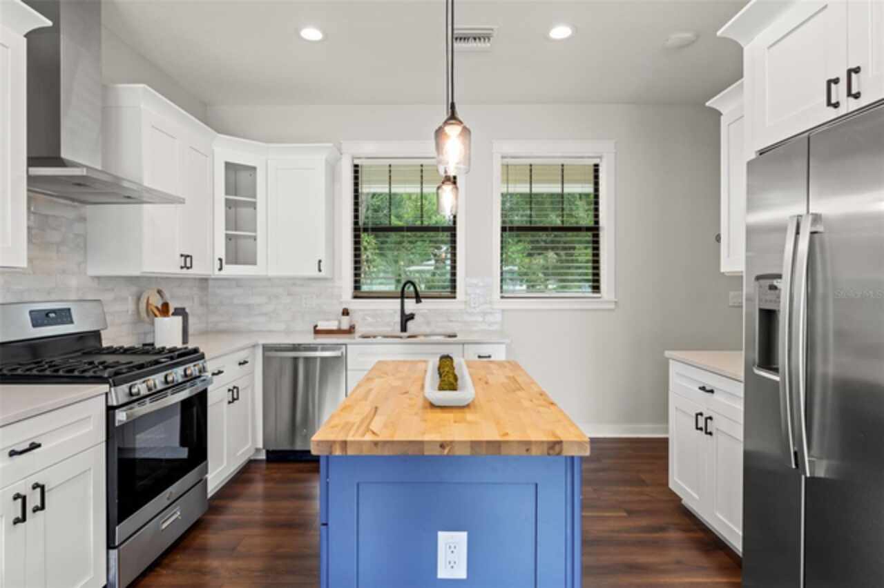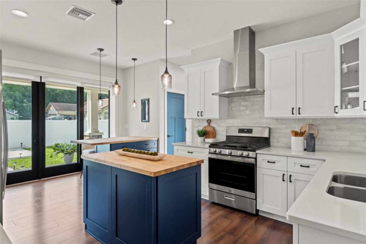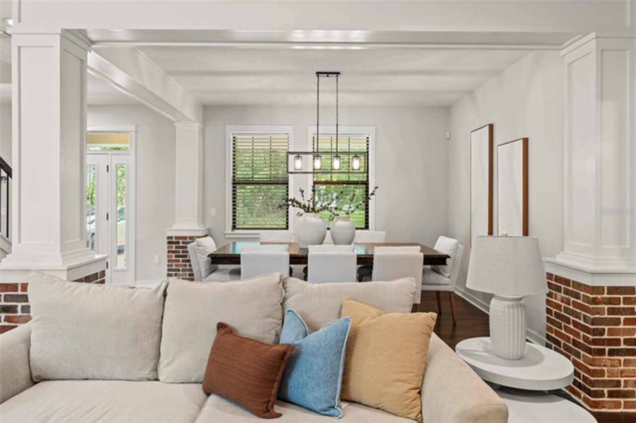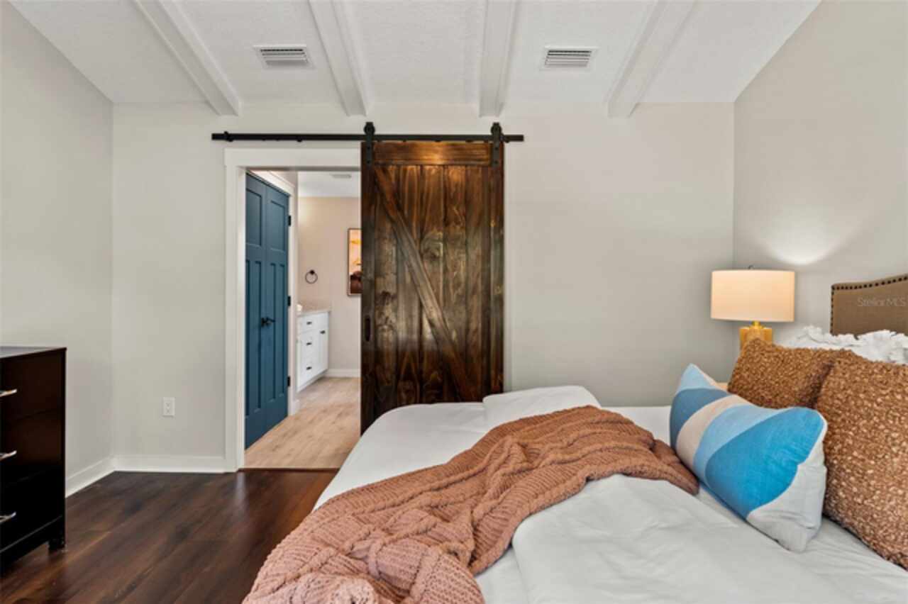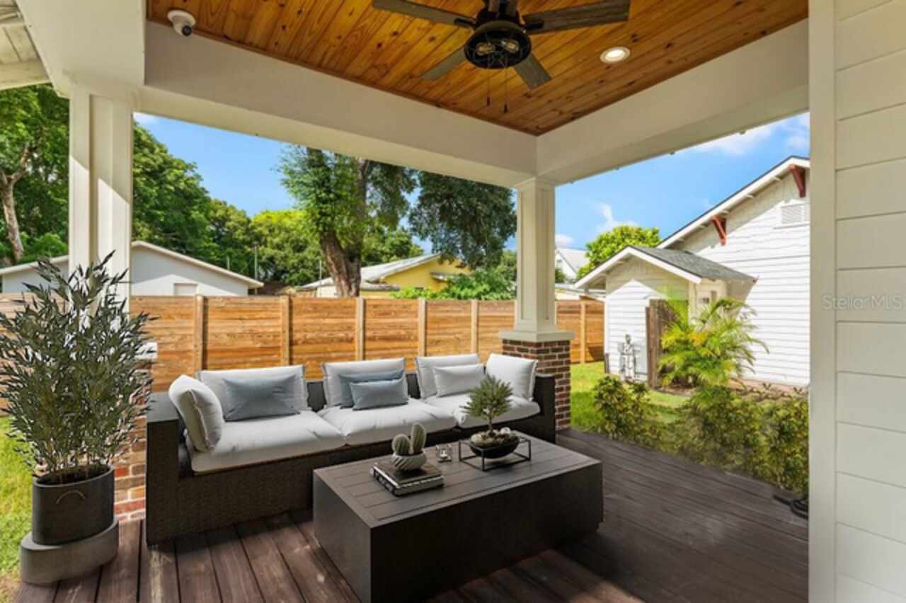 Under contract-accepting backup offers. TWO YEAR PRE LEASE OCCUPANCY AGREEMENT. Welcome to your dream home in the heart of Tampa Heights! This stunning 2023-built Craftsman farmhouse sits on an expansive 1/3 acre lot at the end of a quiet, dead-end street. From the moment you arrive, you'll be captivated by the charming curb appeal, featuring a large front porch and beautifully landscaped surroundings. The detached three-car garage and expansive paved driveway offer ample space for parking. Inside, you'll find engineered hardwood floors that guide you through a spacious living and dining area, featuring a brick feature wall and a cozy gas-burning fireplace. A versatile bedroom/office with vaulted ceilings and wood beams adds convenience and flexibility to the floor plan, making it perfect for work or relaxation. The heart of the home is the beautifully designed kitchen, boasting two islands—one with a butcher block surface and the other with quartz countertops, offering plenty of space for prep and seating. High-end GE appliances, including a gas range and drawer microwave, enhance the kitchen’s functionality. A Zellige tile backsplash adds a modern touch, while the walk-in pantry provides ample storage. Tucked away for a more intimate feel, this kitchen strikes the perfect balance of luxury and practicality. Step through the infinity sliding glass doors and enter a backyard that’s bursting with possibilities. Whether you're dreaming of adding a resort-style pool, an outdoor kitchen, or creating the ultimate entertainment space, the expansive yard can accommodate it all. Enjoy cozy evenings by the paved firepit, or relax on the covered porch with its stunning wood-accented ceilings and fans. Upstairs, the primary bedroom is a true retreat, featuring vaulted ceilings with wood beams and an abundance of natural light. Step through the sliding barn door to the spacious primary bathroom, where you’ll find a double vanity, an oversized walk-in shower, and a custom walk-in closet. Two additional spacious bedrooms with large closets complete the upper level. This home seamlessly blends modern amenities with timeless design, offering the perfect balance of style, comfort, and limitless potential. Don’t miss the chance to call this Tampa Heights gem your own!