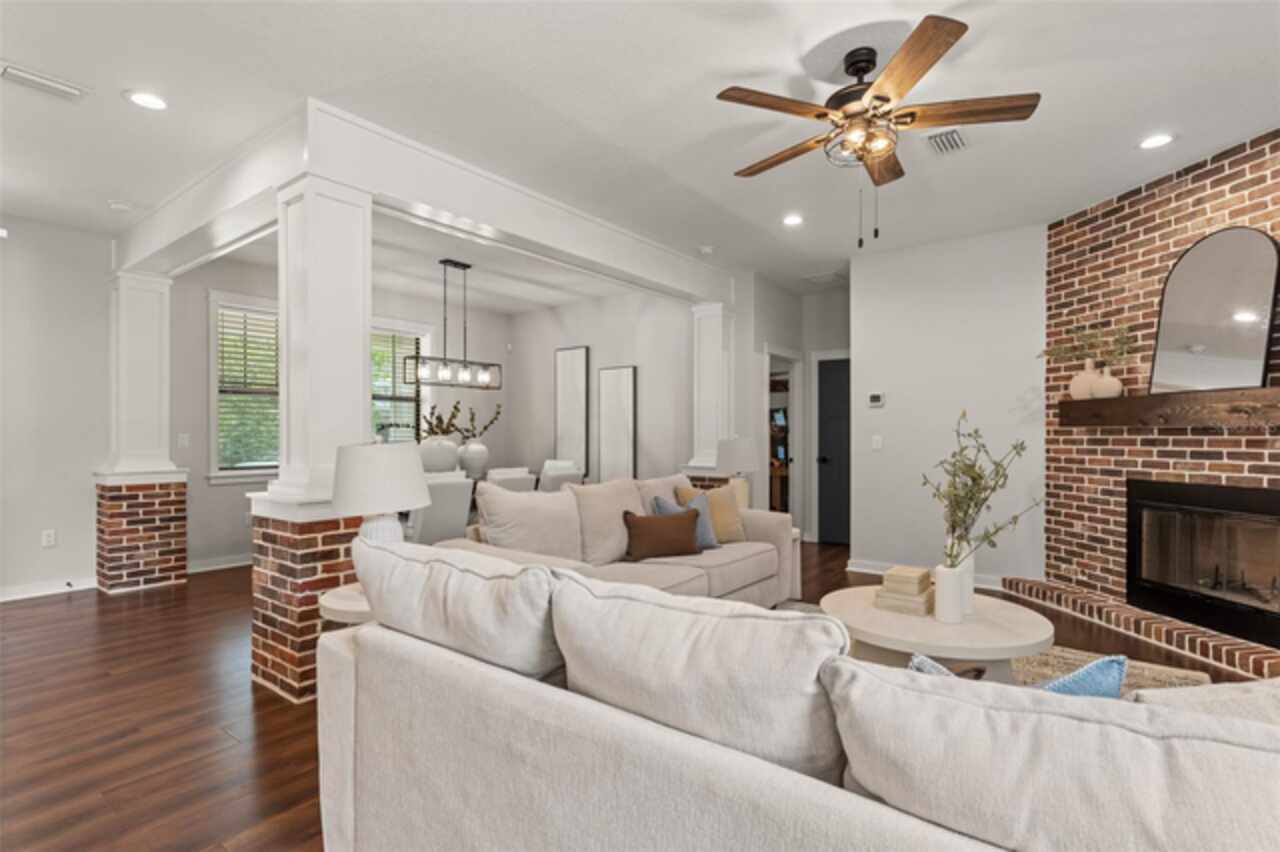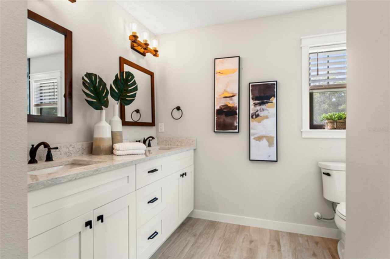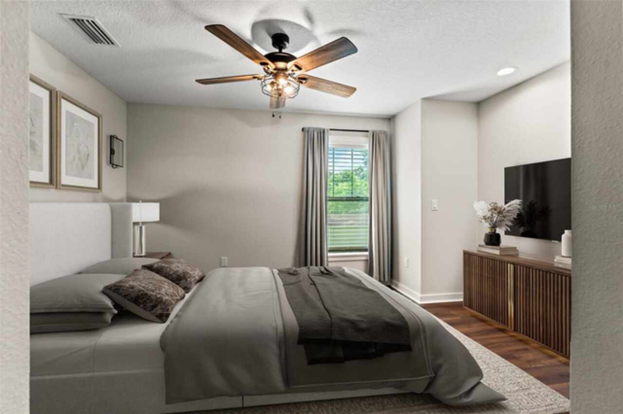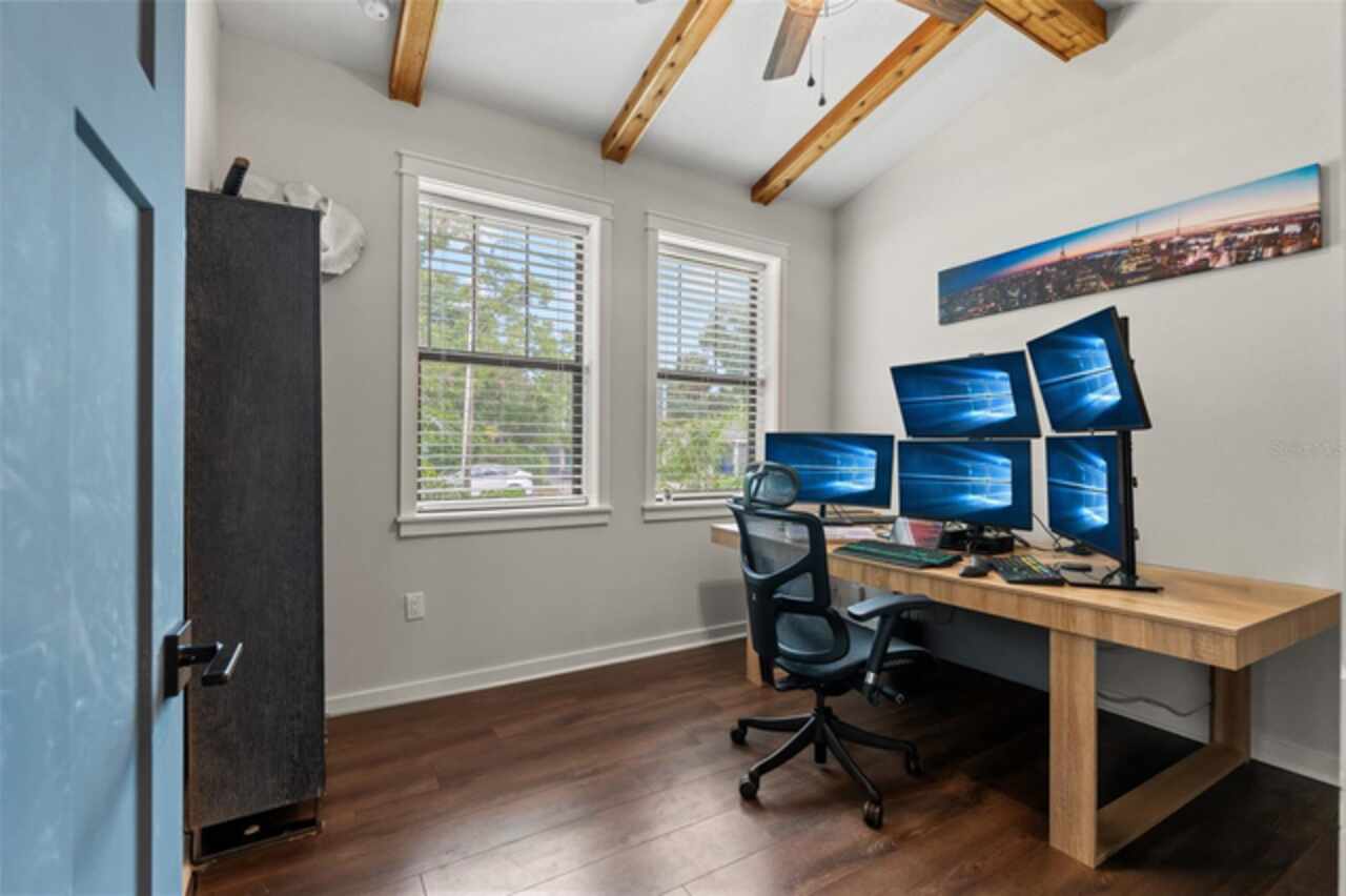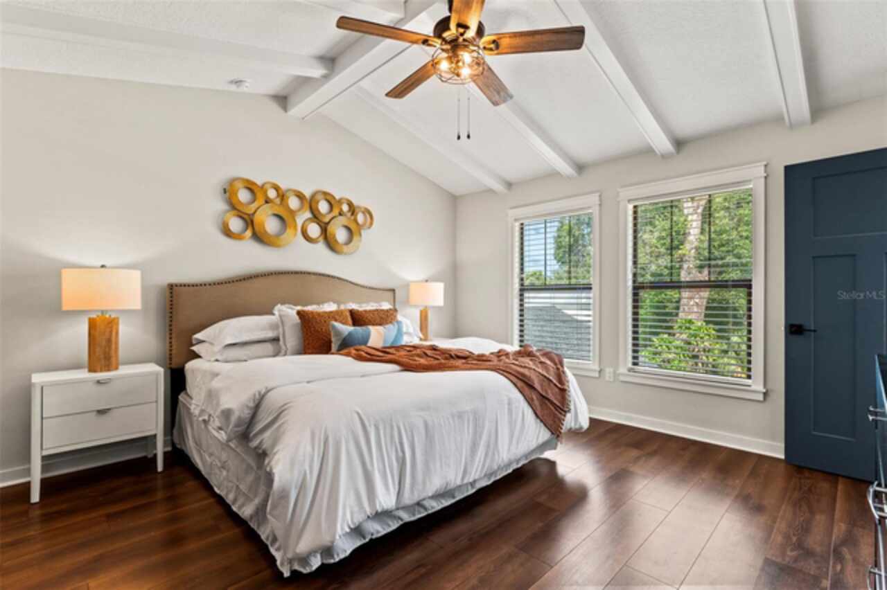 Under contract-accepting backup offers. TWO YEAR PRE LEASE OCCUPANCY AGREEMENT. Welcome to your dream home in the heart of Tampa Heights! This stunning 2023-built Craftsman farmhouse sits on an expansive 1/3 acre lot at the end of a quiet, dead-end street. From the moment you arrive, you'll be captivated by the charming curb appeal, featuring a large front porch and beautifully landscaped surroundings. The detached three-car garage and expansive paved driveway offer ample space for parking. Inside, you'll find engineered hardwood floors that guide you through a spacious living and dining area, featuring a brick feature wall and a cozy gas-burning fireplace. A versatile bedroom/office with vaulted ceilings and wood beams adds convenience and flexibility to the floor plan, making it perfect for work or relaxation. The heart of the home is the beautifully designed kitchen, boasting two islands—one with a butcher block surface and the other with quartz countertops, offering plenty of space for prep and seating. High-end GE appliances, including a gas range and drawer microwave, enhance the kitchen’s functionality. A Zellige tile backsplash adds a modern touch, while the walk-in pantry provides ample storage. Tucked away for a more intimate feel, this kitchen strikes the perfect balance of luxury and practicality. Step through the infinity sliding glass doors and enter a backyard that’s bursting with possibilities. Whether you're dreaming of adding a resort-style pool, an outdoor kitchen, or creating the ultimate entertainment space, the expansive yard can accommodate it all. Enjoy cozy evenings by the paved firepit, or relax on the covered porch with its stunning wood-accented ceilings and fans. Upstairs, the primary bedroom is a true retreat, featuring vaulted ceilings with wood beams and an abundance of natural light. Step through the sliding barn door to the spacious primary bathroom, where you’ll find a double vanity, an oversized walk-in shower, and a custom walk-in closet. Two additional spacious bedrooms with large closets complete the upper level. This home seamlessly blends modern amenities with timeless design, offering the perfect balance of style, comfort, and limitless potential. Don’t miss the chance to call this Tampa Heights gem your own!