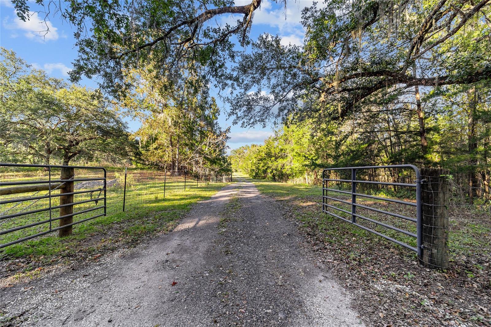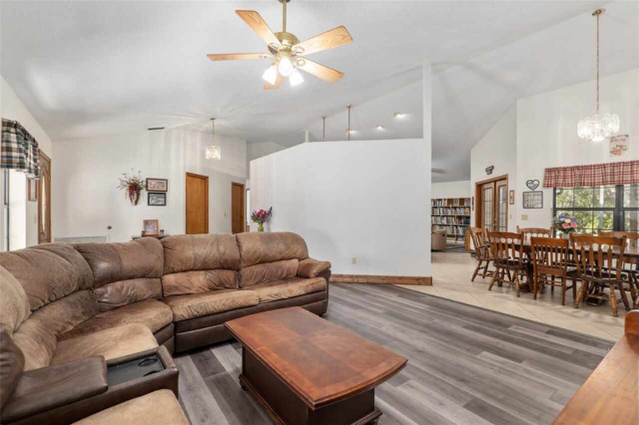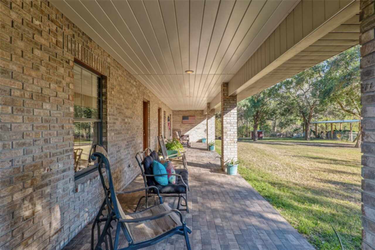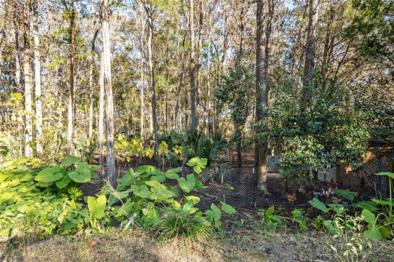 Discover this custom-built four-bedroom, three-bath estate ideally positioned across the street from the Santos Trailhead and just 15 minutes from downtown Ocala or 16 miles from the World Equestrian Center. Zoned A-1 with no HOA and powered entry gates, this remarkable property offers the ultimate combination of privacy, functionality and opportunity. Constructed with solid block, brick veneer and an architectural metal roof, the home exudes both durability and timeless charm. A spacious front porch welcomes you to relax and take in the tranquil, tree-lined surroundings. Inside, an open floor plan with a triple-split layout provides ideal privacy and flow. Vaulted ceilings and new luxury vinyl plank flooring enhance the inviting living and family rooms. The chef’s kitchen features abundant solid wood cabinetry, and a large island with breakfast bar. The primary suite includes dual walk-in closets and a spa-style bath with floor-to-ceiling tiled shower, private water closet with urinal, linen closet and dual-sink vanity. Three additional guest bedrooms offer ample space, including one with an adjoining office and direct access to a full bath and back porch, ideal for guests or multigenerational living. Additional highlights include a mudroom with washer/dryer hookups, a rear porch with commercial ice maker, gray-water washer/dryer hookups, and a covered carport. Outdoors, this property shines as a homesteader or equestrian’s dream, featuring a chicken coop, tractor shed with 6x6 treated poles and metal roof, and an irrigated garden area. A 20-foot-deep root cellar provides exceptional long-term storage for agricultural use or emergency preparedness. This is more than a home, it’s a lifestyle estate offering endless possibilities for recreation, income potential and self-sustainability.