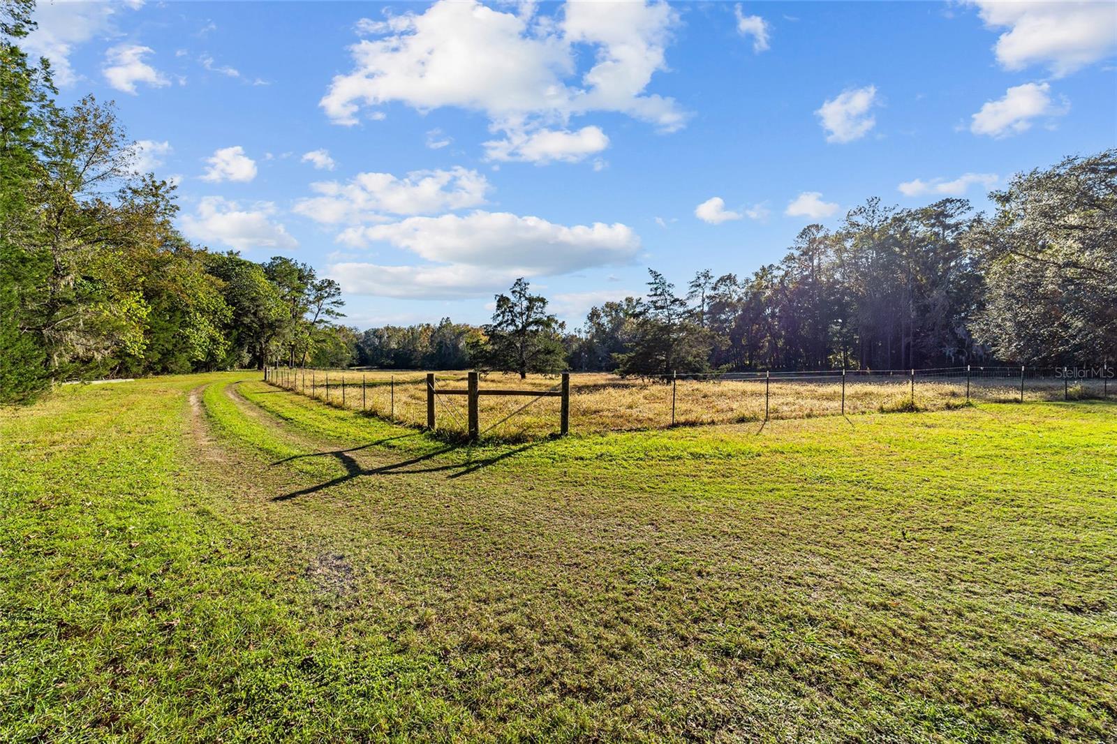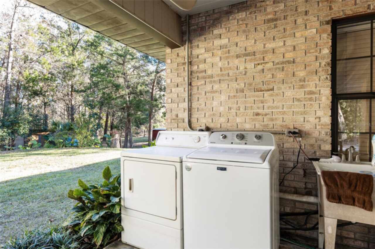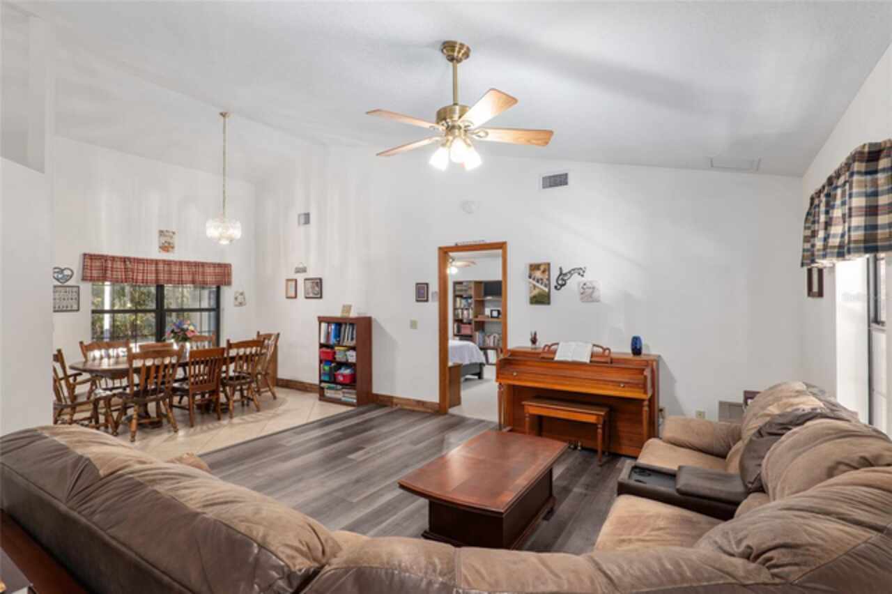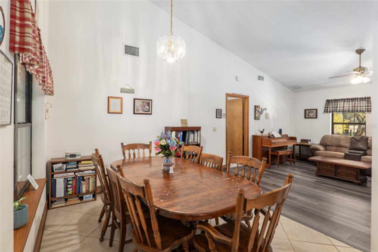 Discover this custom-built four-bedroom, three-bath estate ideally positioned across the street from the Santos Trailhead and just 15 minutes from downtown Ocala or 16 miles from the World Equestrian Center. Zoned A-1 with no HOA and powered entry gates, this remarkable property offers the ultimate combination of privacy, functionality and opportunity. Constructed with solid block, brick veneer and an architectural metal roof, the home exudes both durability and timeless charm. A spacious front porch welcomes you to relax and take in the tranquil, tree-lined surroundings. Inside, an open floor plan with a triple-split layout provides ideal privacy and flow. Vaulted ceilings and new luxury vinyl plank flooring enhance the inviting living and family rooms. The chef’s kitchen features abundant solid wood cabinetry, and a large island with breakfast bar. The primary suite includes dual walk-in closets and a spa-style bath with floor-to-ceiling tiled shower, private water closet with urinal, linen closet and dual-sink vanity. Three additional guest bedrooms offer ample space, including one with an adjoining office and direct access to a full bath and back porch, ideal for guests or multigenerational living. Additional highlights include a mudroom with washer/dryer hookups, a rear porch with commercial ice maker, gray-water washer/dryer hookups, and a covered carport. Outdoors, this property shines as a homesteader or equestrian’s dream, featuring a chicken coop, tractor shed with 6x6 treated poles and metal roof, and an irrigated garden area. A 20-foot-deep root cellar provides exceptional long-term storage for agricultural use or emergency preparedness. This is more than a home, it’s a lifestyle estate offering endless possibilities for recreation, income potential and self-sustainability.