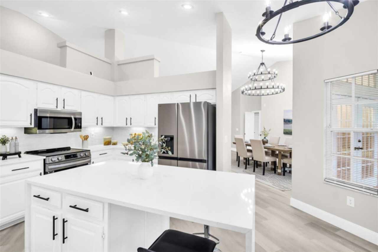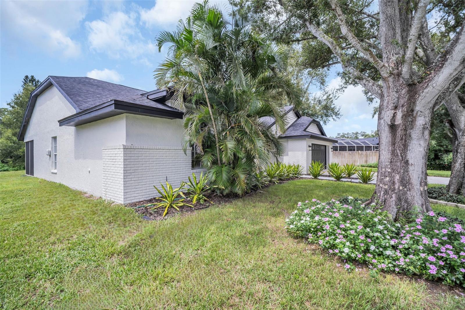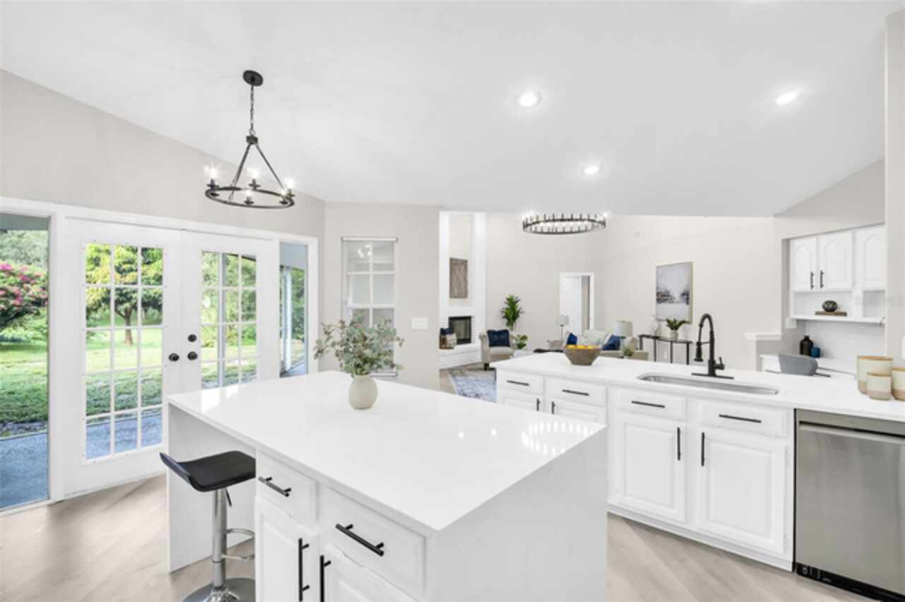 Gorgeously renovated and perfectly situated between Palm Harbor and Dunedin, this stunning 4-bedroom, 3-bathroom home in the sought-after Waterford Crossing community offers luxury living at its finest. Step through the elegant double-door entry and be welcomed by soaring vaulted ceilings, a freshly painted interior, all updated fans, fixtures, and hardware, and beautiful sea salt luxury vinyl flooring that flows seamlessly throughout the thoughtfully designed open and split-bedroom floor plan. The heart of the home is an absolutely jaw-dropping kitchen renovation, featuring quartz countertops, custom backsplash, an oversized island plus a breakfast bar, all brand new LG appliances, and modern recessed lighting—opening beautifully to the spacious family room with a wood-burning fireplace and custom built-in desk. The primary suite is a true oasis with large sliders leading out to the screened lanai and peaceful conservation views of the over half-acre lot and showcases a spacious walk-in closet plus a separate built-in, a luxurious en-suite bath complete with dual vanities, a dedicated make-up station, a brand-new deep soaker tub, and a stunning walk-in glass shower with custom tile and rain showerhead. The freshly screened lanai features two sets of large sliders and two double doors from the main living areas, creating an ideal indoor-outdoor flow for relaxing or entertaining. This home is truly move-in ready with a freshly painted exterior, sleek new exterior lighting, and major upgrades including a brand NEW ROOF (2024), HVAC (2024), electrical panel (2024), and hot water heater. Located in a NON-FLOOD ZONE, but just a short walk or jog to the Dunedin Causeway, Honeymoon Island, Caladesi Island, and beautiful Gulf Beaches. Waterford Crossing offers a beautiful community park, scenic trails and nearby with easy access to the Pinellas Trail. With a recently passed 4-point inspection and essentially EVERYTHING NEW, there are no insurance worries. Close to vibrant dining, shopping, and entertainment, this home offers better-than-new construction in an unbeatable location—an exceptional opportunity you don’t want to miss! Some photos have been virtually staged.