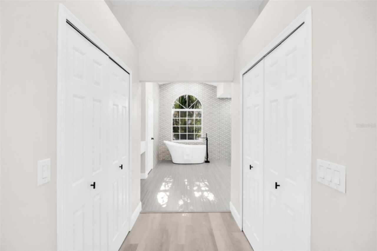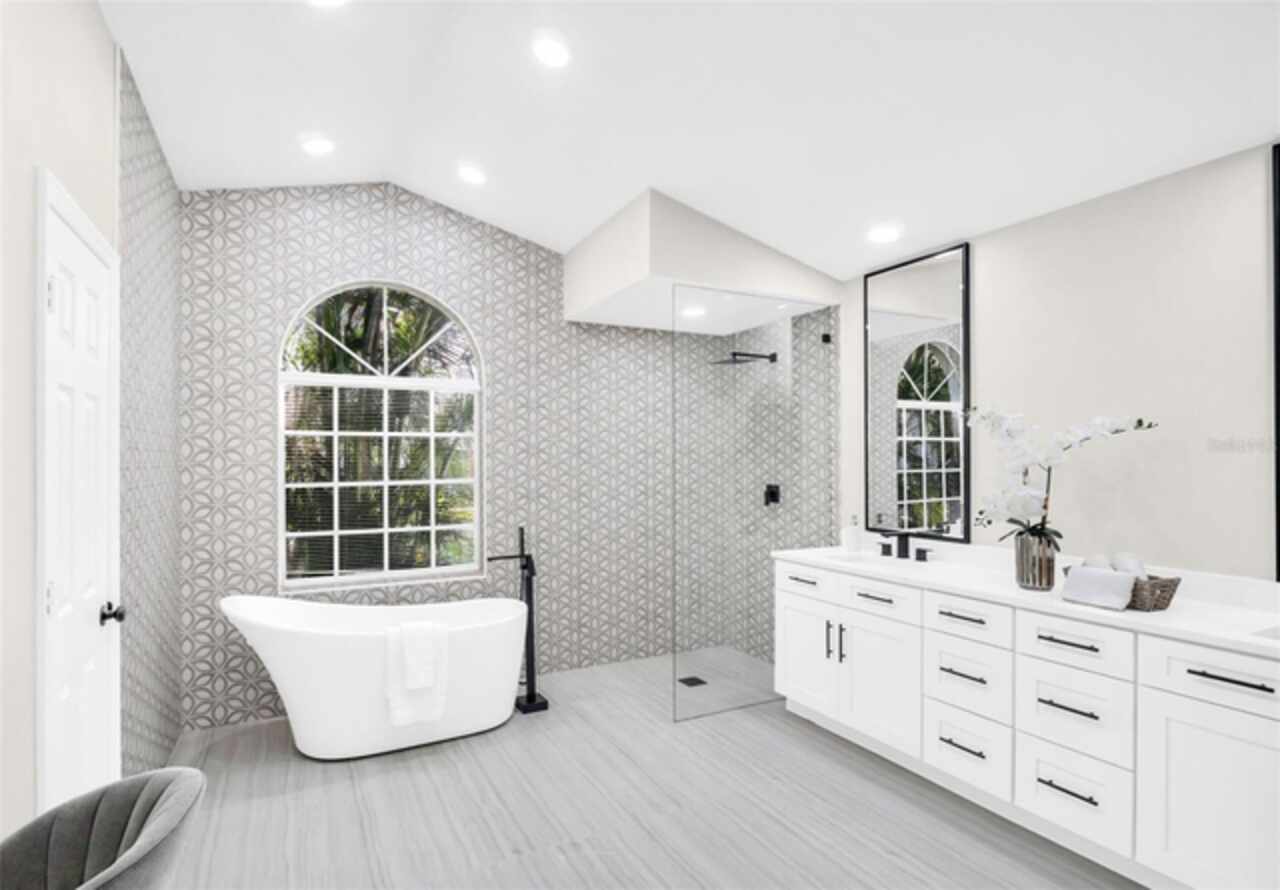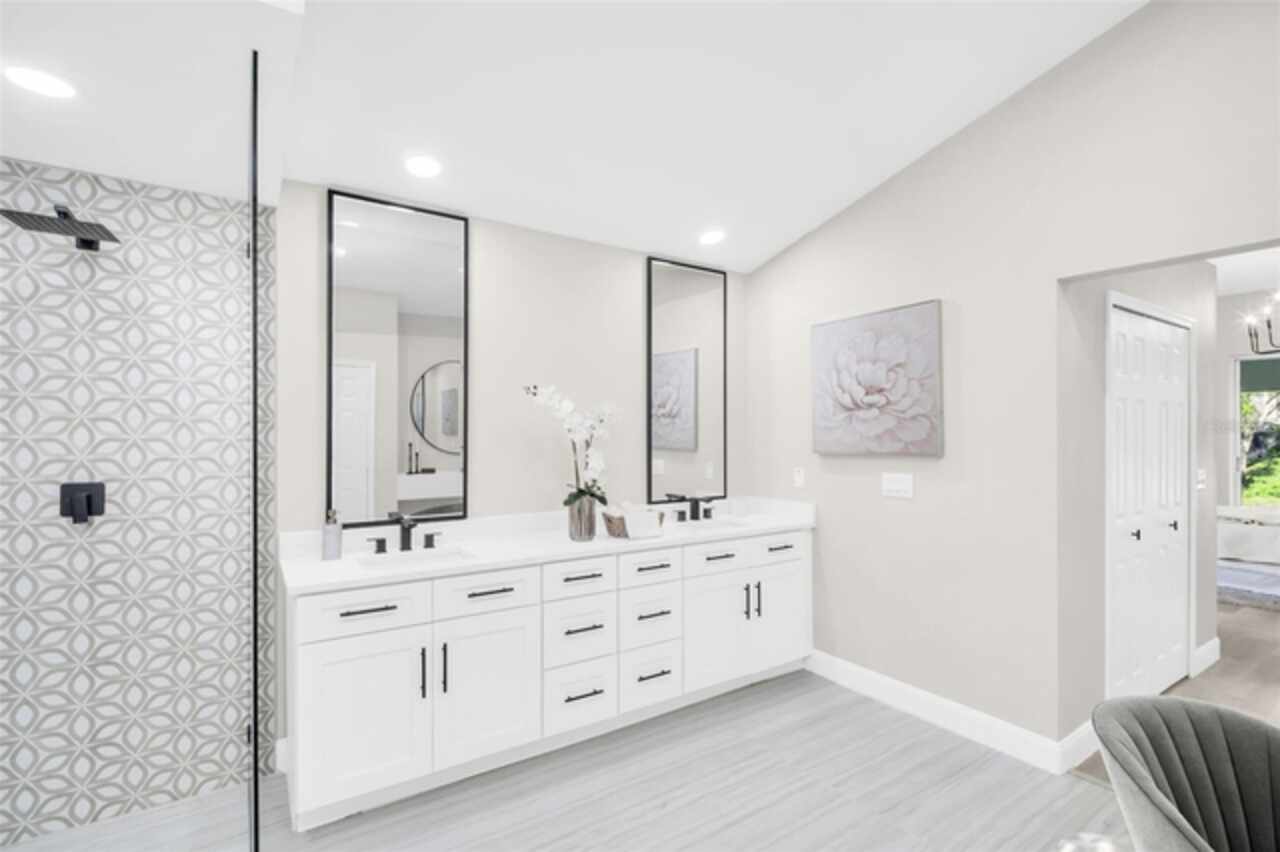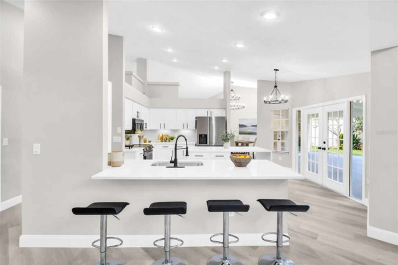 Gorgeously renovated and perfectly situated between Palm Harbor and Dunedin, this stunning 4-bedroom, 3-bathroom home in the sought-after Waterford Crossing community offers luxury living at its finest. Step through the elegant double-door entry and be welcomed by soaring vaulted ceilings, a freshly painted interior, all updated fans, fixtures, and hardware, and beautiful sea salt luxury vinyl flooring that flows seamlessly throughout the thoughtfully designed open and split-bedroom floor plan. The heart of the home is an absolutely jaw-dropping kitchen renovation, featuring quartz countertops, custom backsplash, an oversized island plus a breakfast bar, all brand new LG appliances, and modern recessed lighting—opening beautifully to the spacious family room with a wood-burning fireplace and custom built-in desk. The primary suite is a true oasis with large sliders leading out to the screened lanai and peaceful conservation views of the over half-acre lot and showcases a spacious walk-in closet plus a separate built-in, a luxurious en-suite bath complete with dual vanities, a dedicated make-up station, a brand-new deep soaker tub, and a stunning walk-in glass shower with custom tile and rain showerhead. The freshly screened lanai features two sets of large sliders and two double doors from the main living areas, creating an ideal indoor-outdoor flow for relaxing or entertaining. This home is truly move-in ready with a freshly painted exterior, sleek new exterior lighting, and major upgrades including a brand NEW ROOF (2024), HVAC (2024), electrical panel (2024), and hot water heater. Located in a NON-FLOOD ZONE, but just a short walk or jog to the Dunedin Causeway, Honeymoon Island, Caladesi Island, and beautiful Gulf Beaches. Waterford Crossing offers a beautiful community park, scenic trails and nearby with easy access to the Pinellas Trail. With a recently passed 4-point inspection and essentially EVERYTHING NEW, there are no insurance worries. Close to vibrant dining, shopping, and entertainment, this home offers better-than-new construction in an unbeatable location—an exceptional opportunity you don’t want to miss! Some photos have been virtually staged.