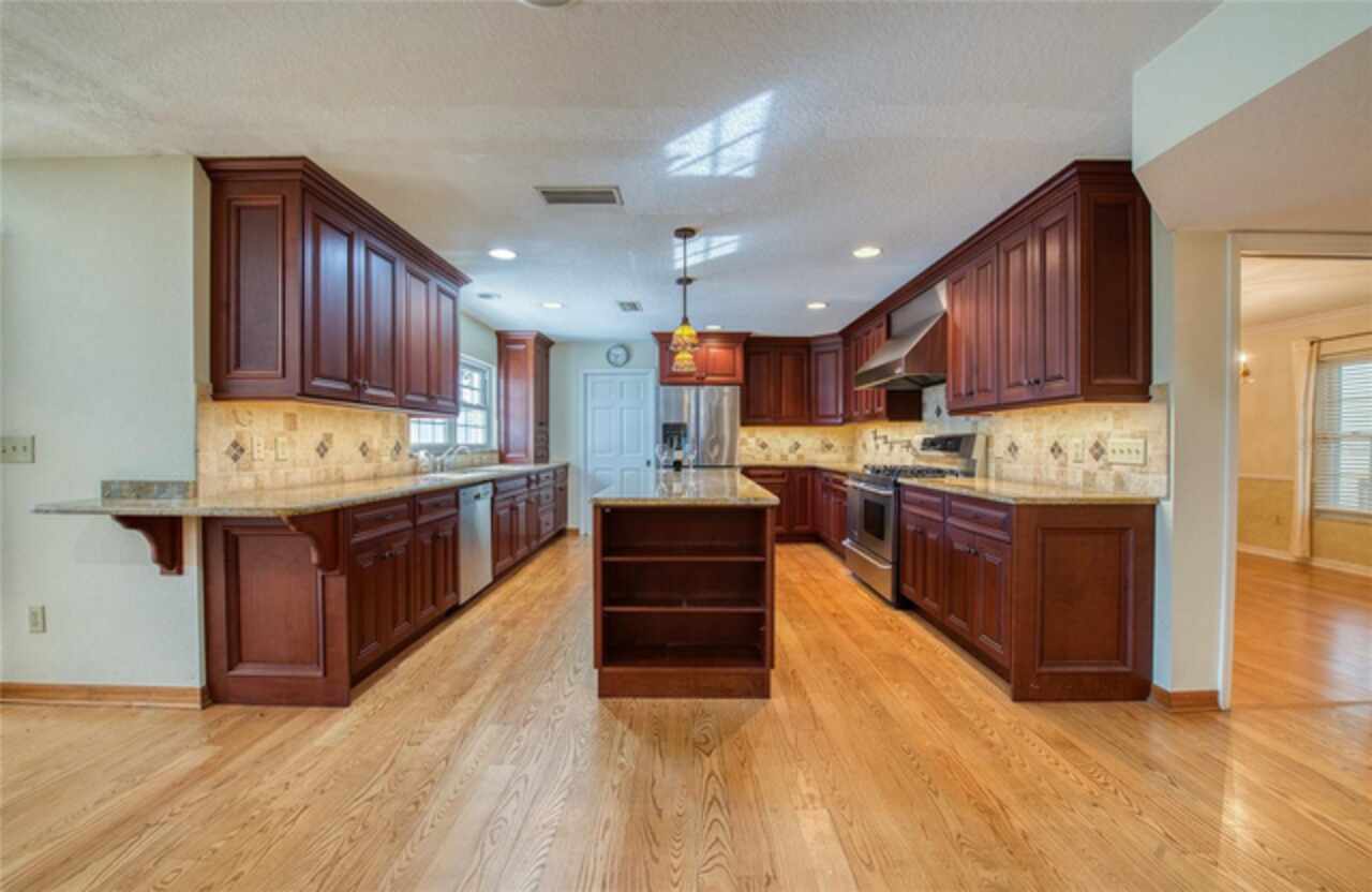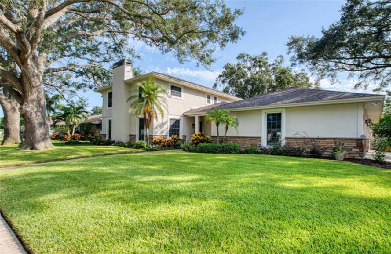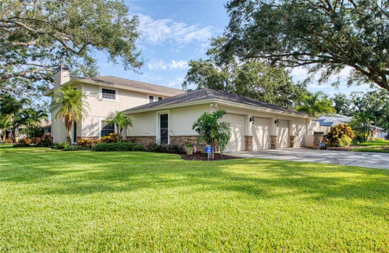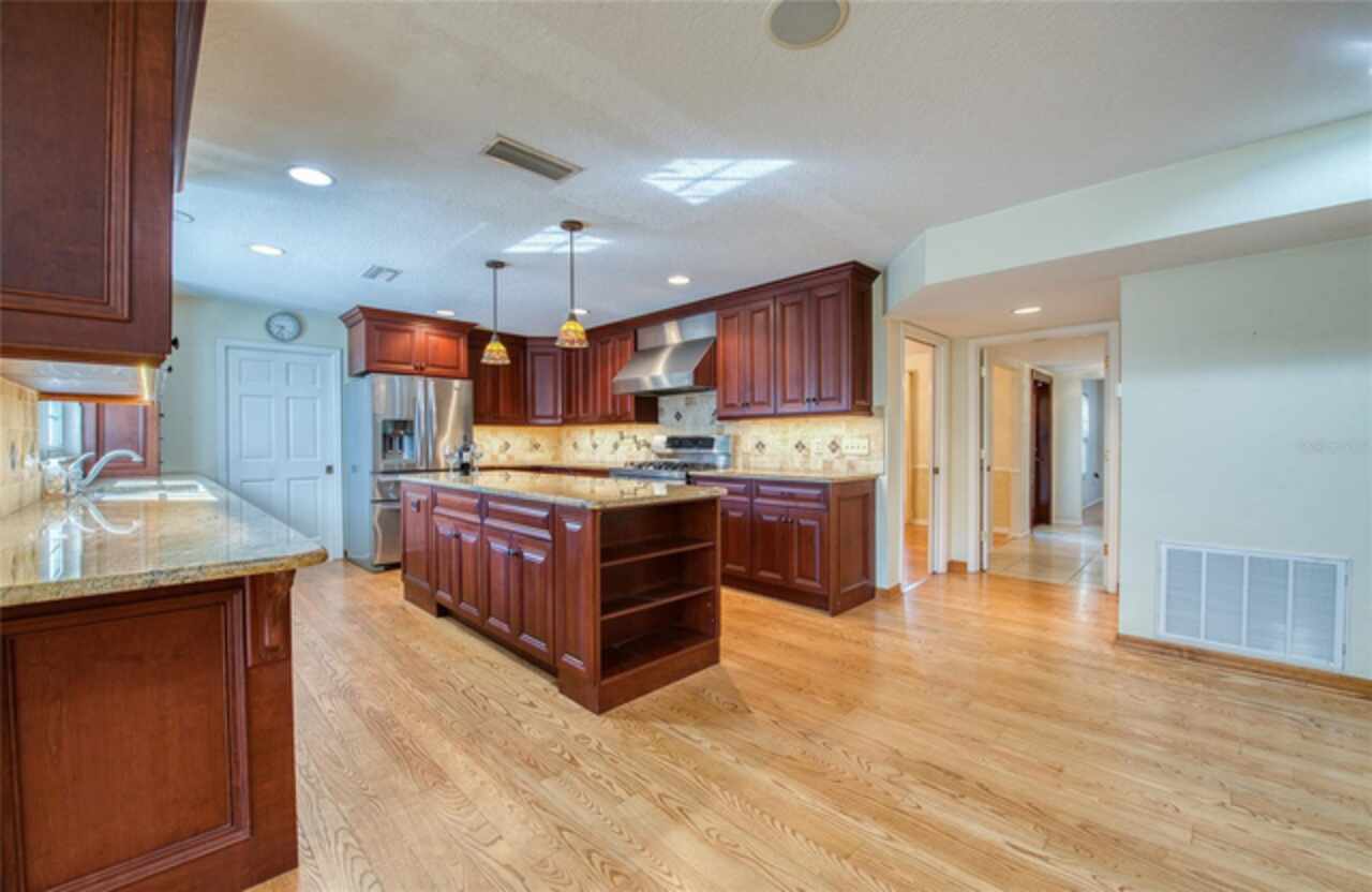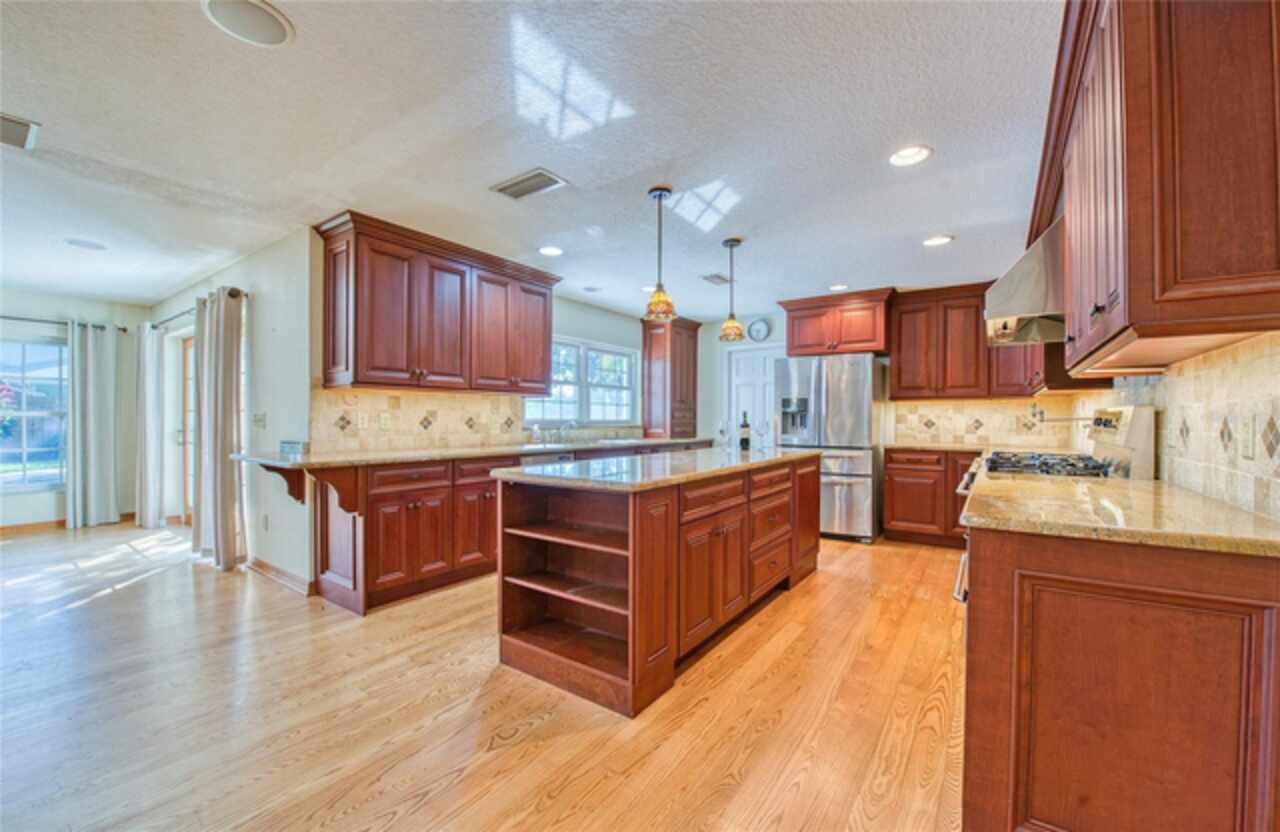 This spectacular Countryside home in Clearwater is ready to nurture its next family. With 3, 520 square feet of heated and cooled living space, it offers 5 spacious bedrooms, 3.5 bathrooms, and a spacious 3-car garage. Step outside and unwind among lush native Florida foliage, serenaded by the soothing sounds of a waterfall and koi pond. Mature oak trees shade the home and grounds. Irrigation system with private well sustains the vibrant yard and poolside landscaping, while the pool deck—crafted from exposed shell concrete with elegant travertine edging—adds a touch of coastal charm. The expansive kitchen and its storage are a chef’s paradise, featuring 30 feet of granite countertops, custom cherry cabinetry, a warming drawer, built-in wine cooler, and a dual-power gas/electric stove with five burners, one and a half ovens, and a convenient pot filler. Under-cabinet lighting sets a warm ambiance, and stainless-steel appliances beautifully complement the oak and ash wood flooring. Entertain effortlessly in the immense great room, complete with a custom-built entertainment center and a 73-inch Mitsubishi TV enhanced by a surround sound system. The large living room features a wood burning fireplace and a separate dining room is just steps from the kitchen. The downstairs 5th bedroom with full wall shelving and closets can be used as a very private home office. The master bathroom offers spa-like luxury with a whirlpool tub, walk-in shower, and double-sink vanity. Practical upgrades include: Roof replaced in 2016 with Owens-Corning Lifetime dimensional shingles with a transferable warranty. Downstairs AC replaced in 2024; upstairs in 2016. Rinnai tankless gas water heater replaced in 2022. Pool pump, pool filter system and pool sweep replaced in 2024. Hurricane-rated Anderson sliding doors and insulated impact resistant windows provide energy efficiency and a very quiet environment, while ensuring lasting protection in this high-and-dry, no-flood-zone location. Ideally situated between Tampa International and St. Pete-Clearwater airports, this home is just minutes from the charming downtowns of Safety Harbor and Dunedin, Countryside Westfield Mall, Countryside Country Club, Countryside Rec Center, and less than 30 minutes from the world-famous Clearwater Beach. No HOA fees.