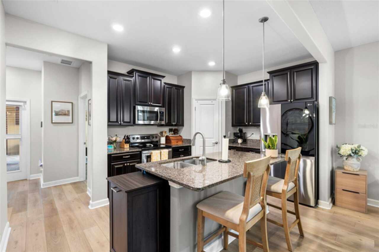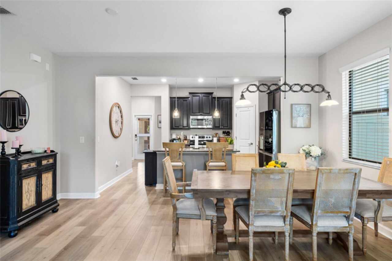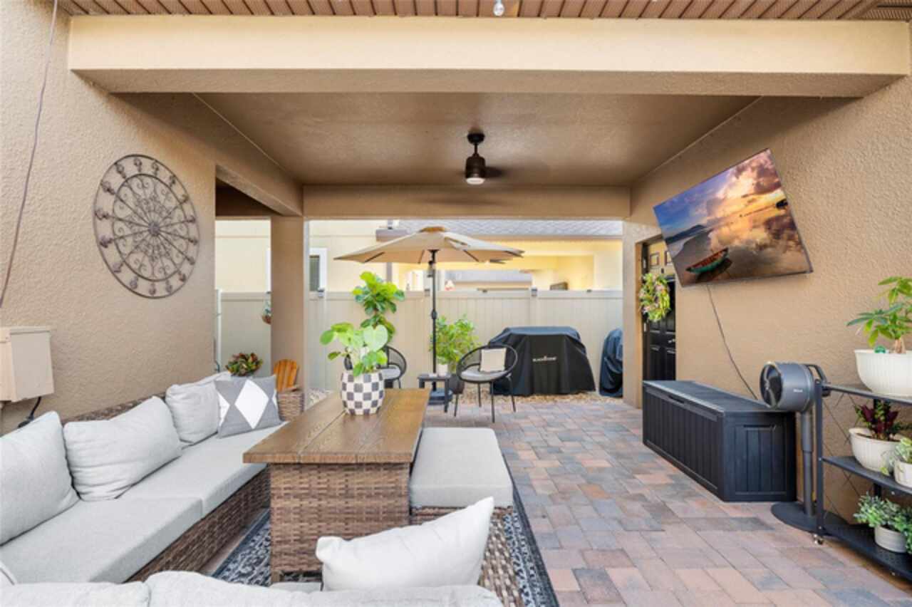 Welcome home to this stunning turnkey two-story residence. Featuring over 2, 000 square feet, 4 bedrooms and 3 bathrooms. This home welcomes you with an open concept living and dining area, perfect for both entertaining and relaxing. The modern kitchen is well-appointed with stainless steel appliances, granite countertops, and ample cabinet space, making it a chef's dream. One bedroom and full bathroom is also located downstairs perfect for an office or guests. Upstairs, you'll find 3 generous sized bedrooms and 2 bathrooms. Including the primary suite, your new retreat, complete with a large closet and attached en-suite bathroom featuring a soaking tub and double vanity. The backyard is the perfect cozy retreat, thoughtfully designed with a covered lounge area and beautifully arranged pavers. Whether savoring a peaceful morning coffee, or hosting a fun get-together with family and friends, this inviting space is crafted for comfort, connection, and relaxation. Leading out to your two-car garage making loading up the car a breeze. All situated in the highly desirable Wiregrass Ranch, just minutes from shopping, dining, entertainment and A rated schools. Enjoy the convenience of being near The Shops at Wiregrass, AdventHealth, and Tampa Premium Outlets. Move right in—no renovations needed! Schedule a showing today and experience the perfect blend of comfort and convenience.